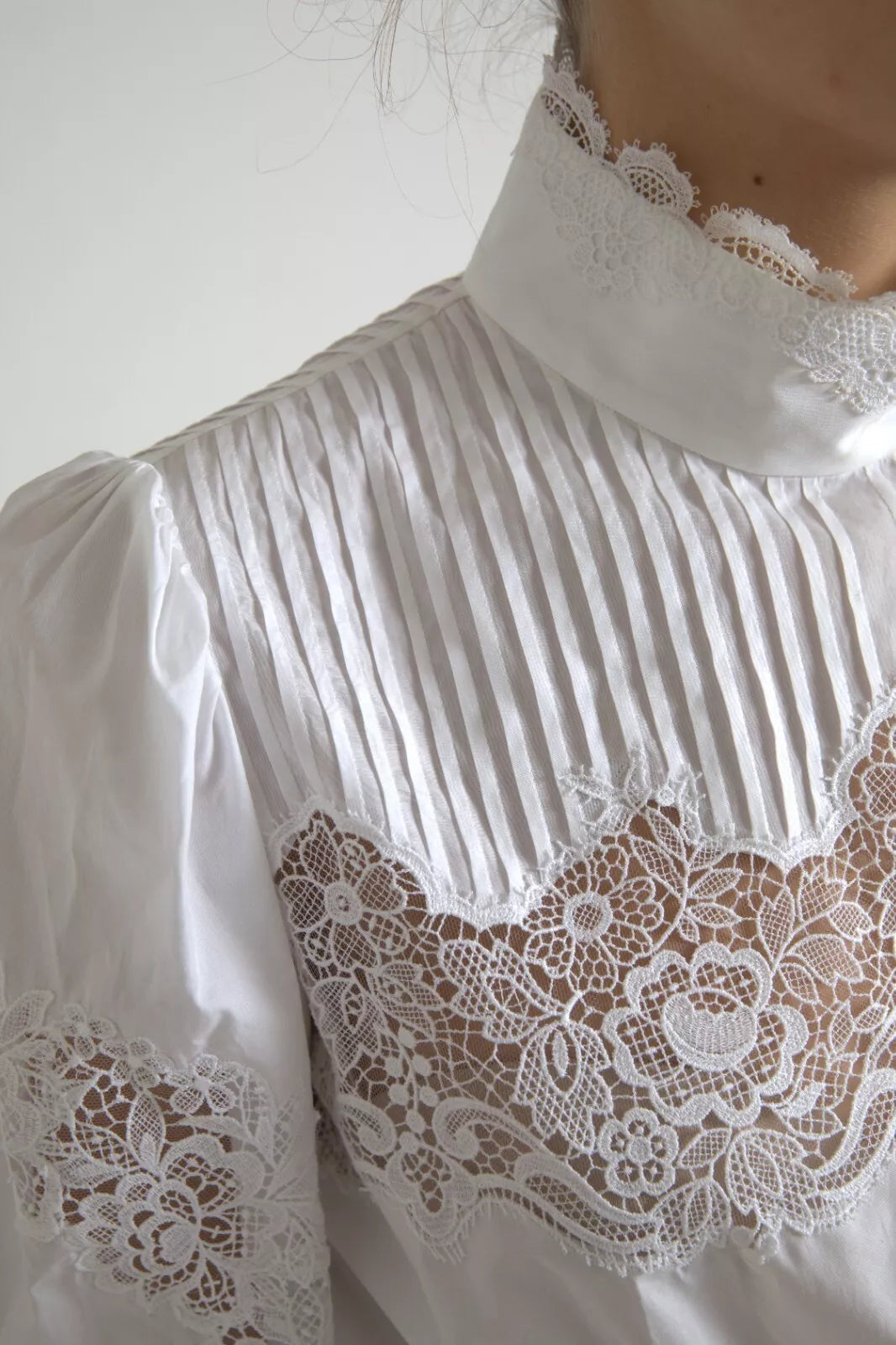Dolce & Gabbana White Cotton Lace Trim Turtle Neck Blouse