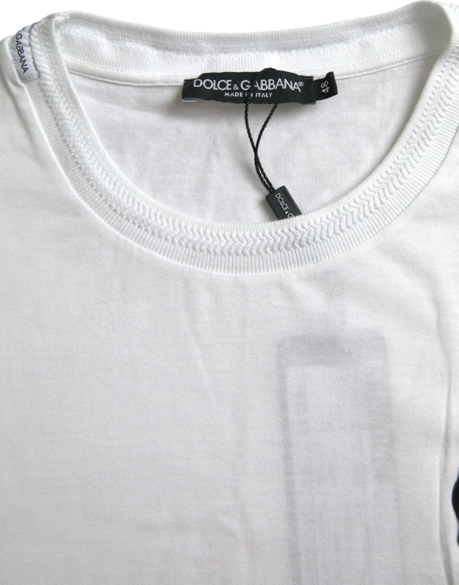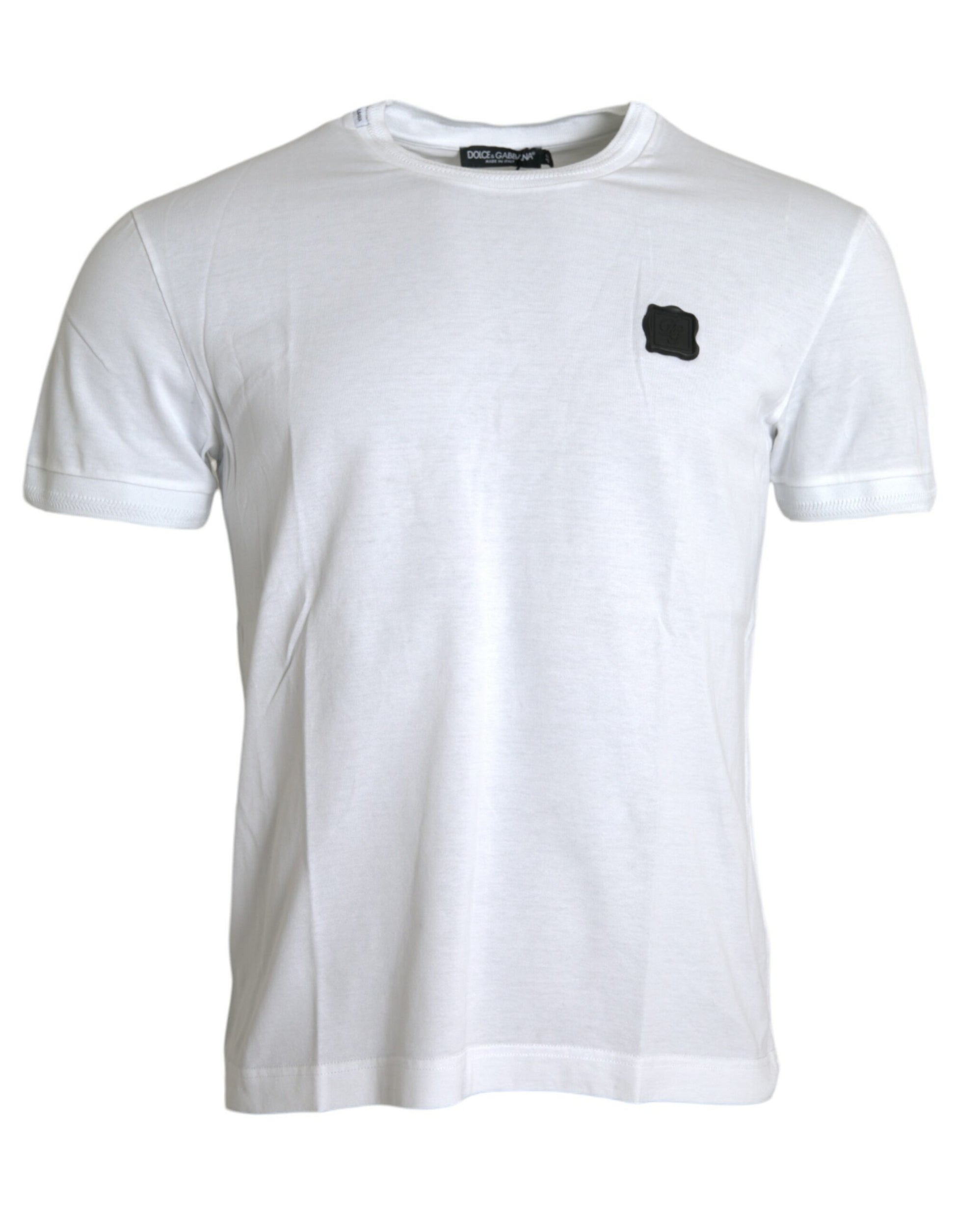 Dolce & Gabbana White Logo Patch Cotton Crew Neck T-shirt