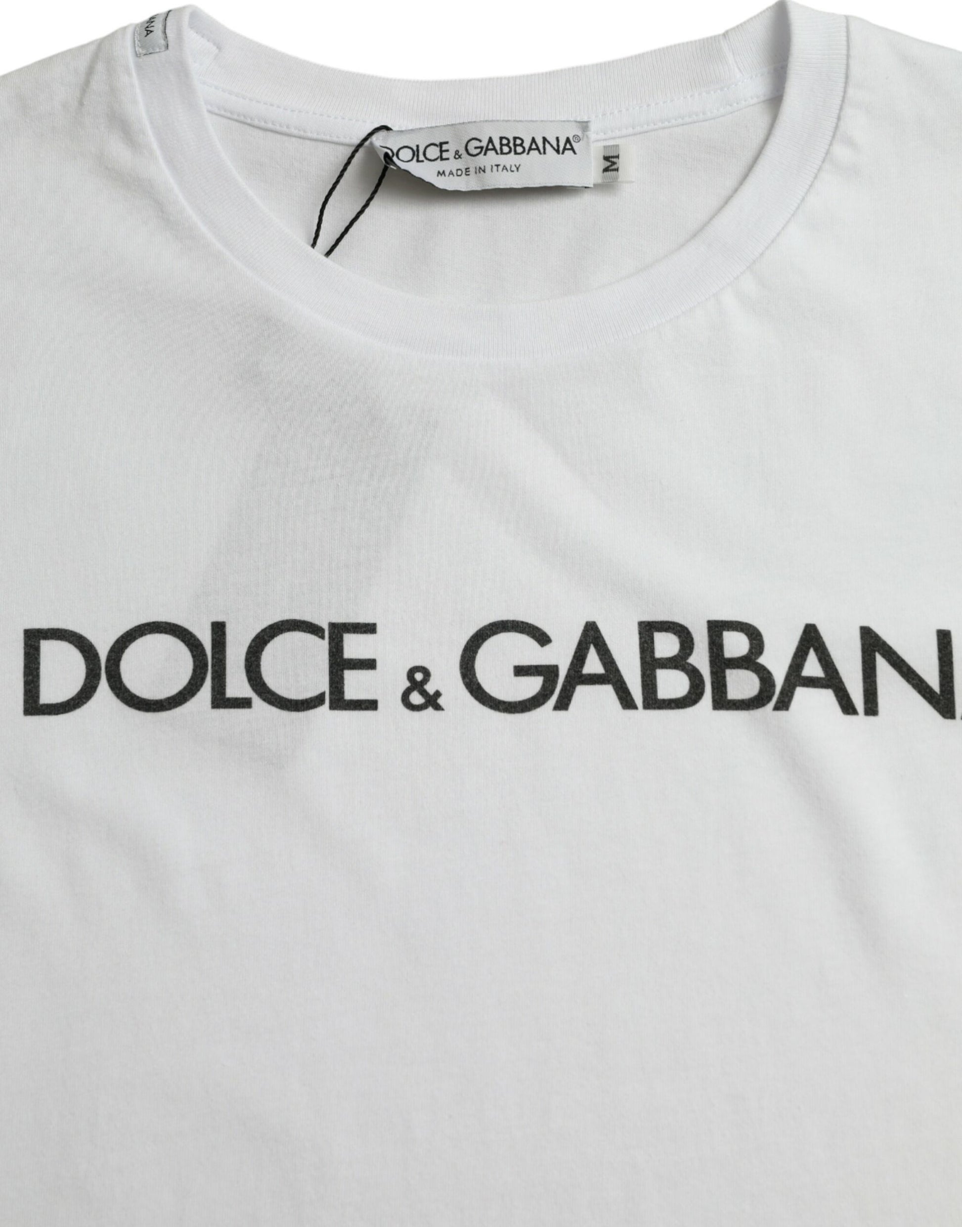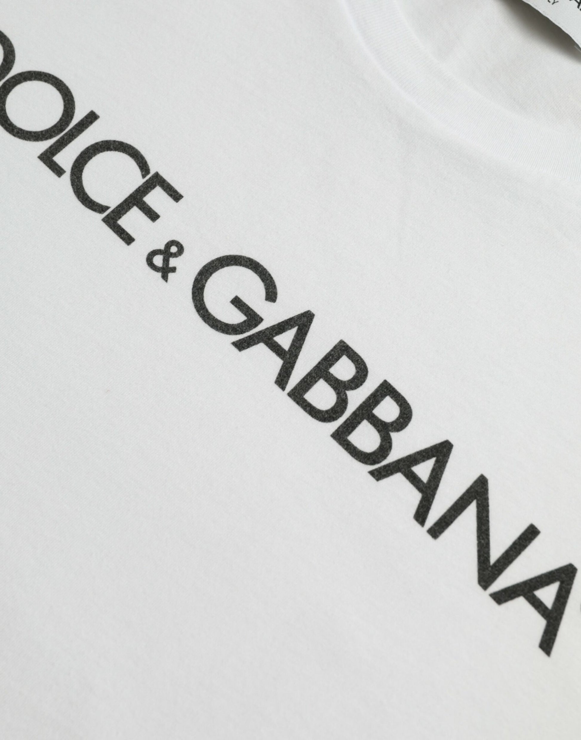 Dolce & Gabbana White Logo Print Cotton Crew Neck T-shirt