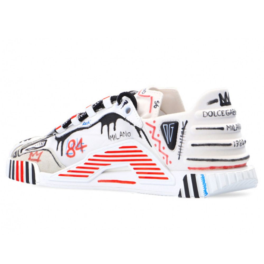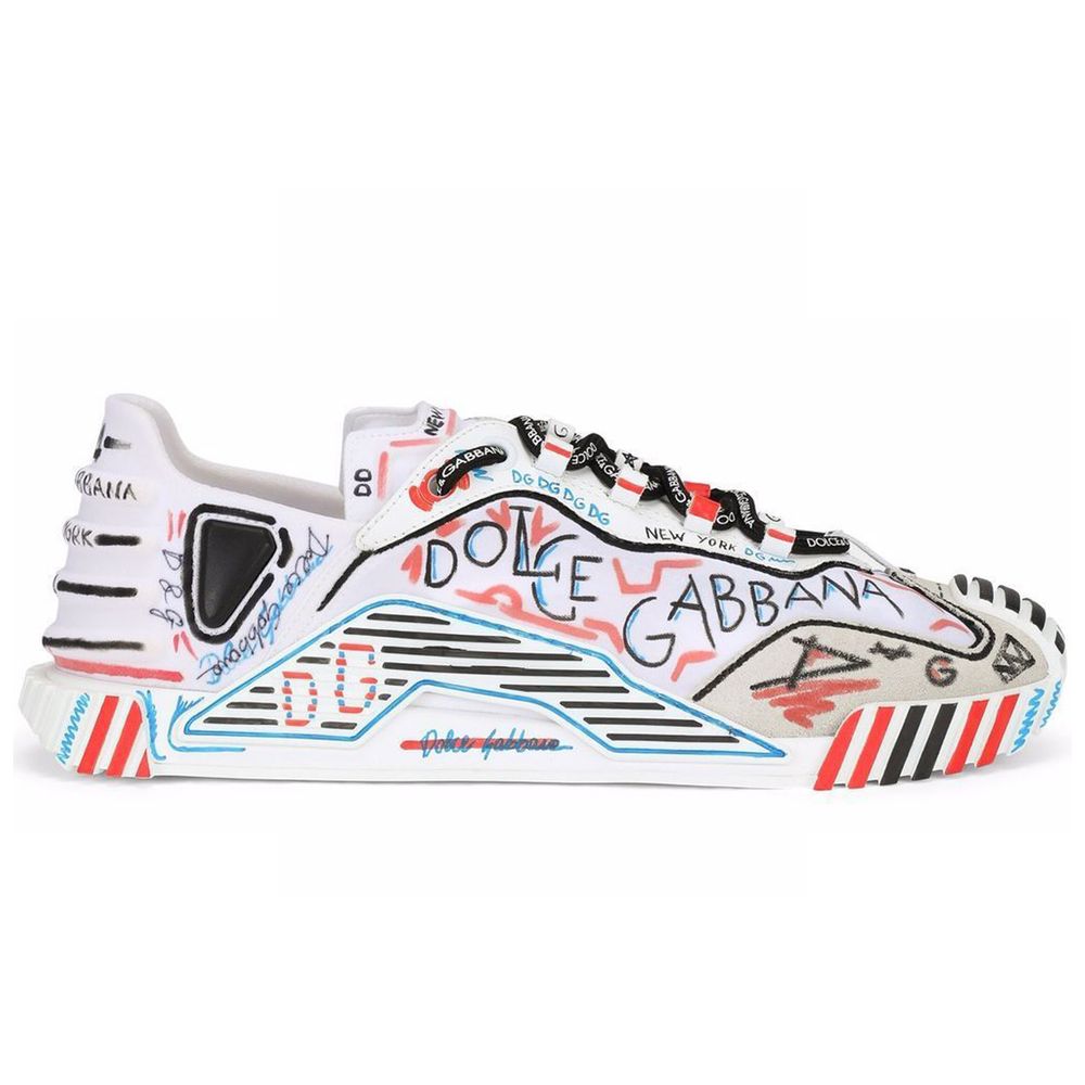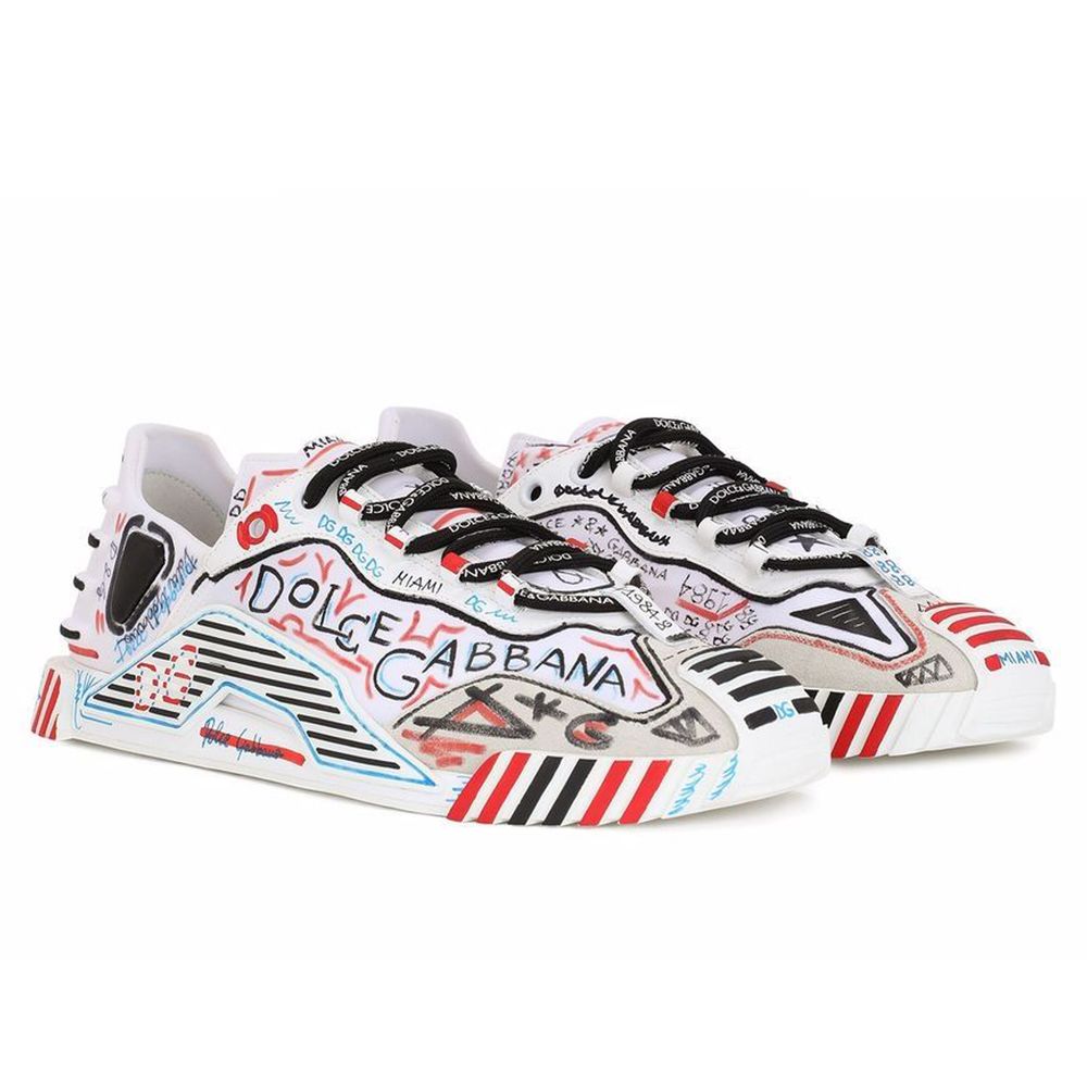 Dolce & Gabbana nylon and rubber sneakers with suede details, hand-painted marker decoration throughout, rubber sole