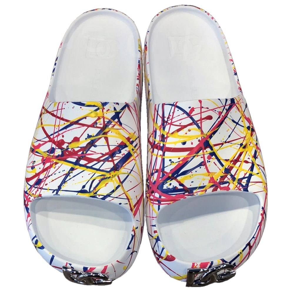 Dolce & Gabbana men's rubber slippers with multicolor patent leather decoration, DG metallic logo applied on toe