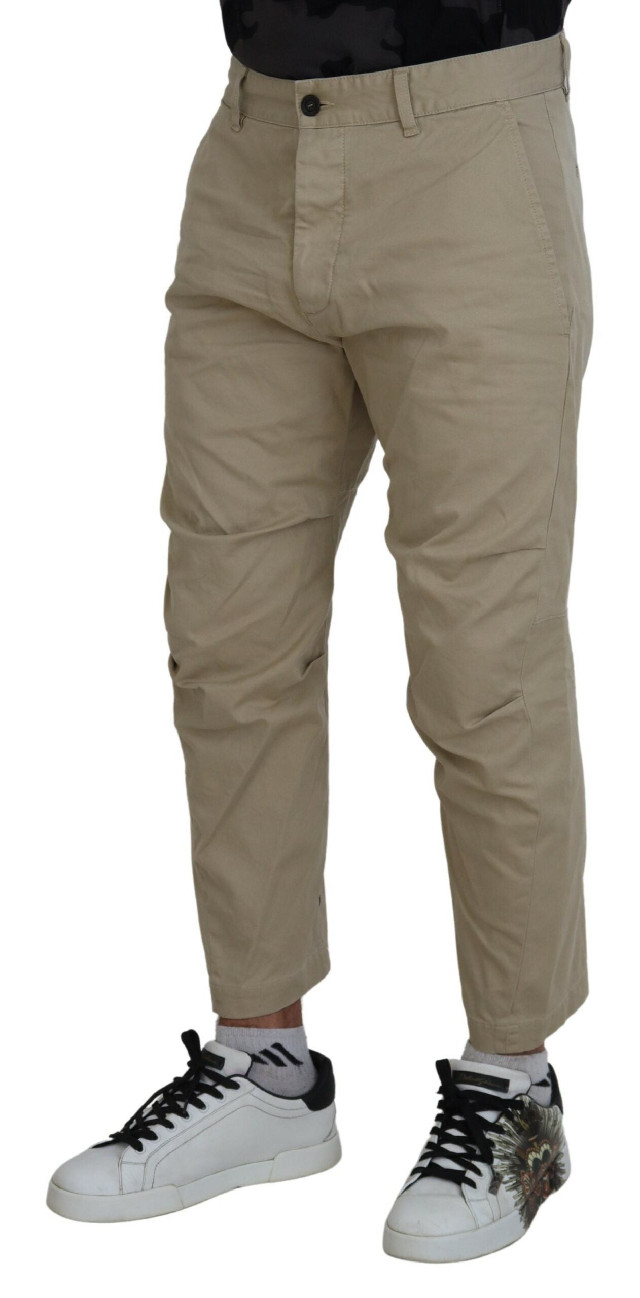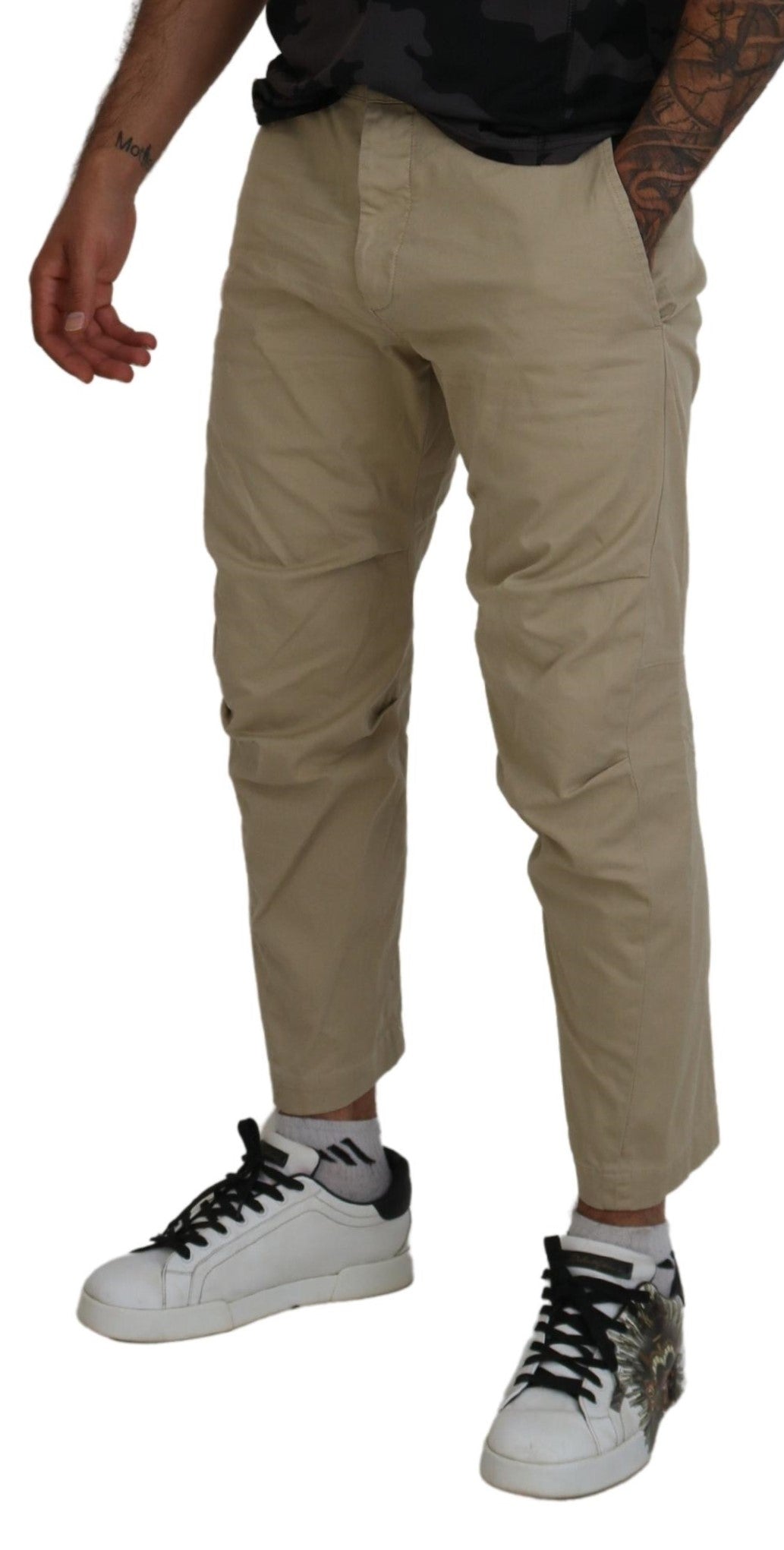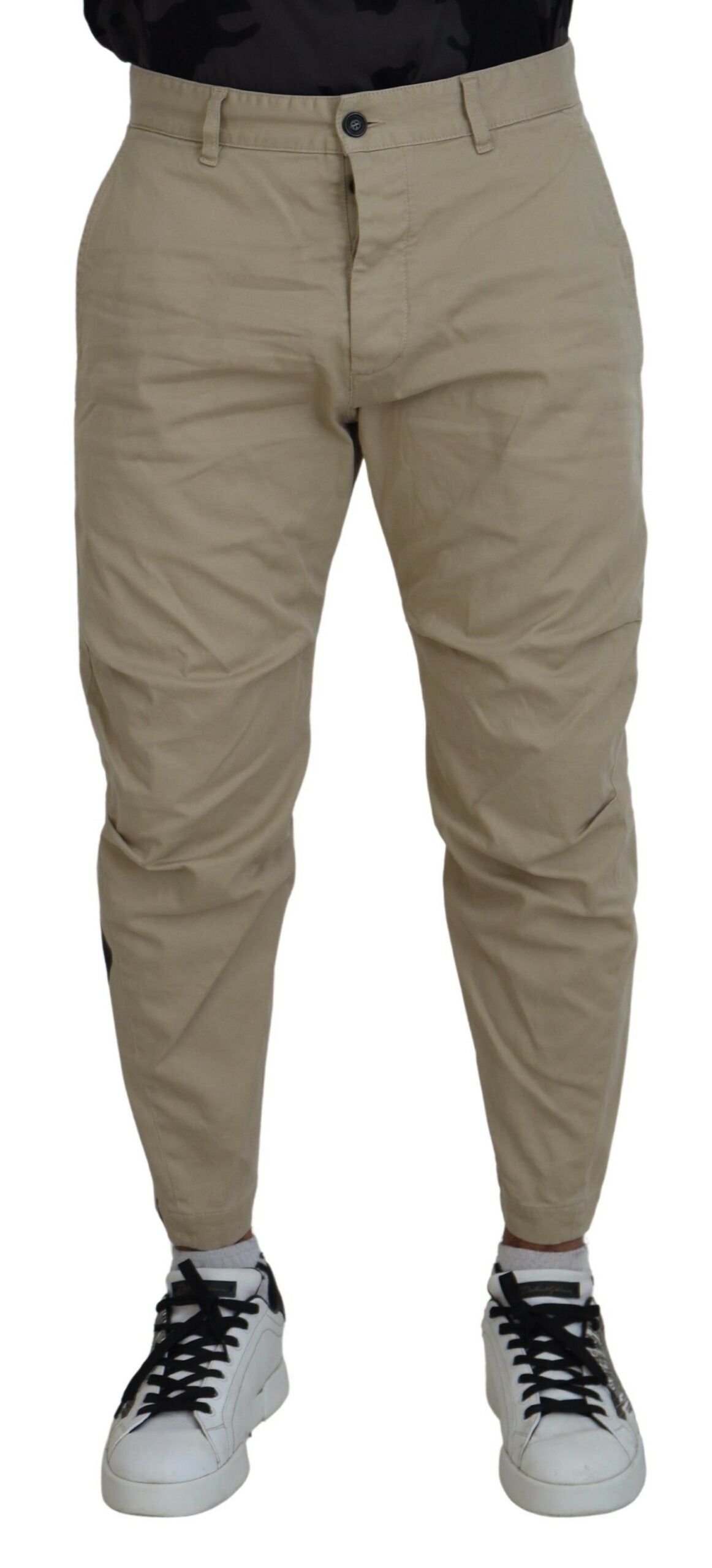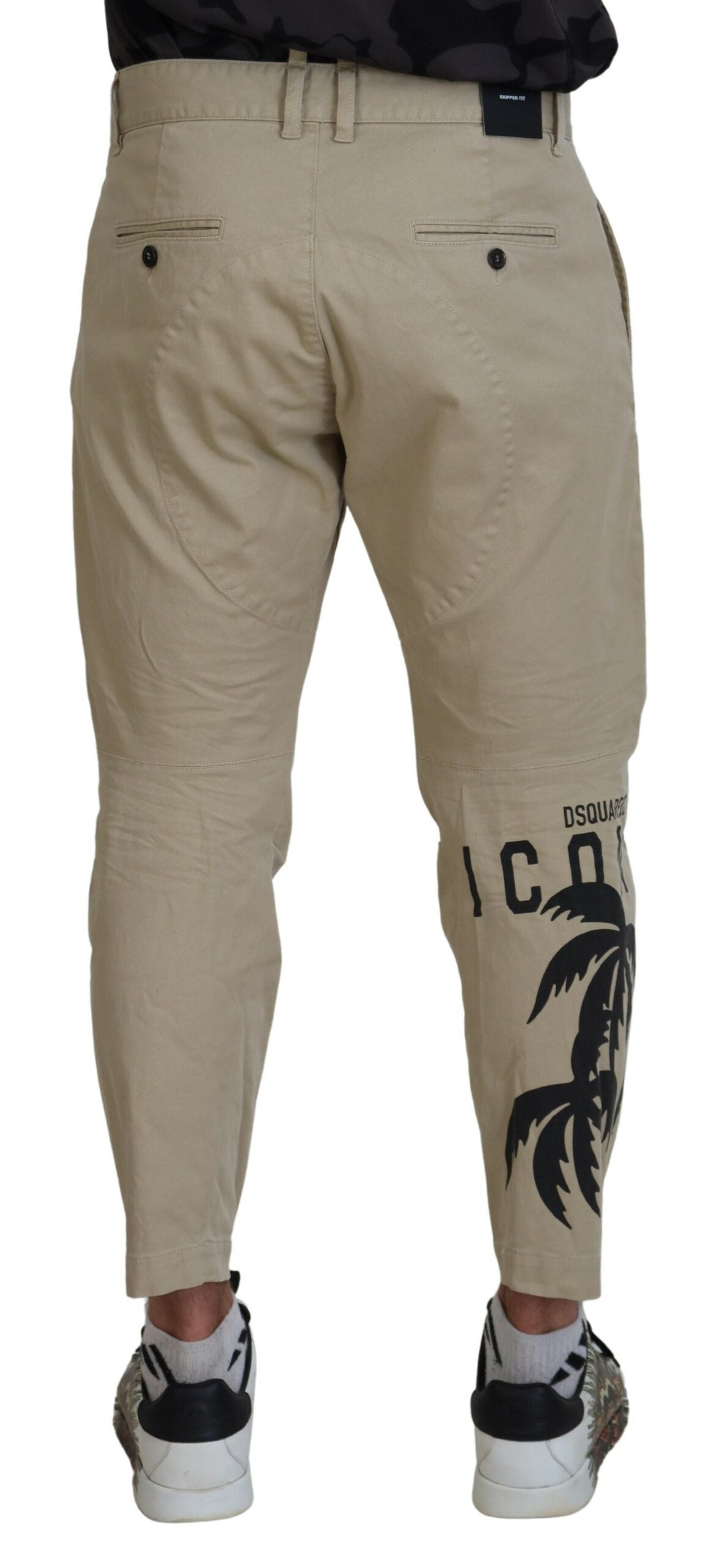 Dsquared² Beige Cotton Printed Leg Men Casual Pants