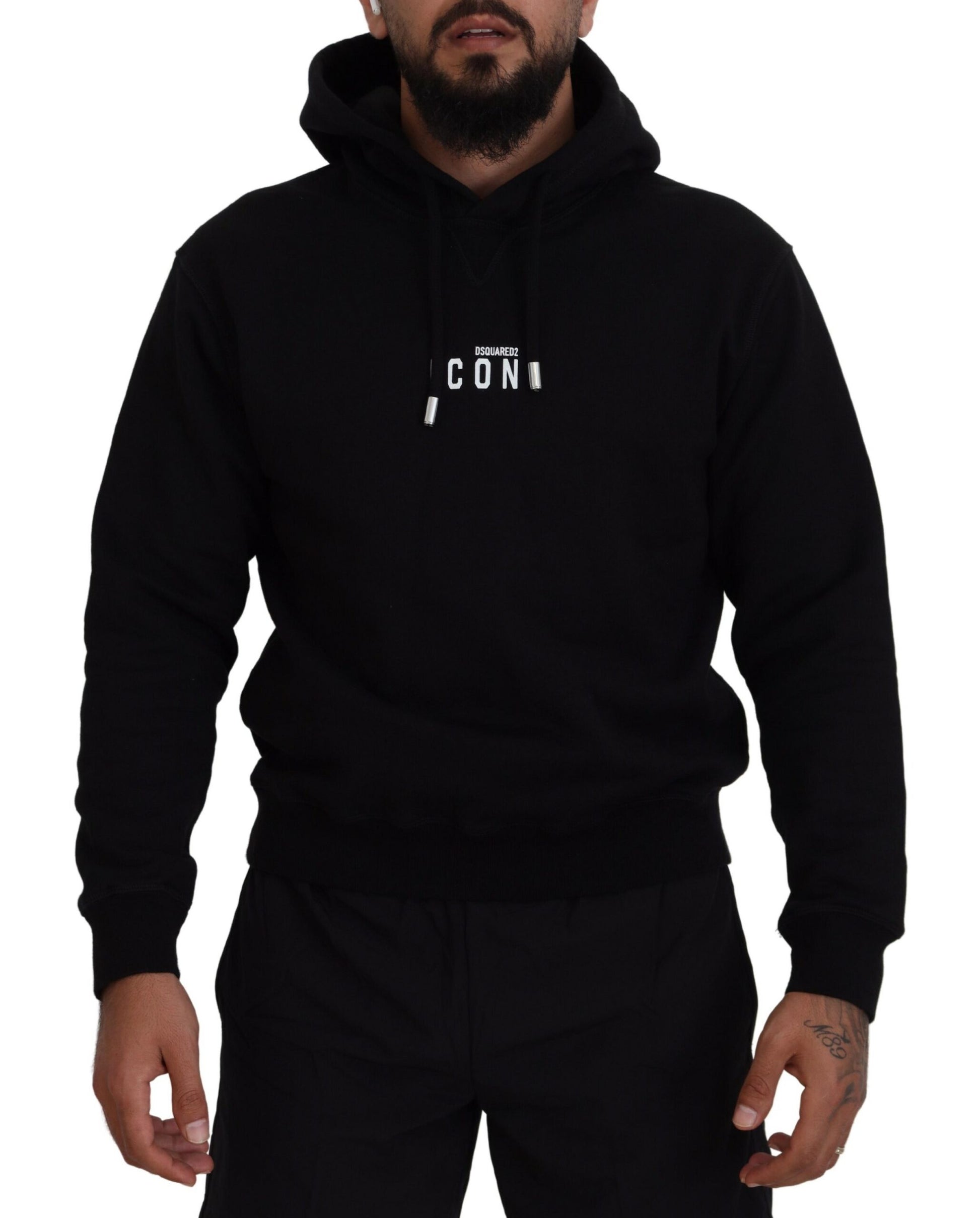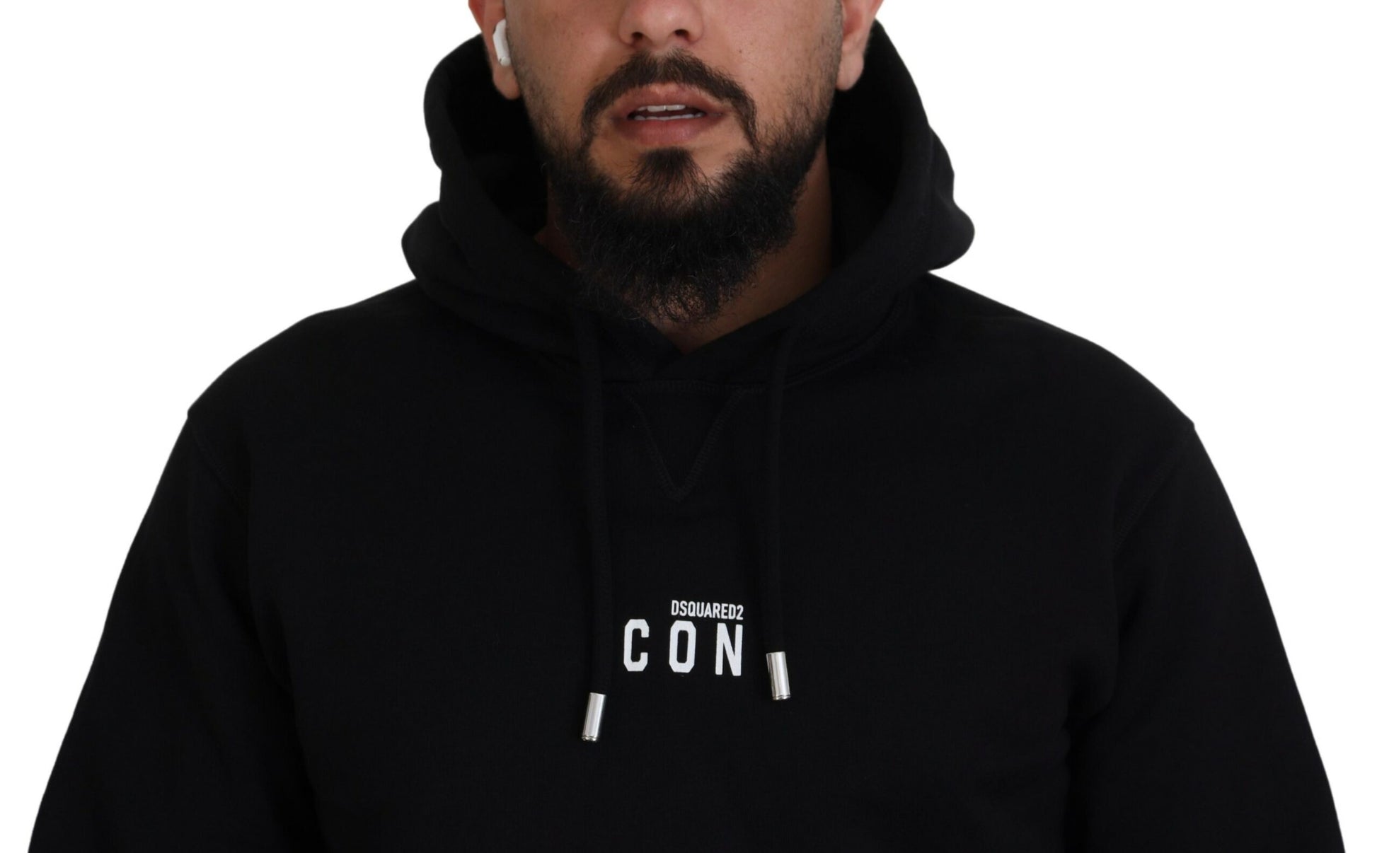 Dsquared² Black Cotton Hooded Printed Men Pullover Sweater