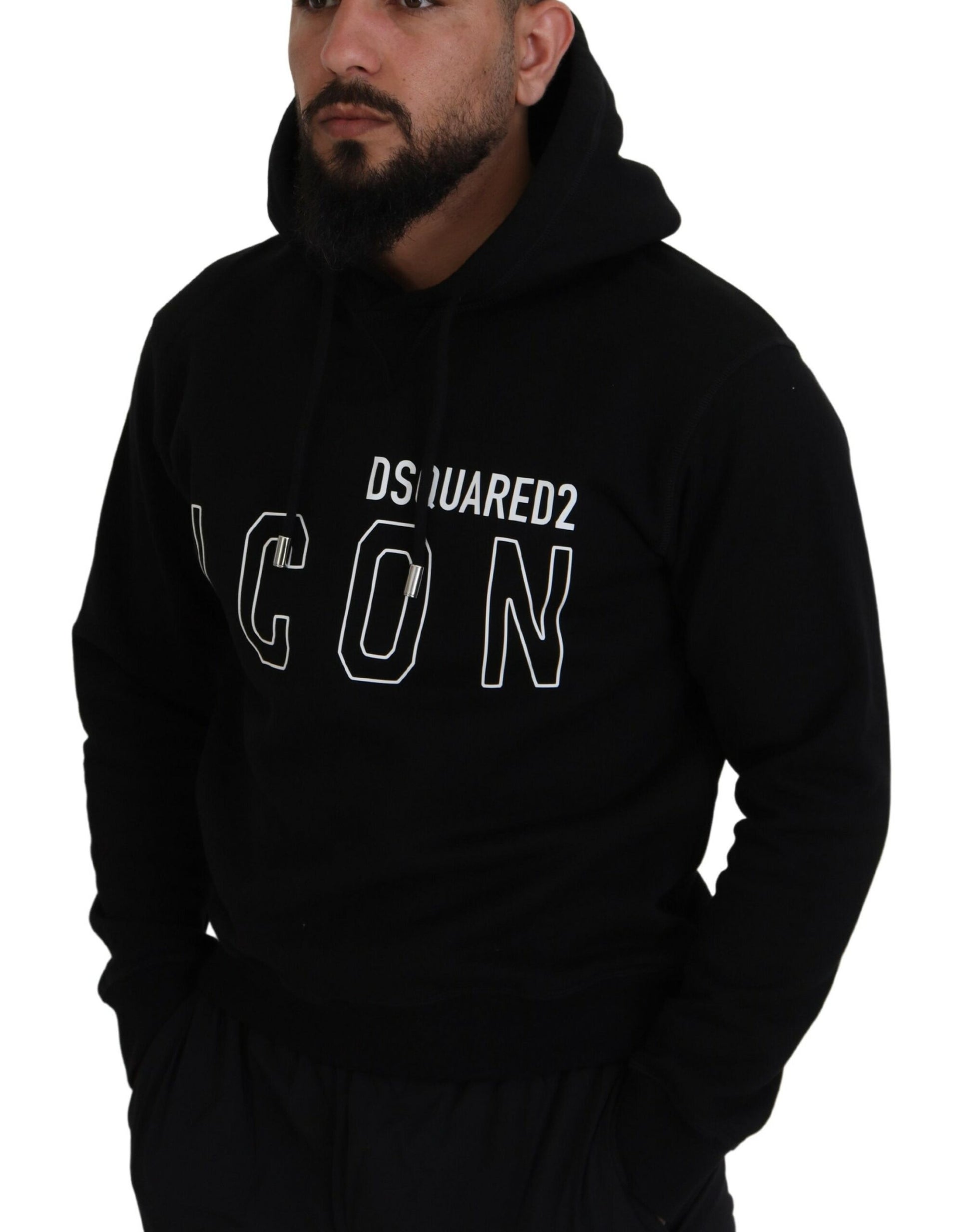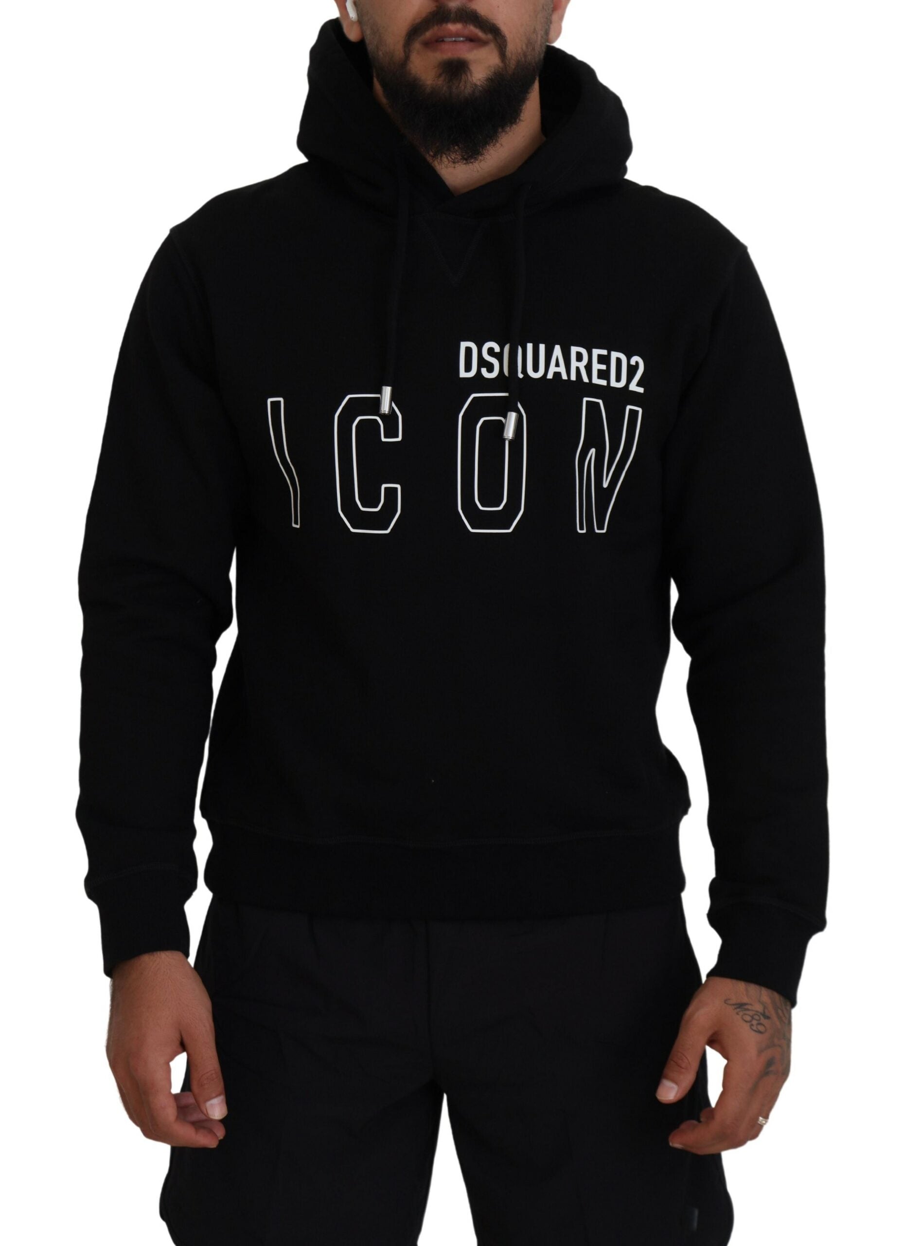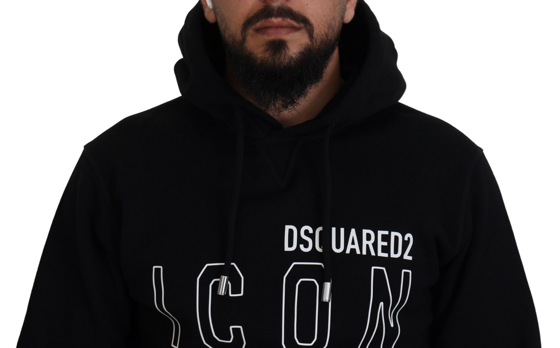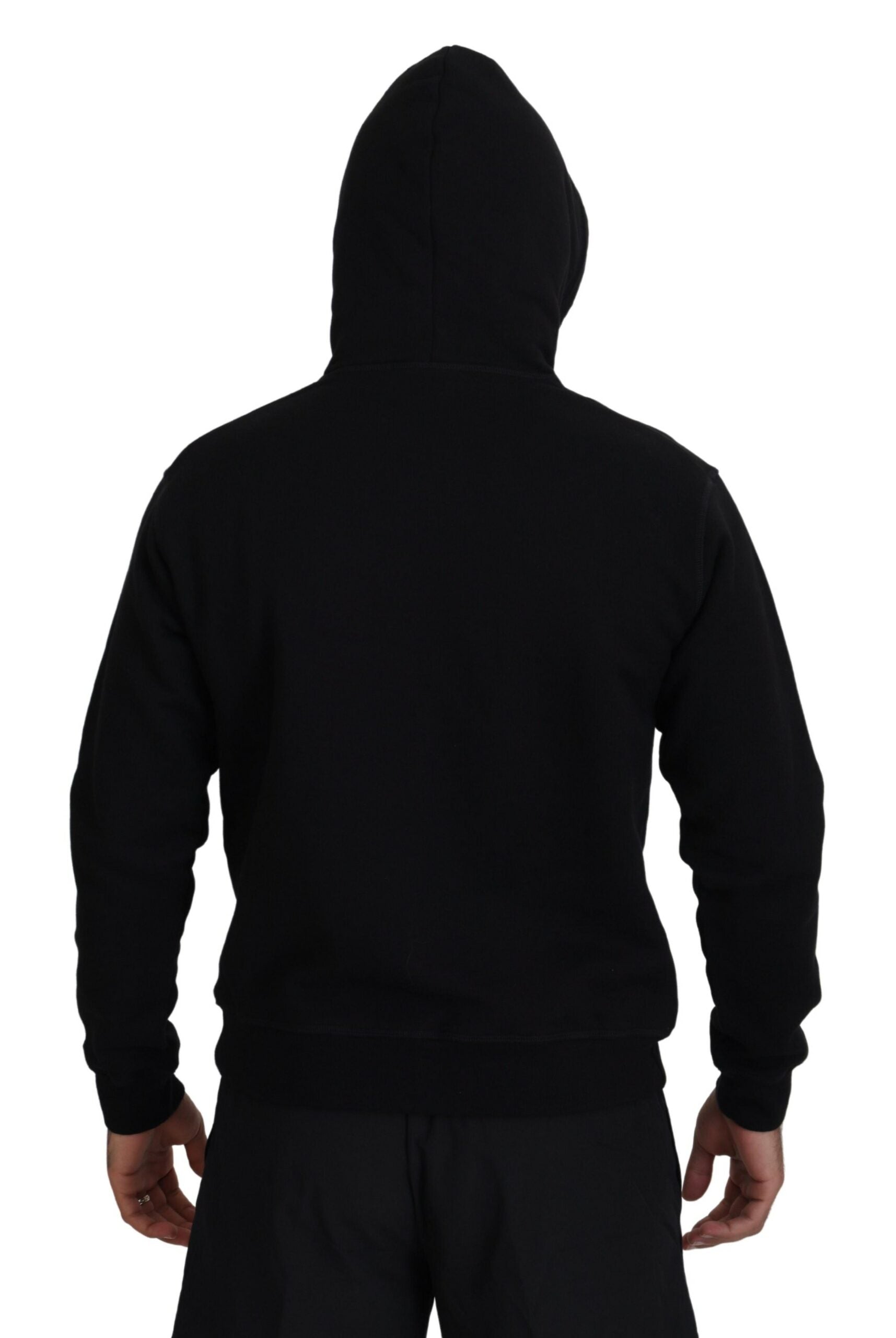 Dsquared² Black Cotton Hooded Printed Men Pullover Sweater