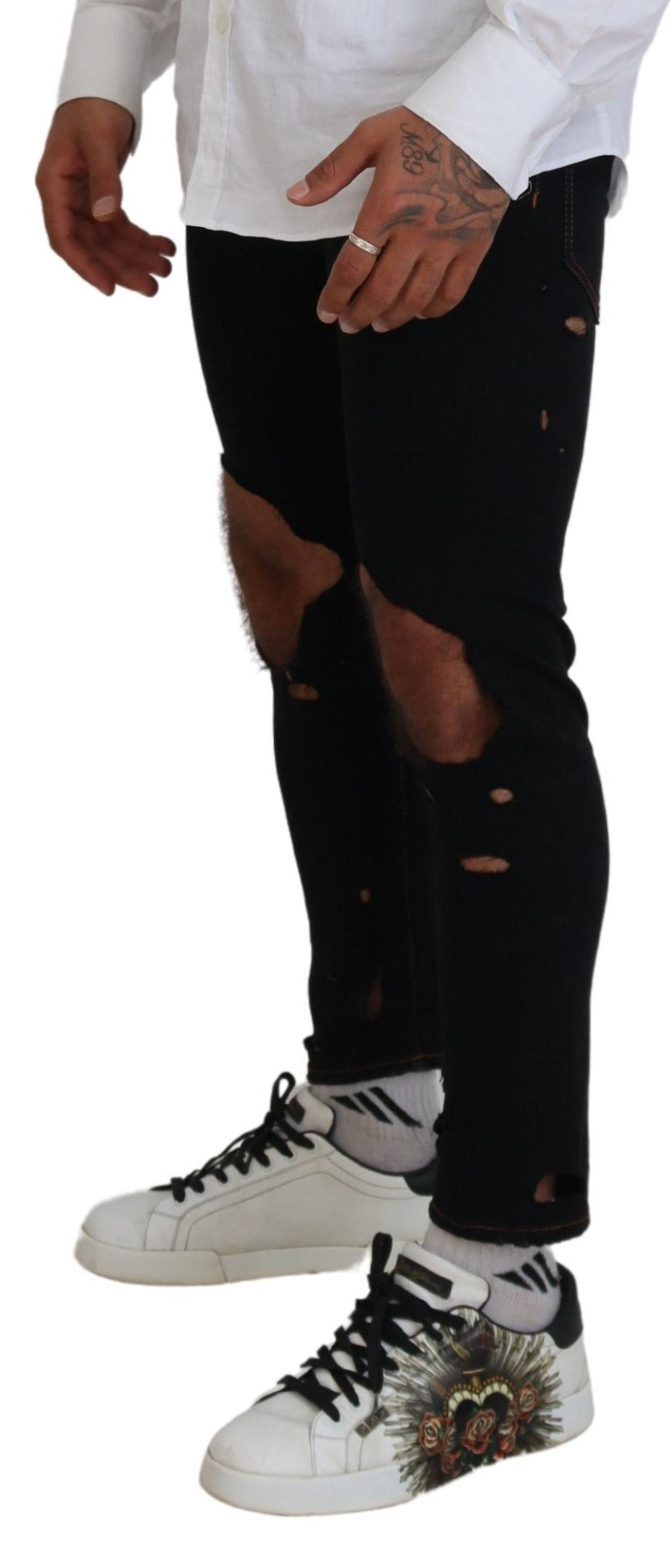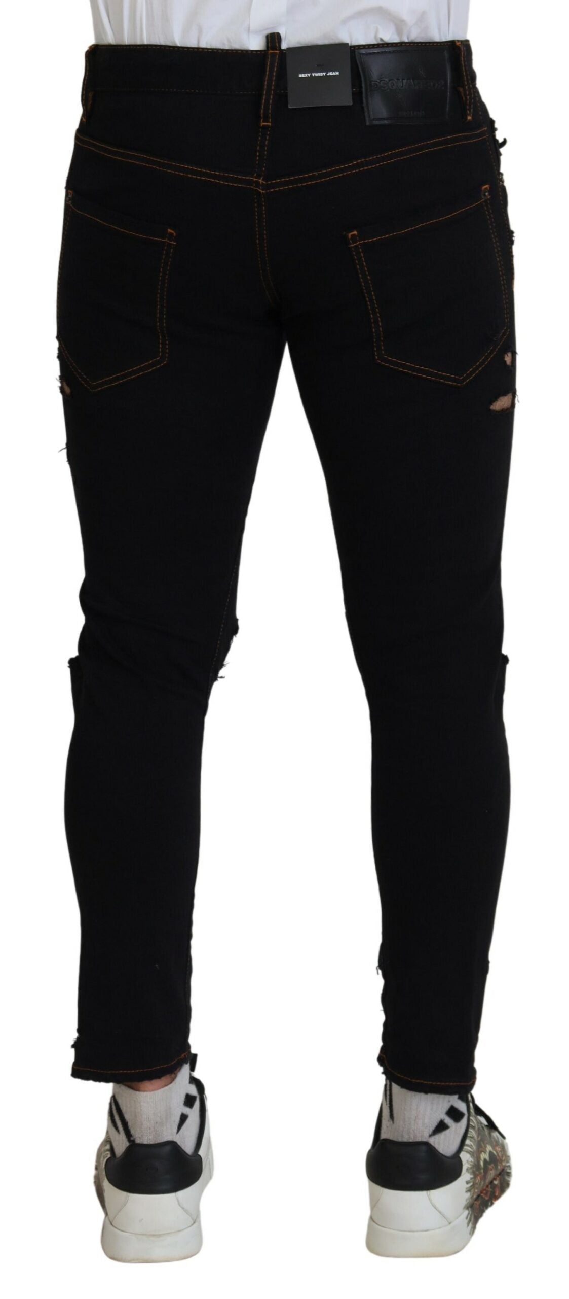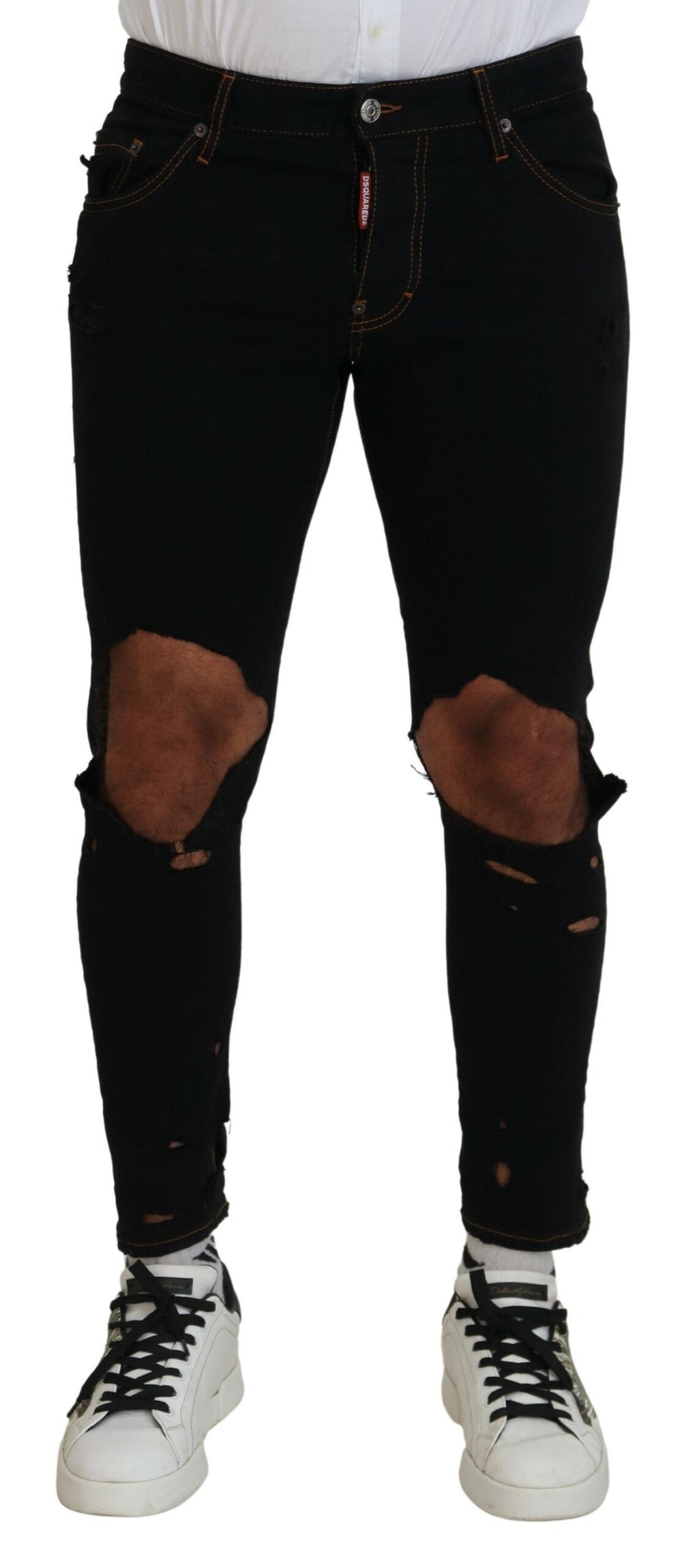 Dsquared² Black Cotton Tattered Skinny Casual Denim Jeans