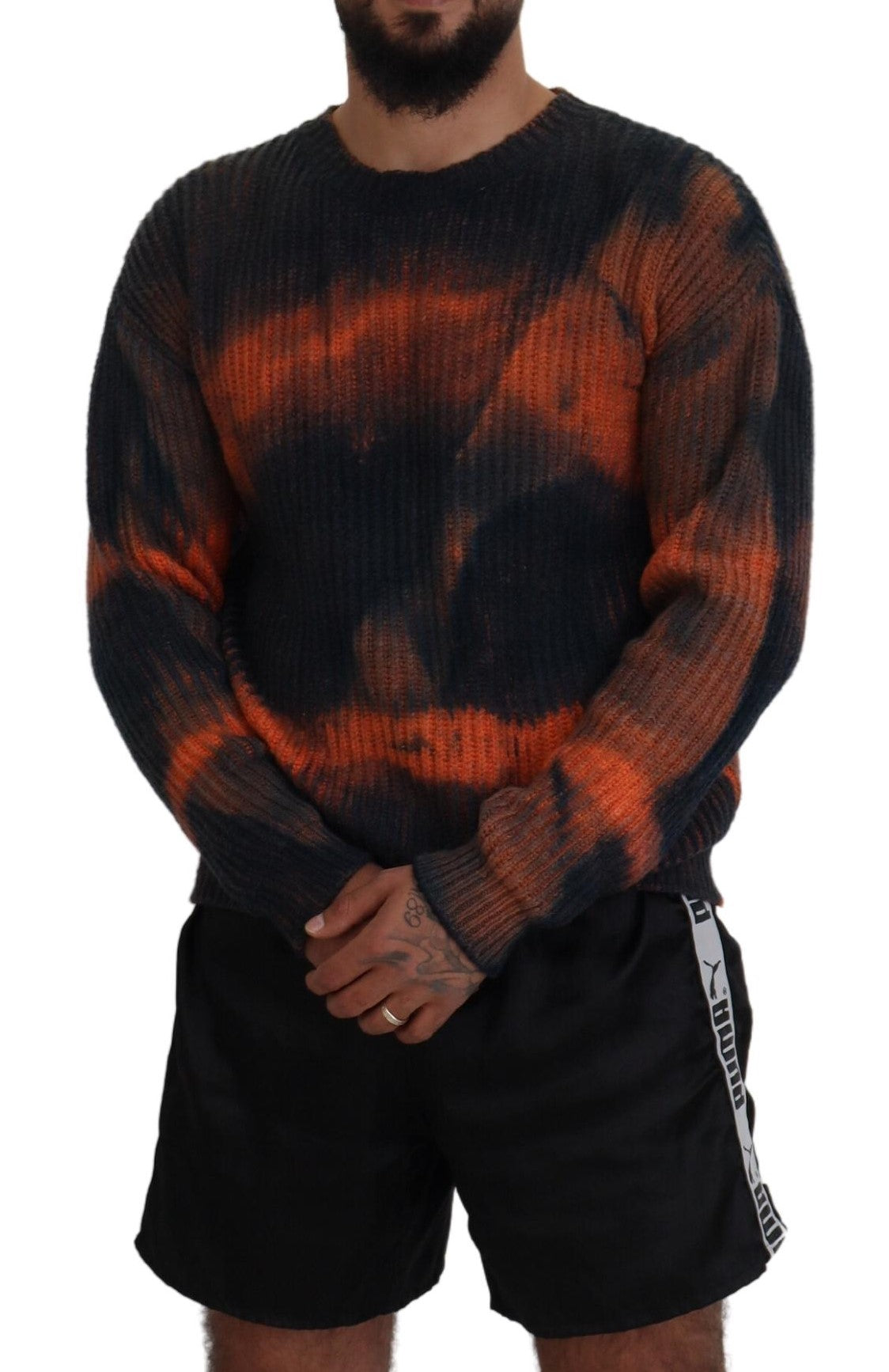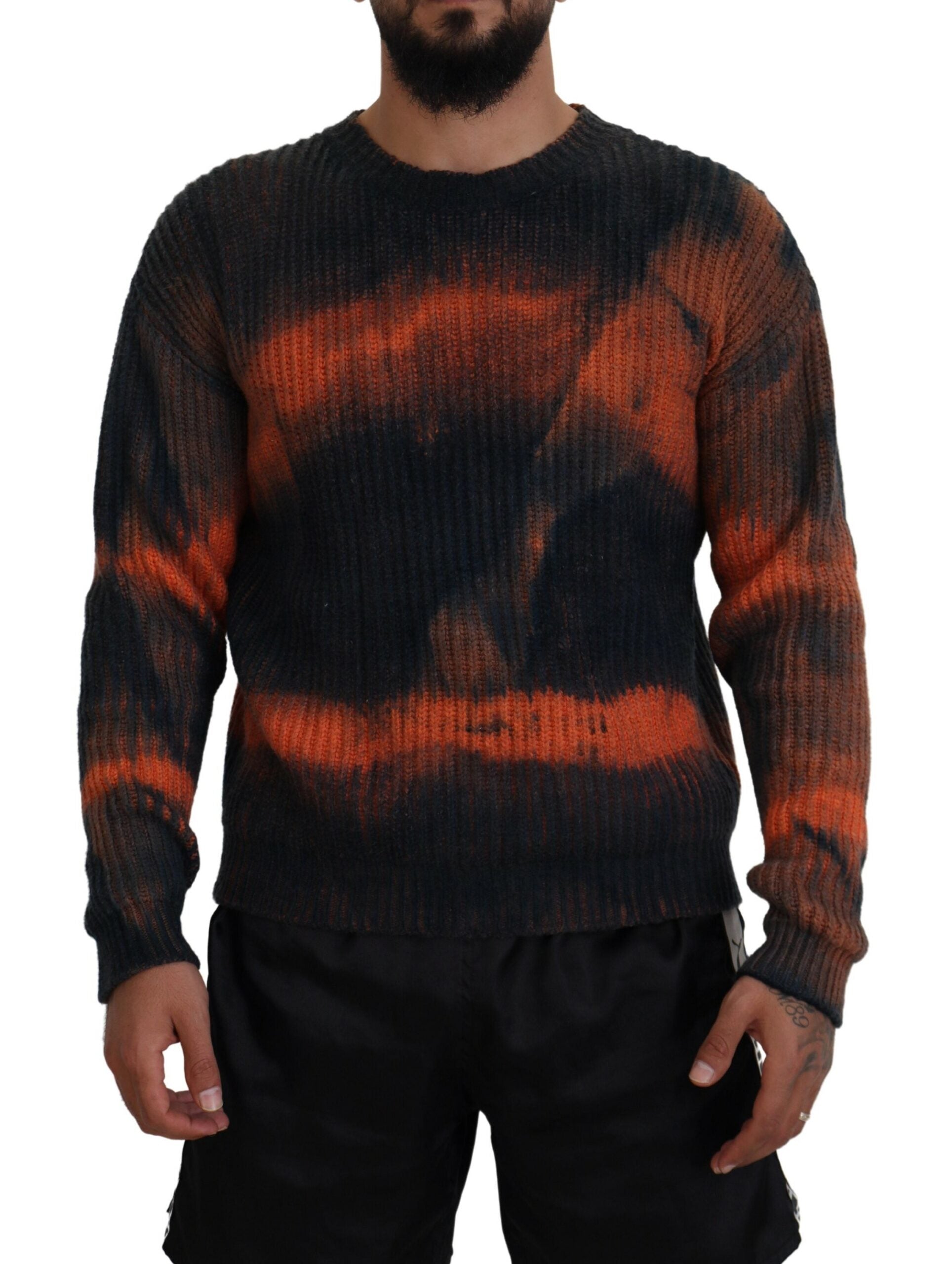 Dsquared² Black Orange Cotton Tie Dye Men Pullover Sweater
