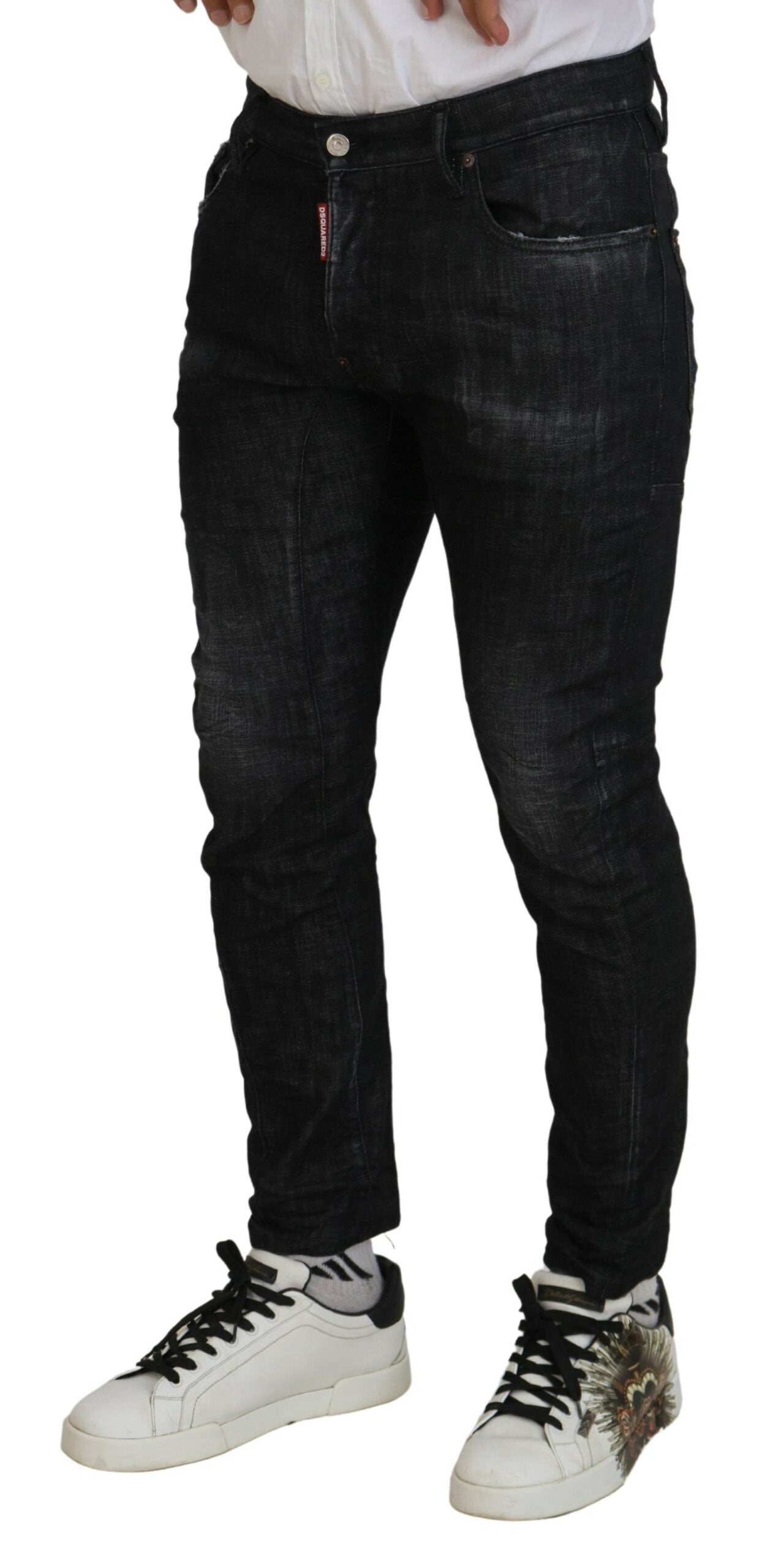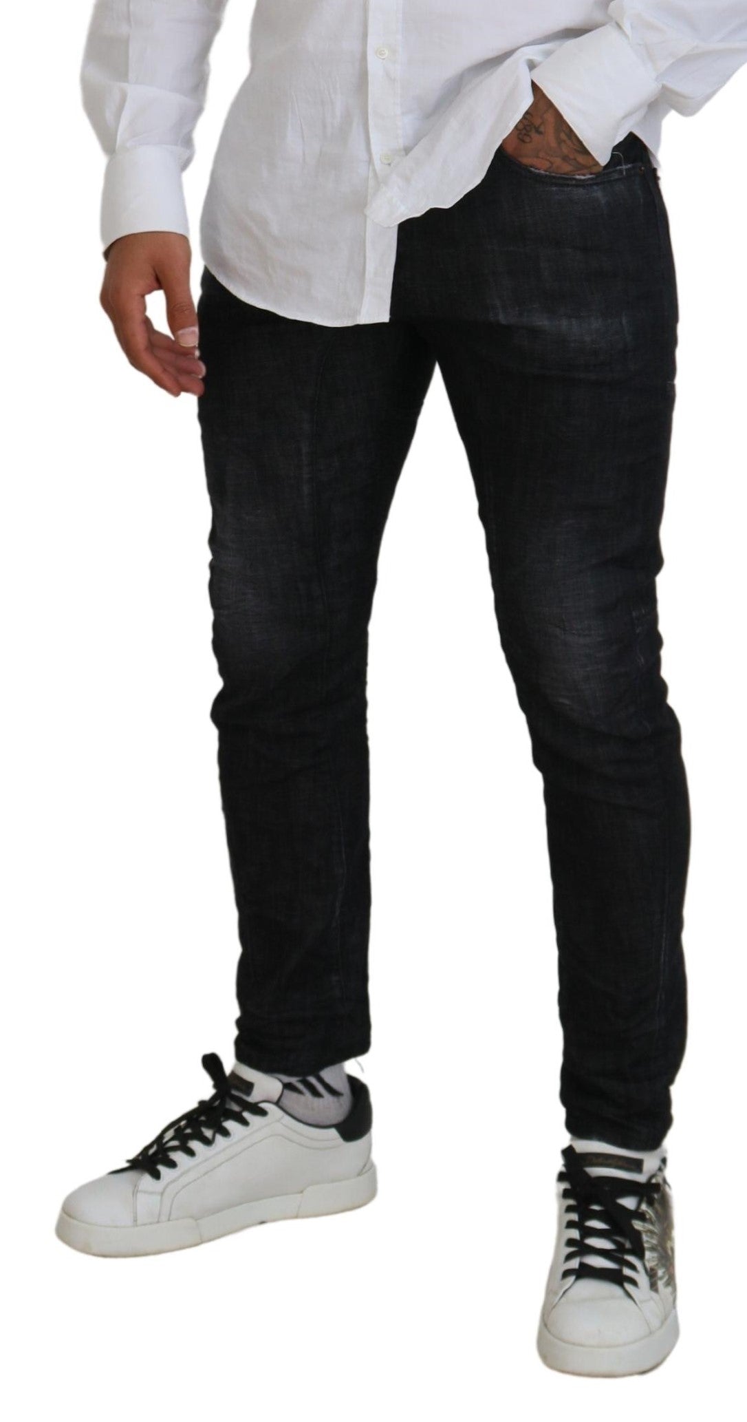 Dsquared² Black Washed Cotton Skinny Casual Men Denim Jeans