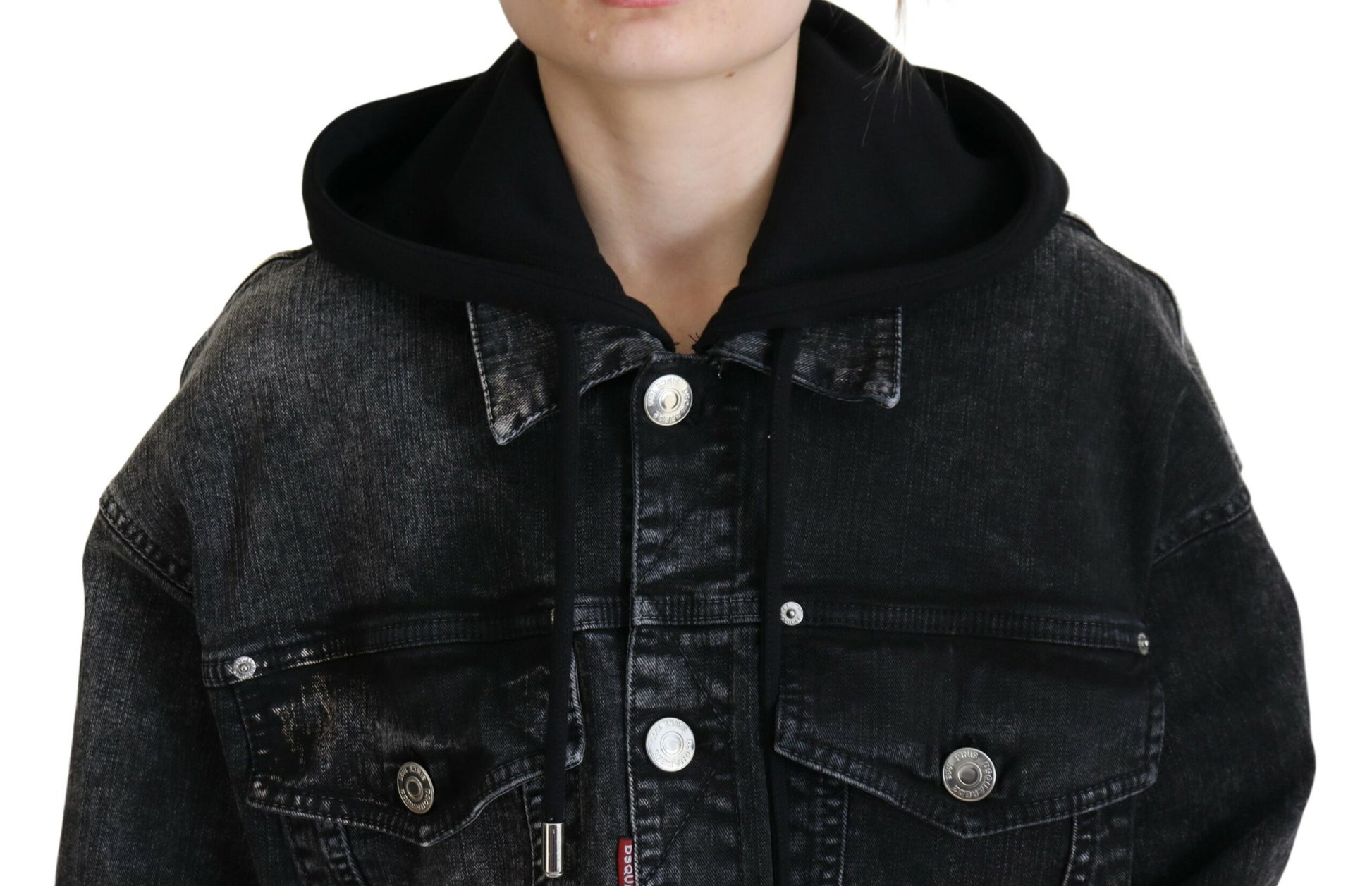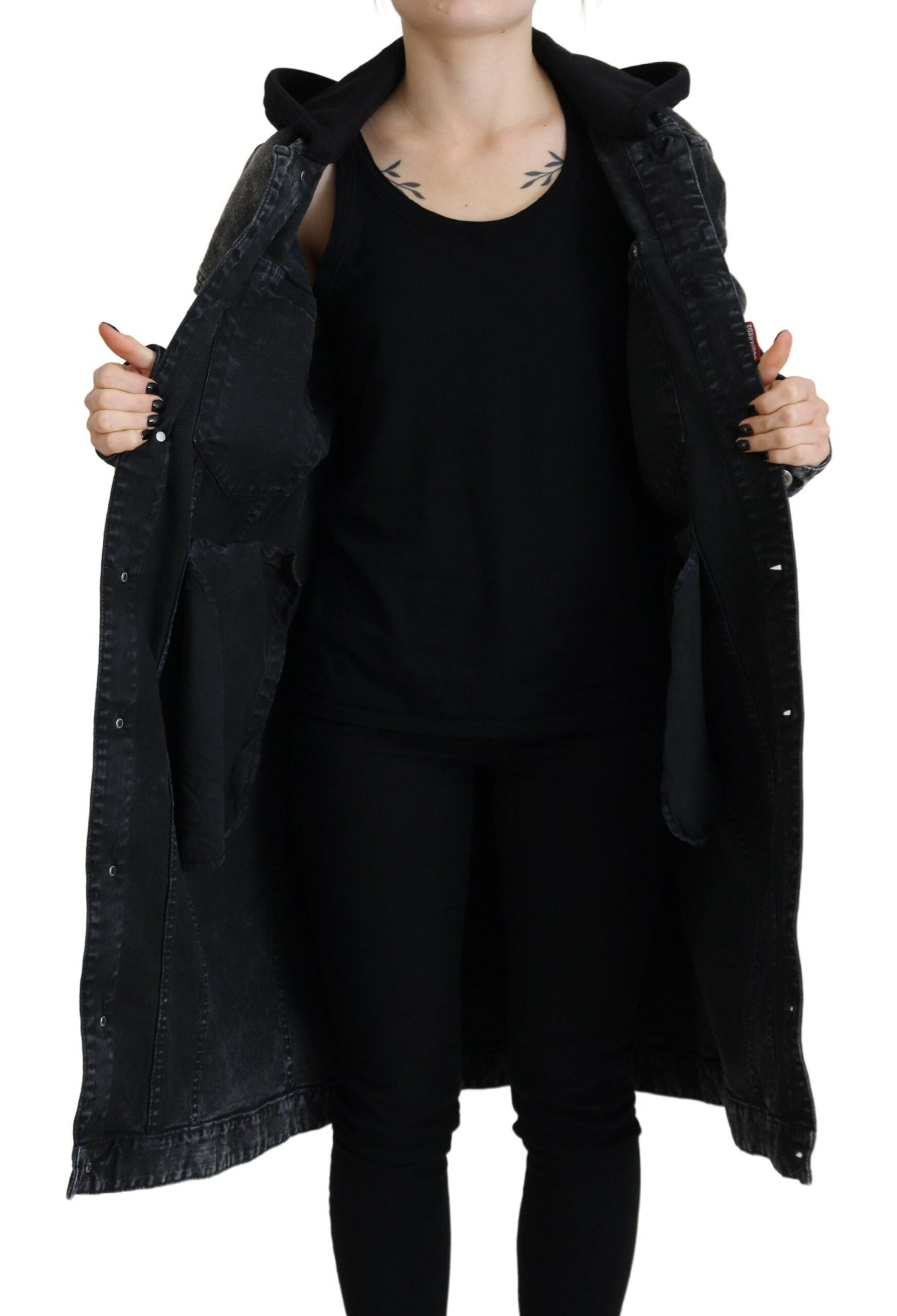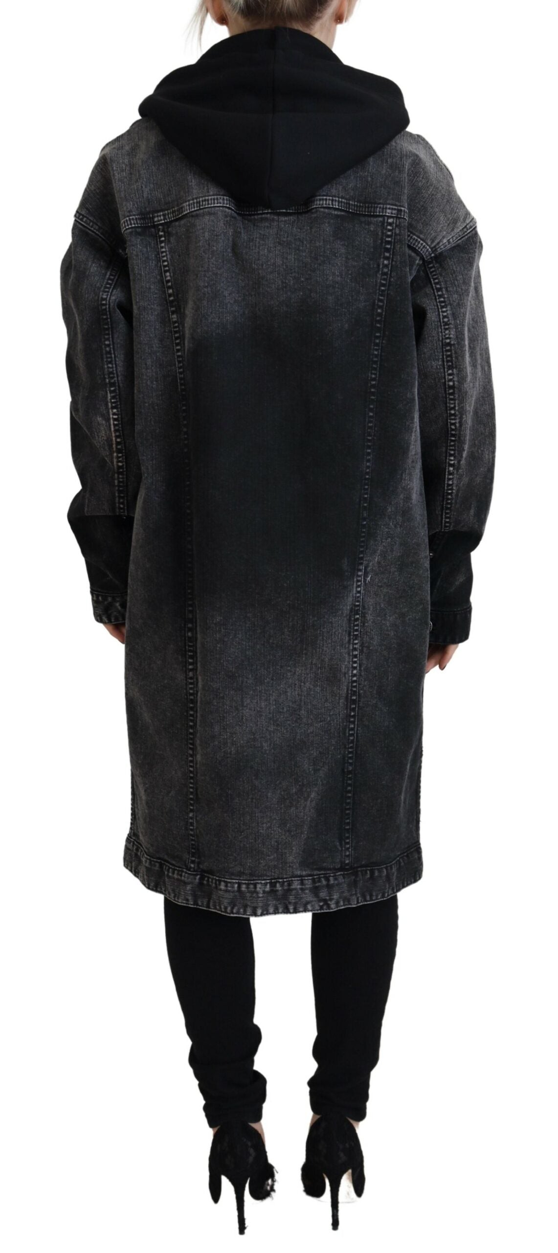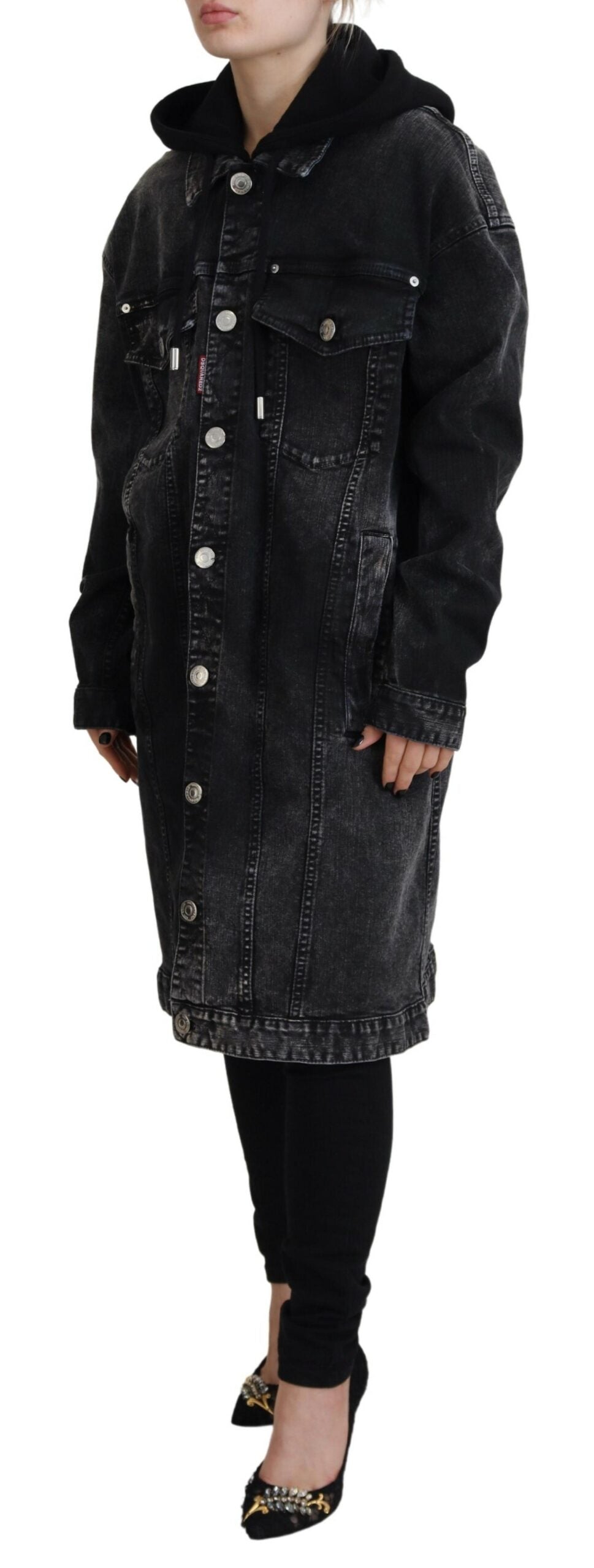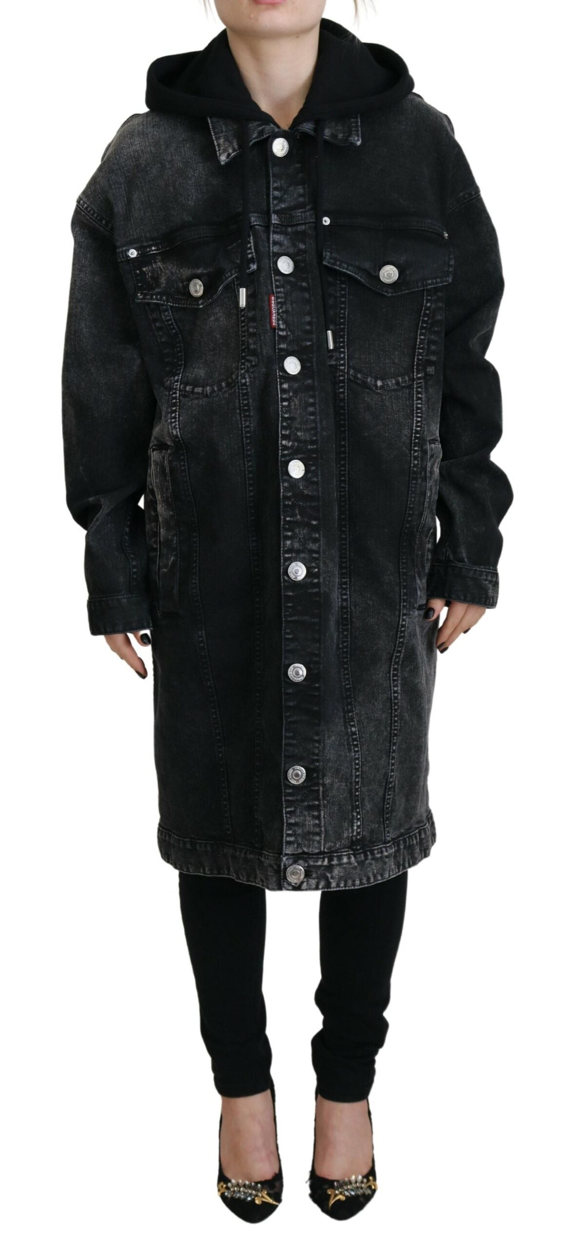 Dsquared² Black Washed Hooded Women Long Denim Blazer Jacket