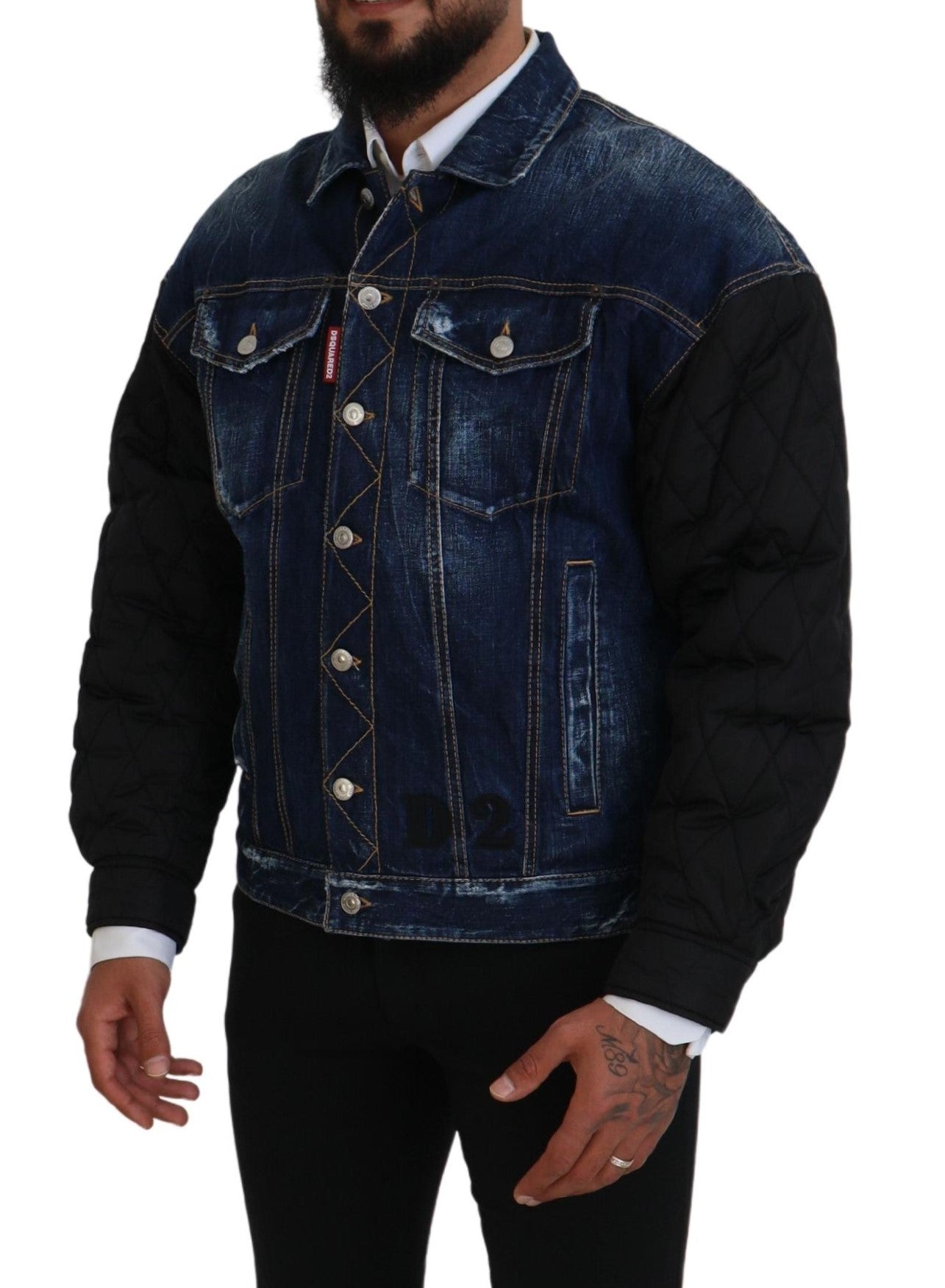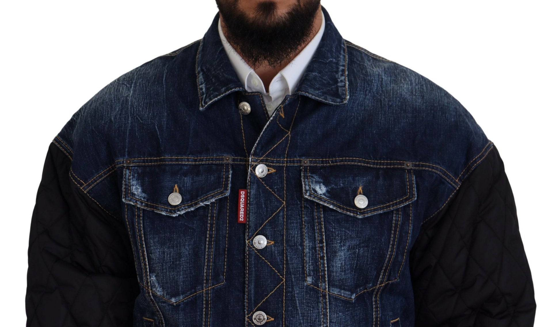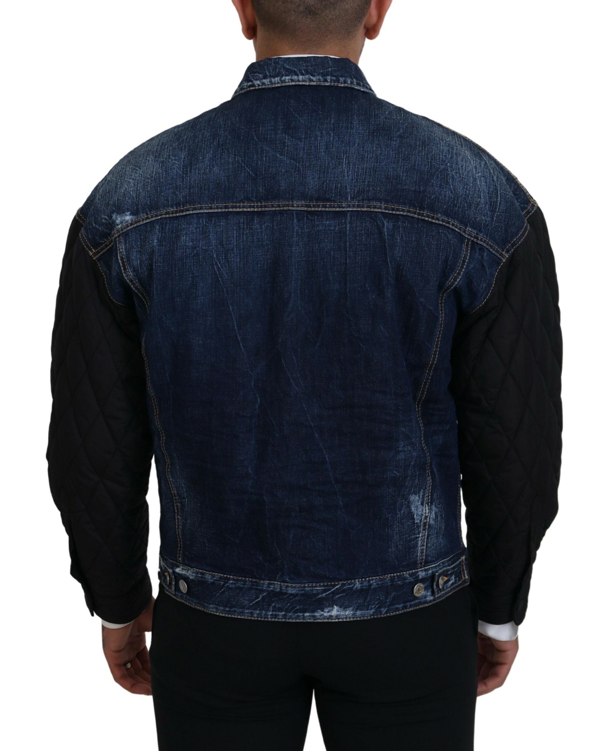 Dsquared² Blue Denim Black Sleeves Men Jacket Cotton Bomber