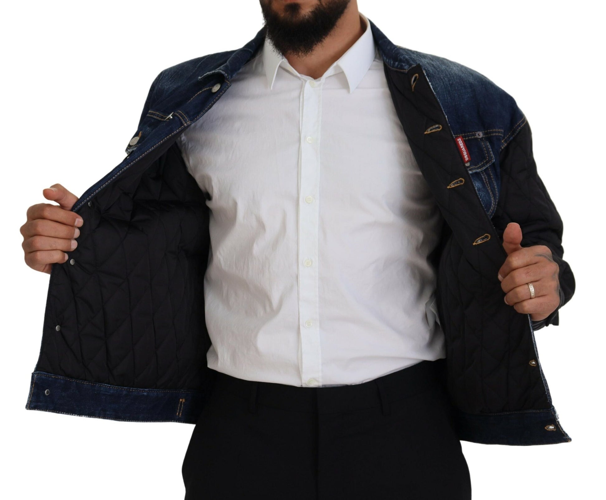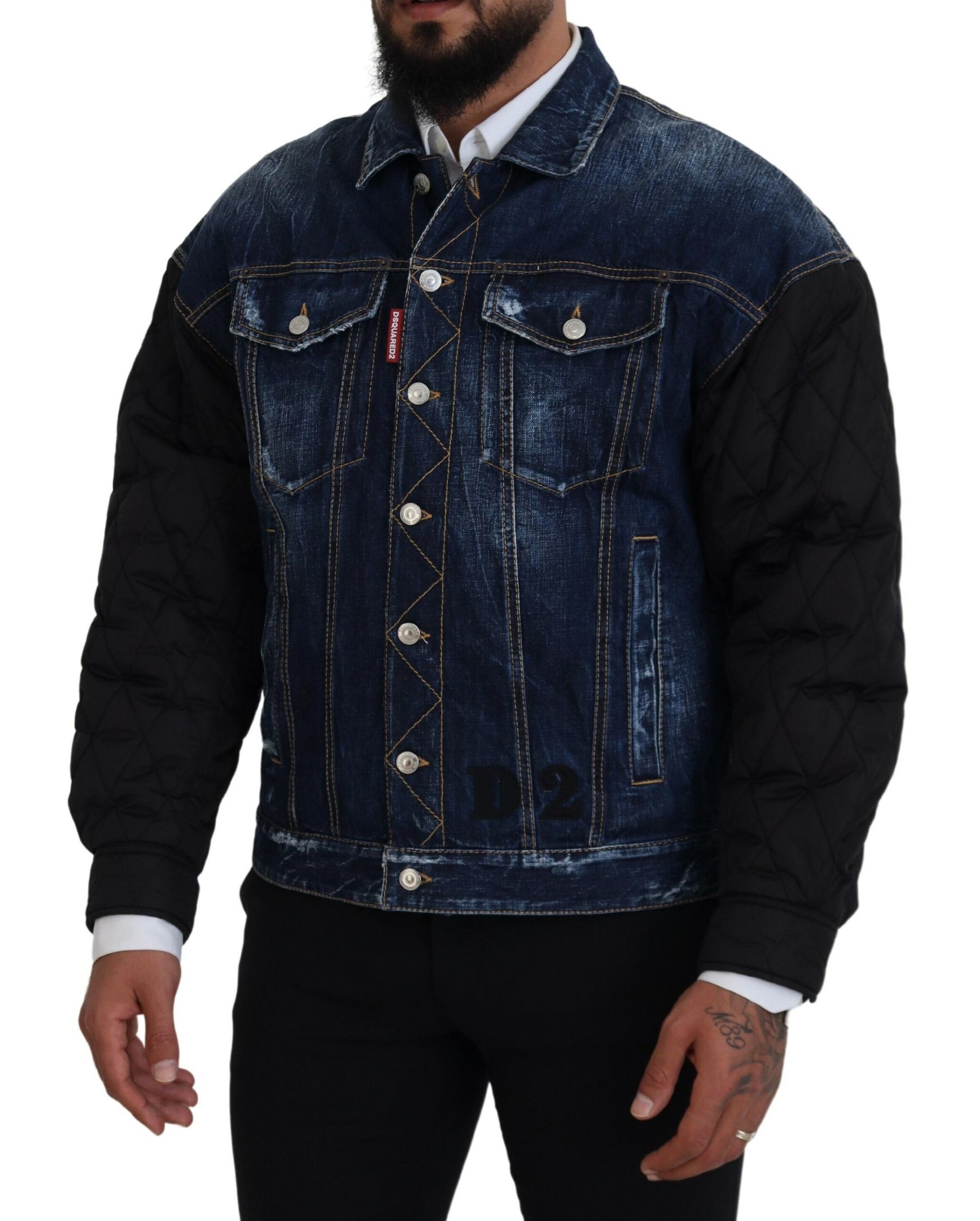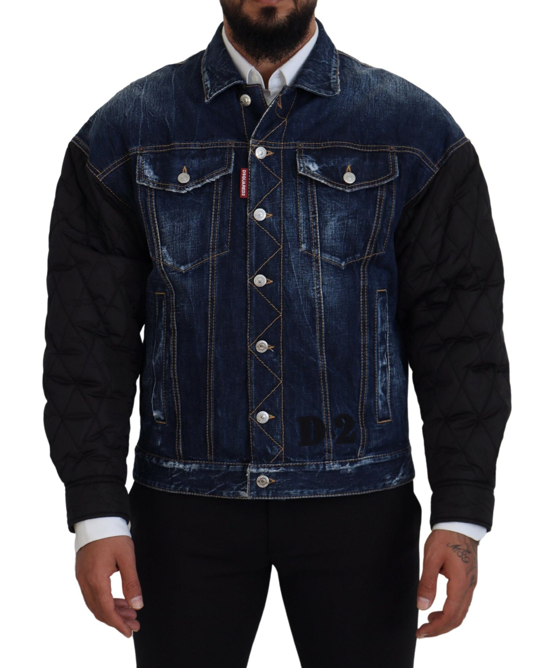 Dsquared² Blue Denim Black Sleeves Men Jacket Cotton Bomber