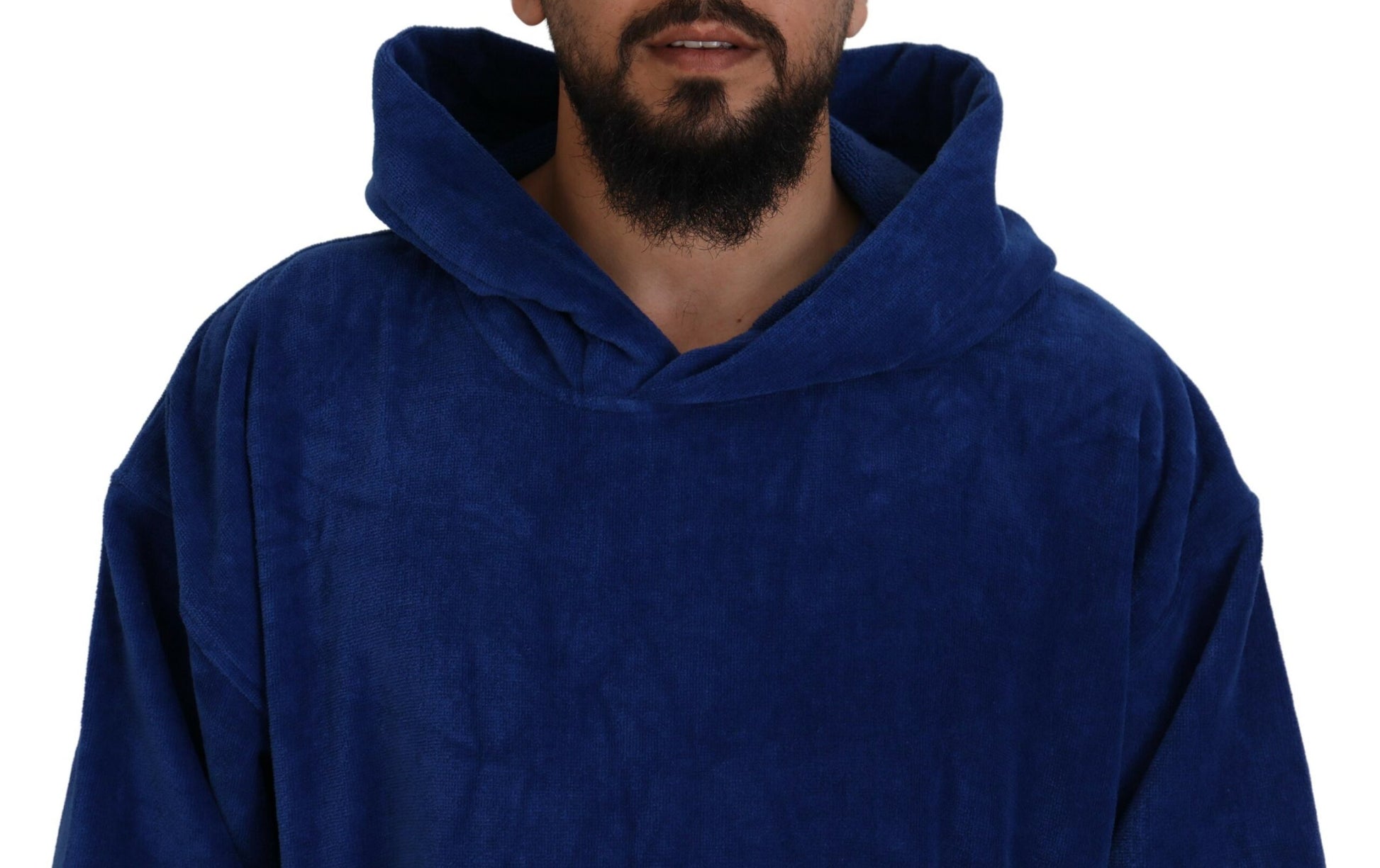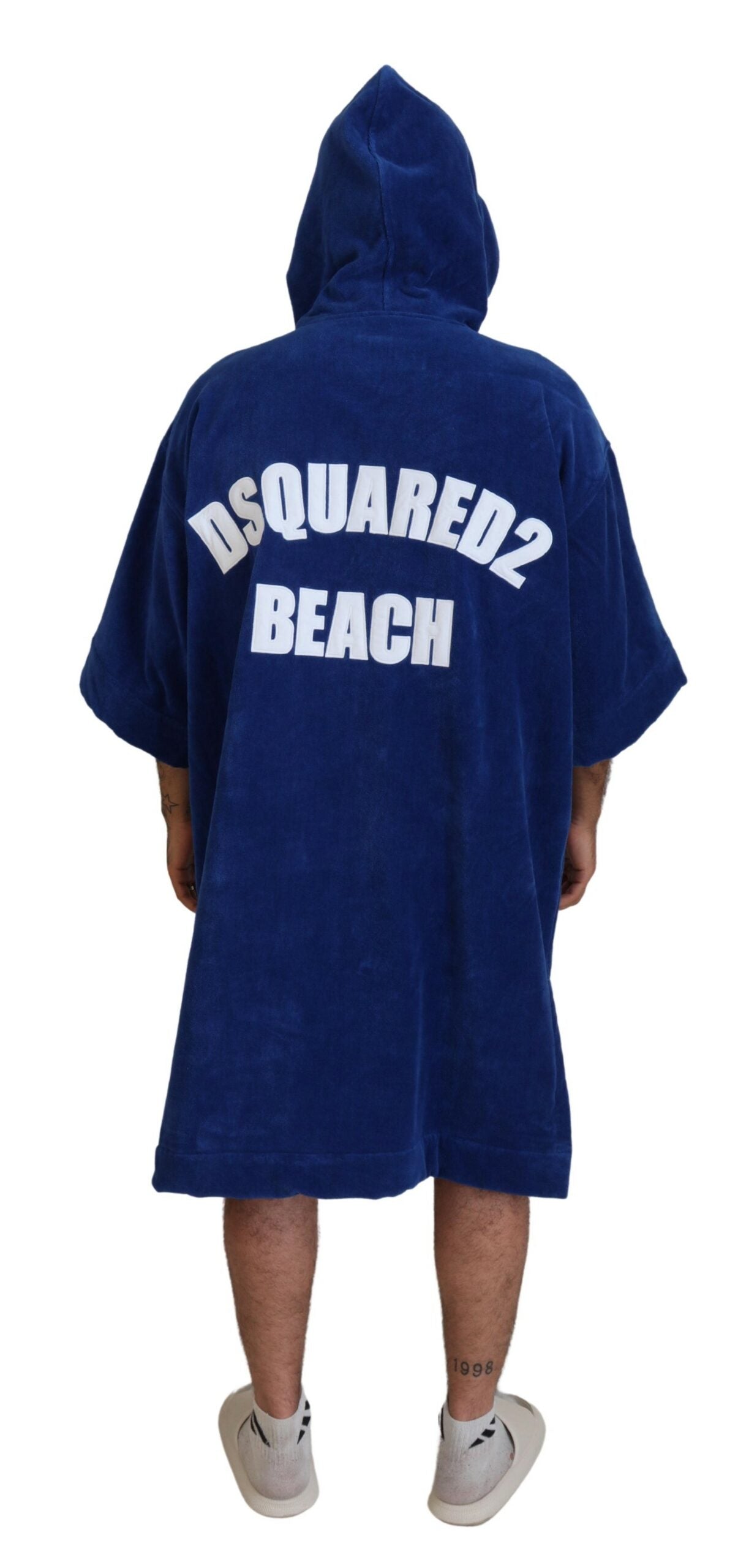 Dsquared² Blue Poncho Men Hooded Beachwear Changing Robe