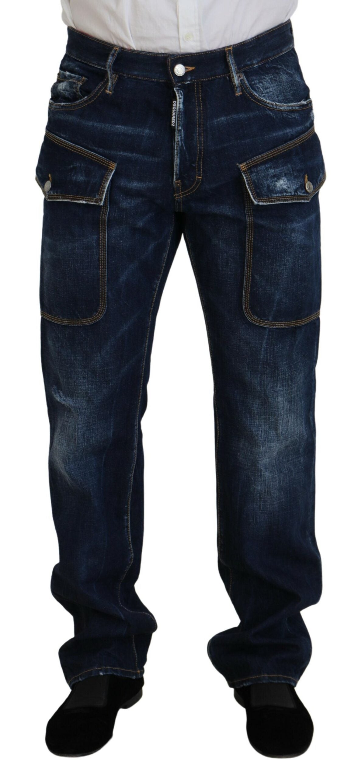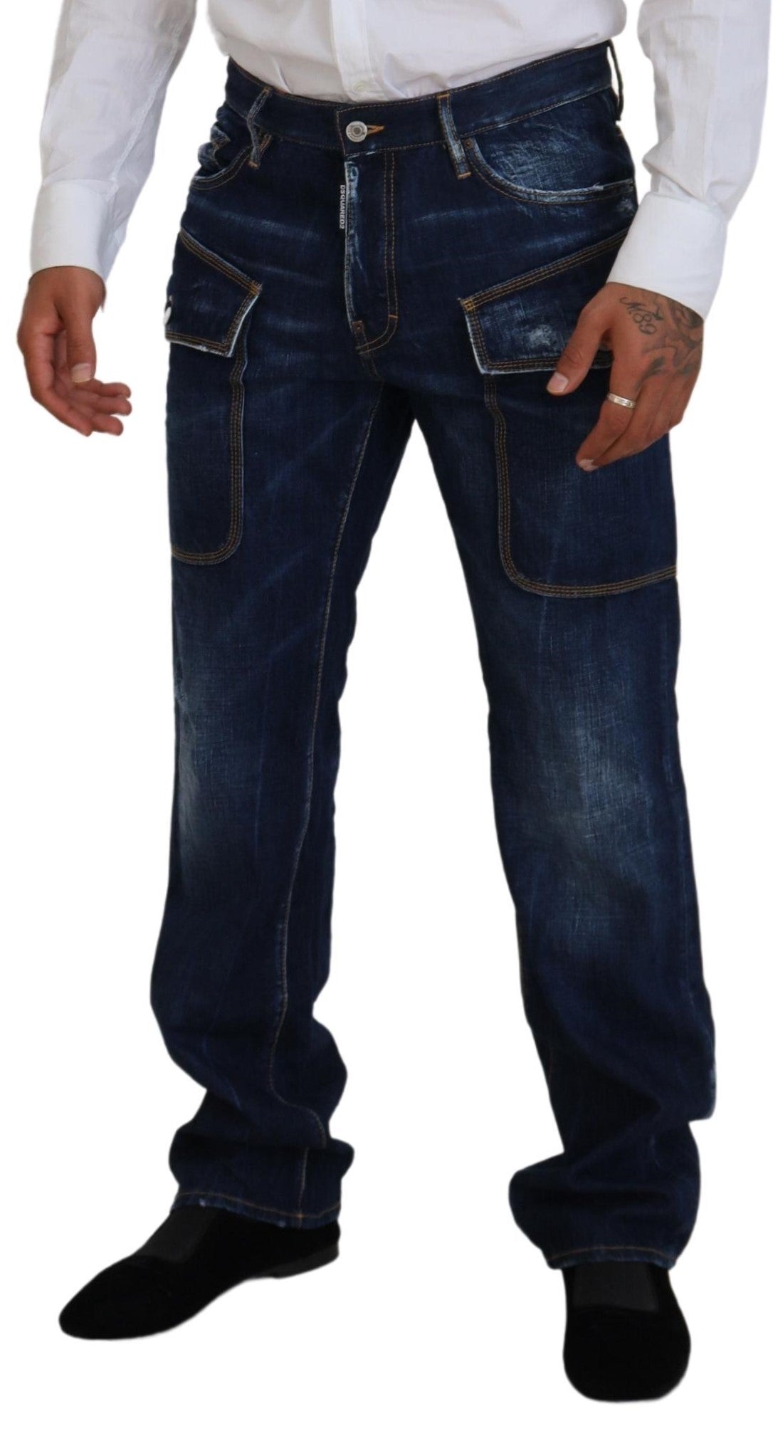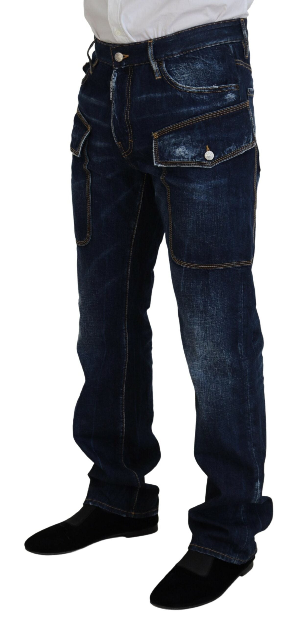 Dsquared² Blue Washed Cotton Cargo Casual Men Denim Jeans