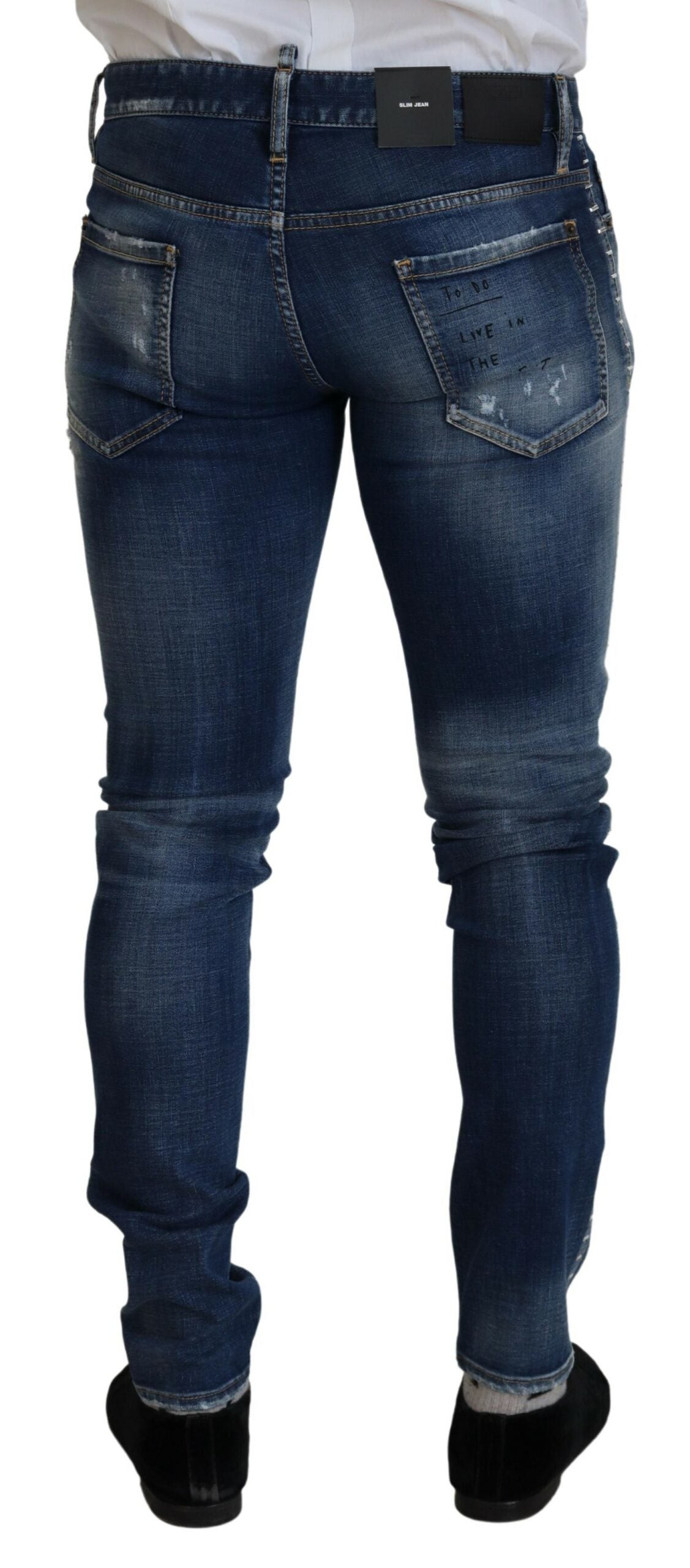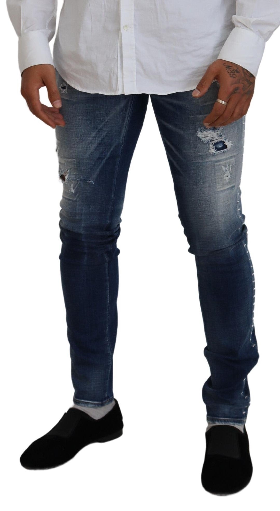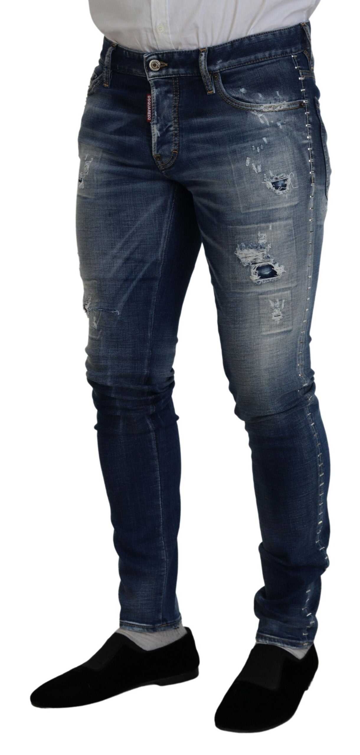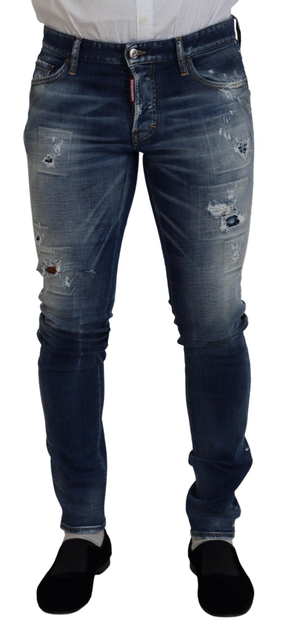 Dsquared² Blue Washed Cotton Tattered Skinny Denim Jeans