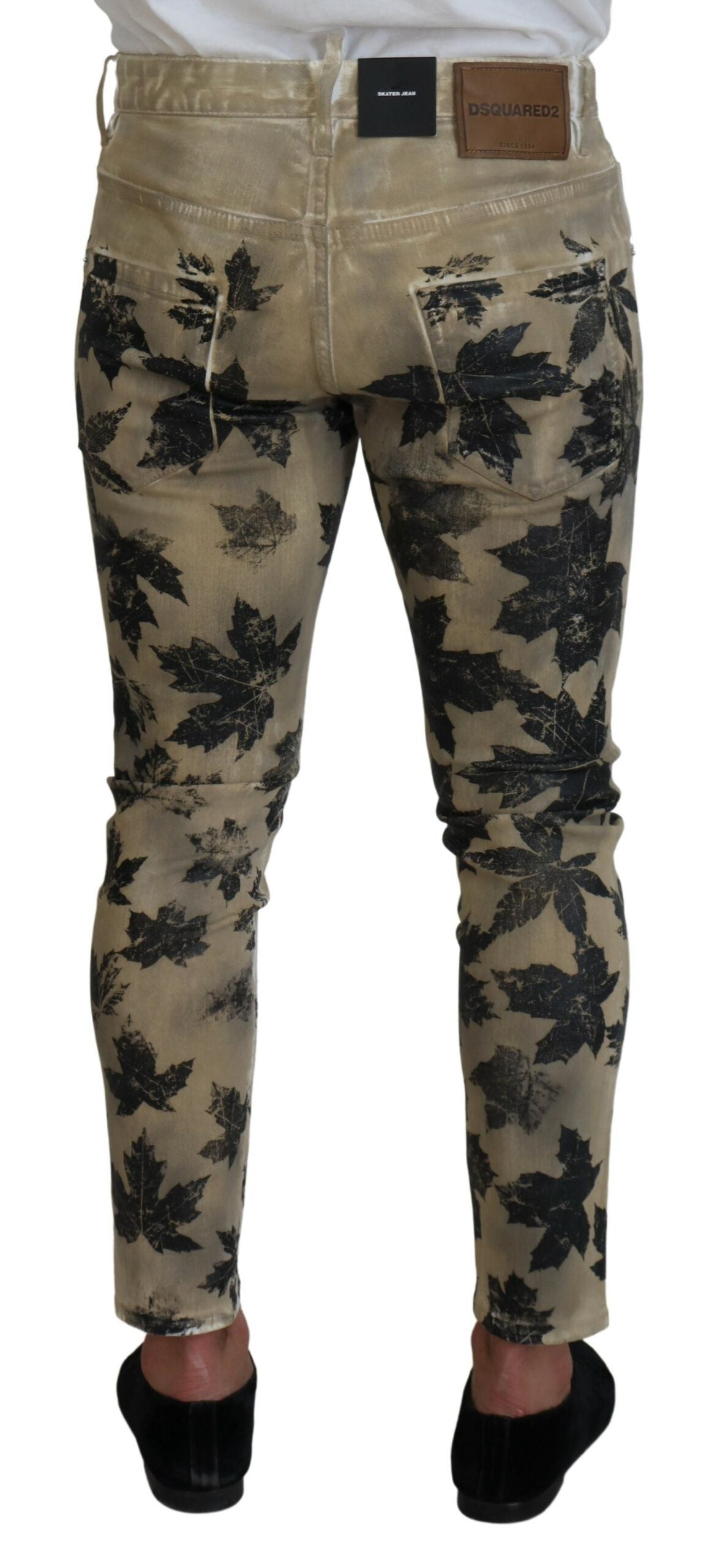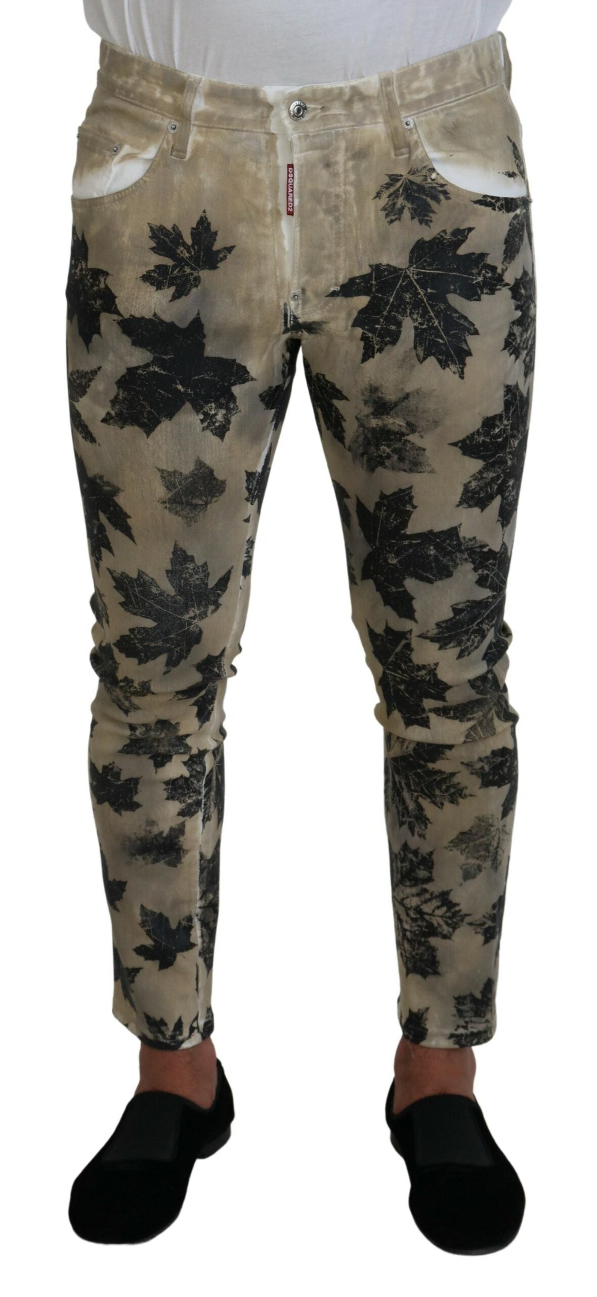 Dsquared² Brown Cotton Printed Skinny Men Casual Denim Jeans