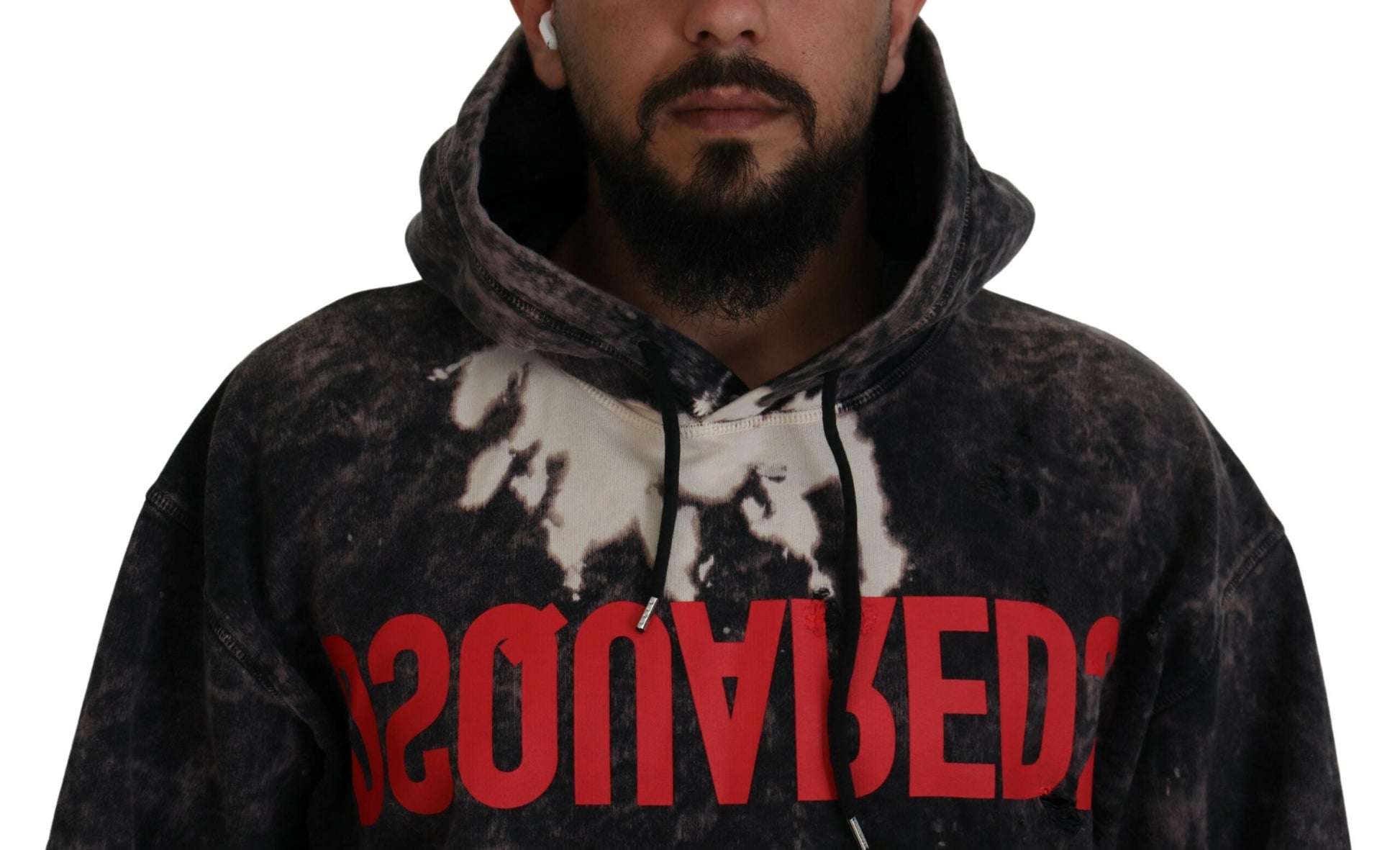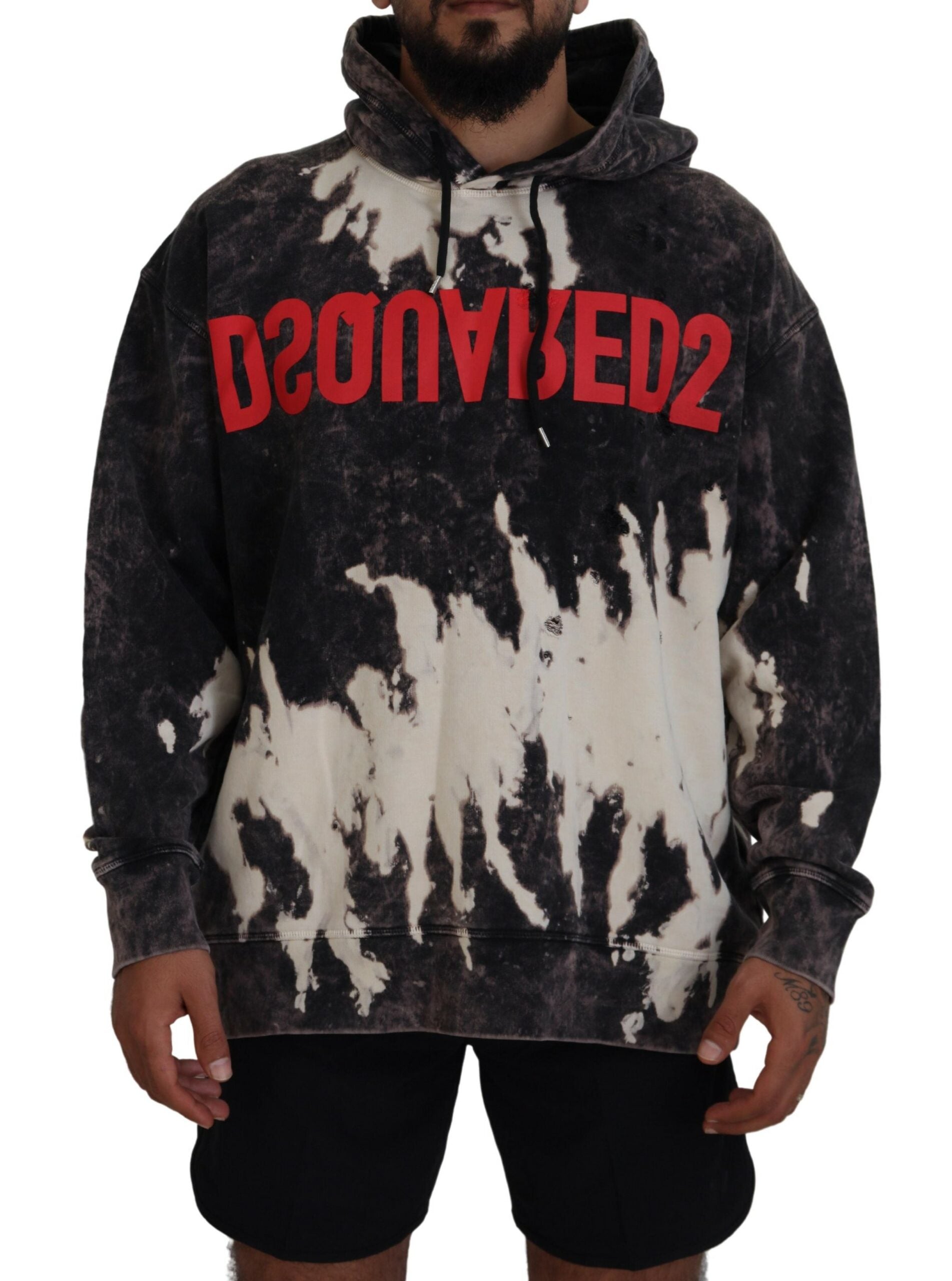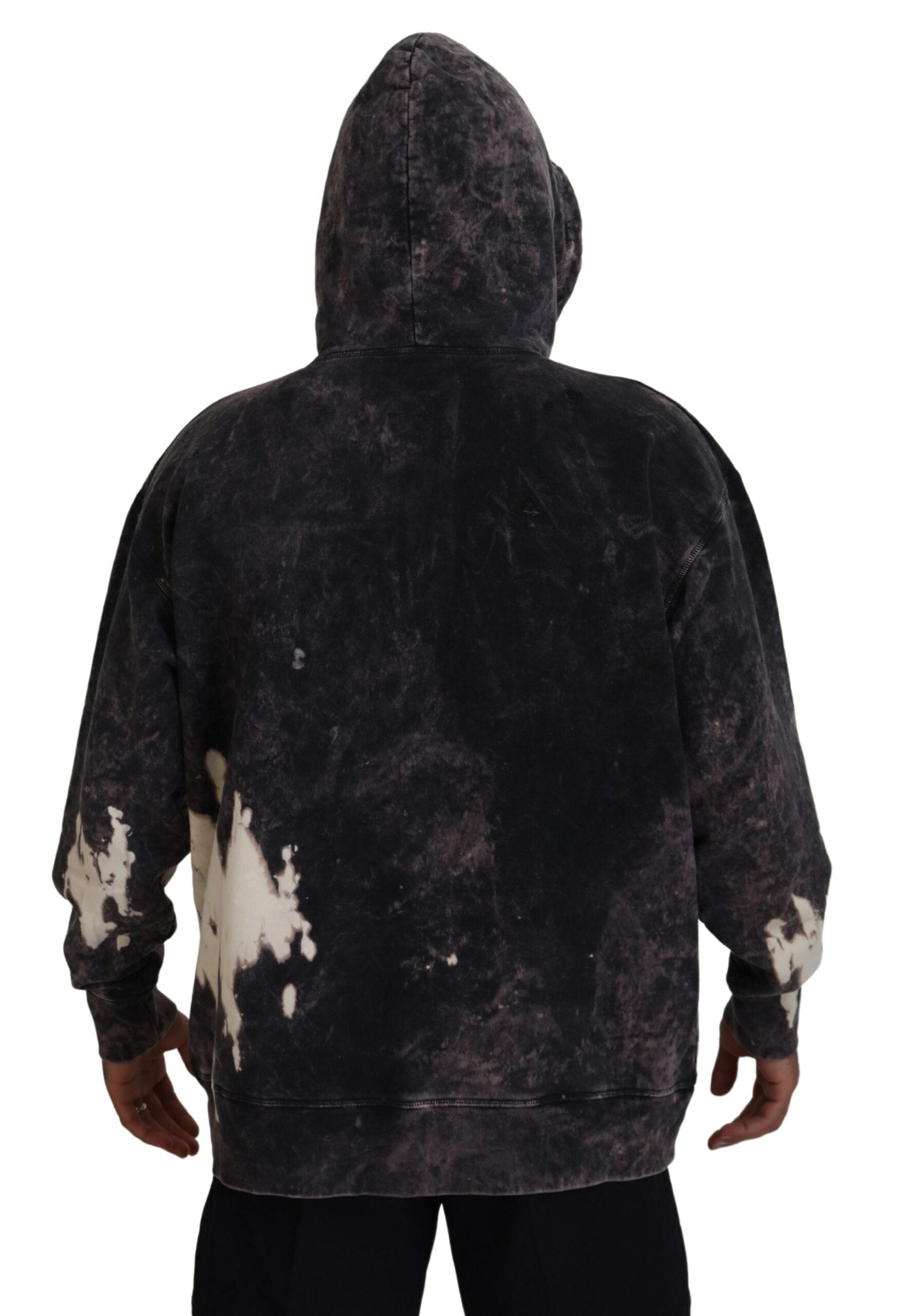 Dsquared² Gray Wash Hooded Printed Men Pullover Sweater