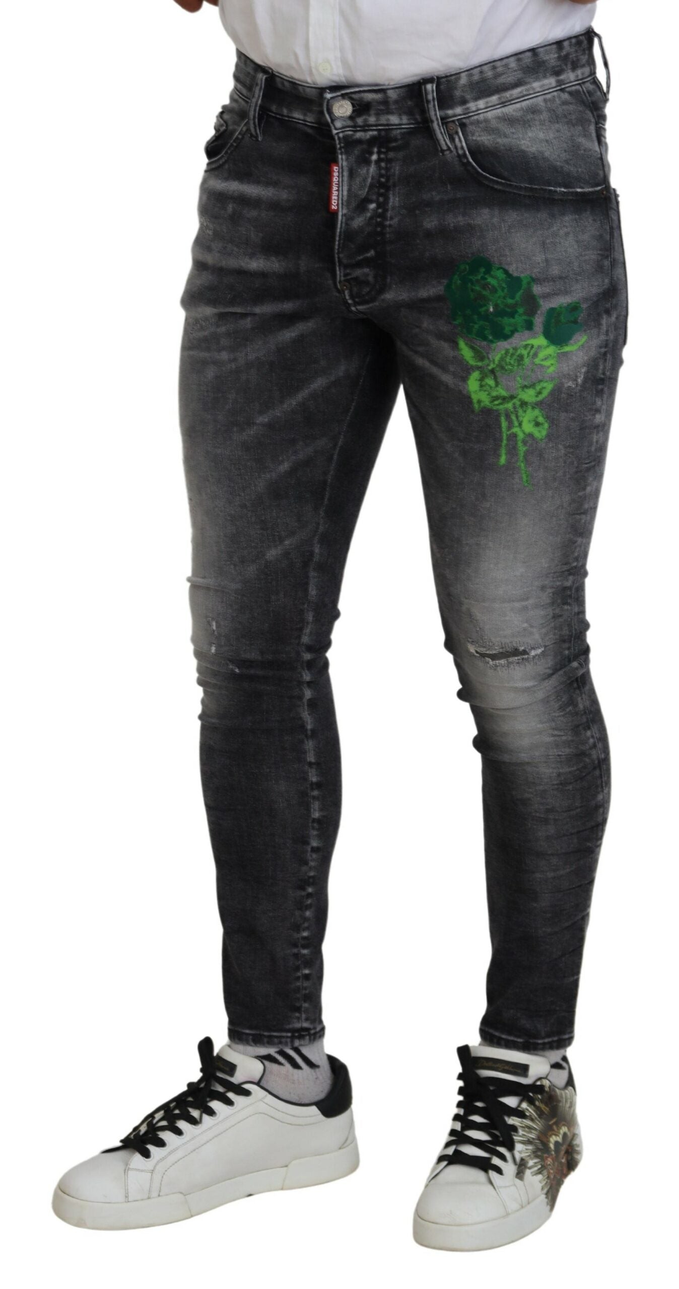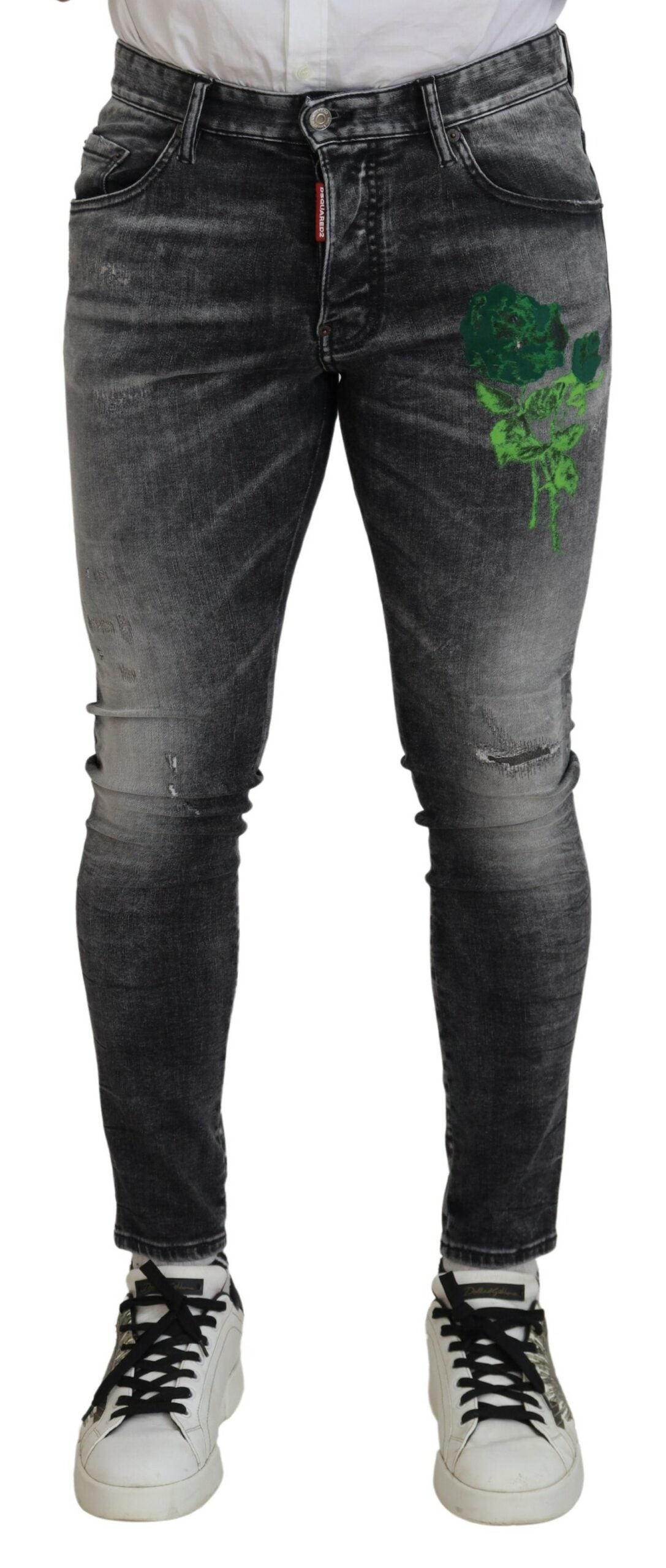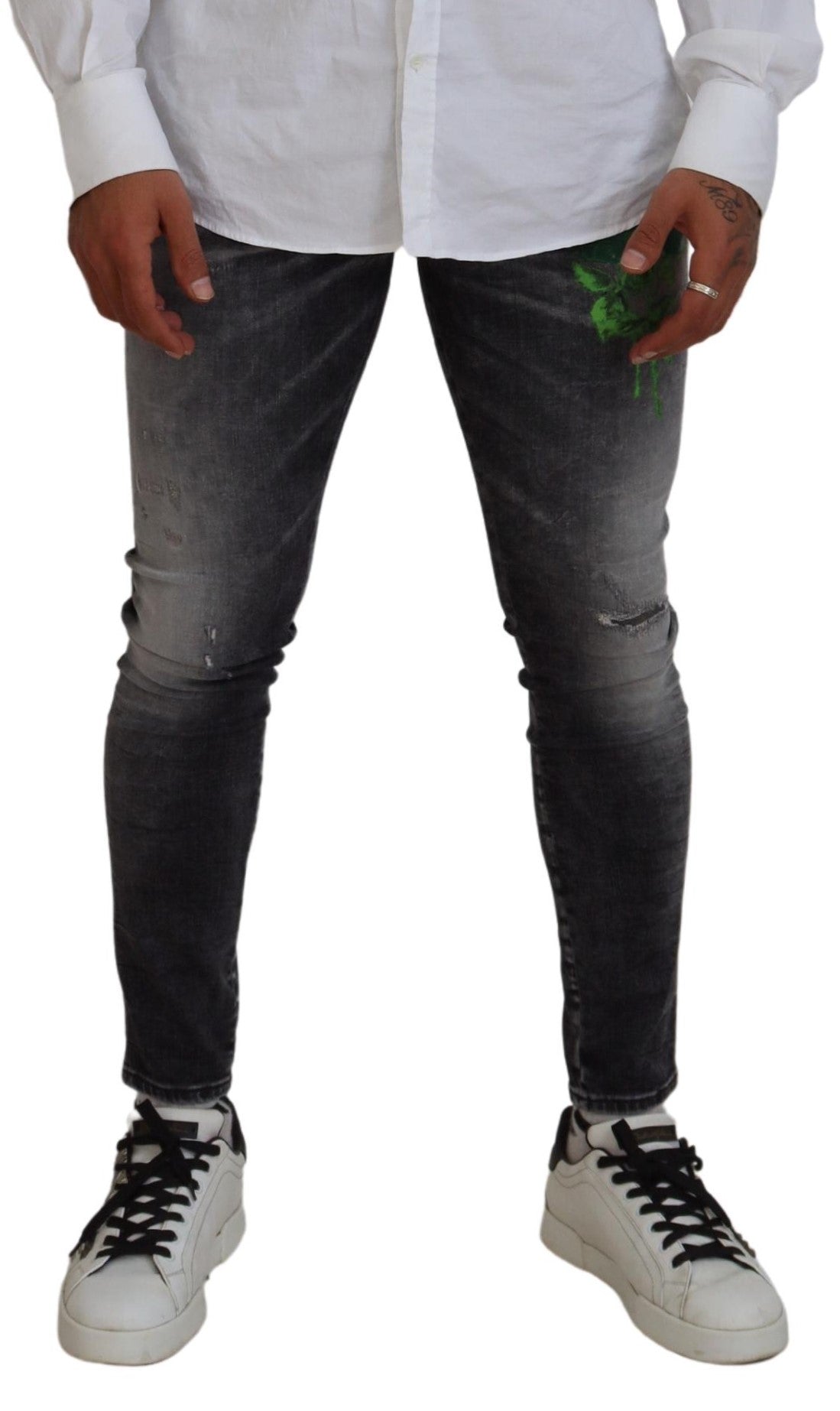 Dsquared² Gray Washed Green Print Skinny Casual Denim Jeans