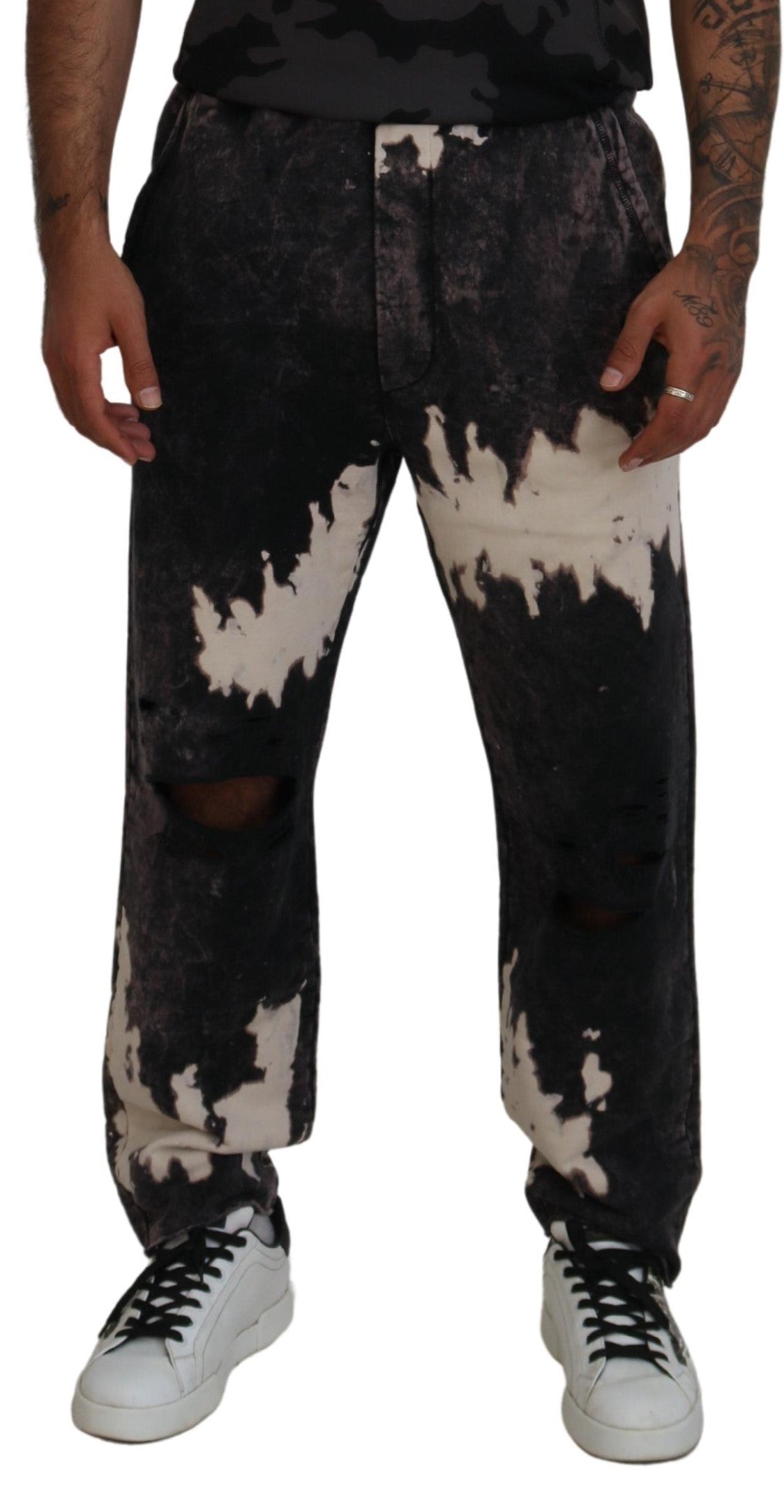 Dsquared² Gray Washed Tie Dye Tattered Men Pants