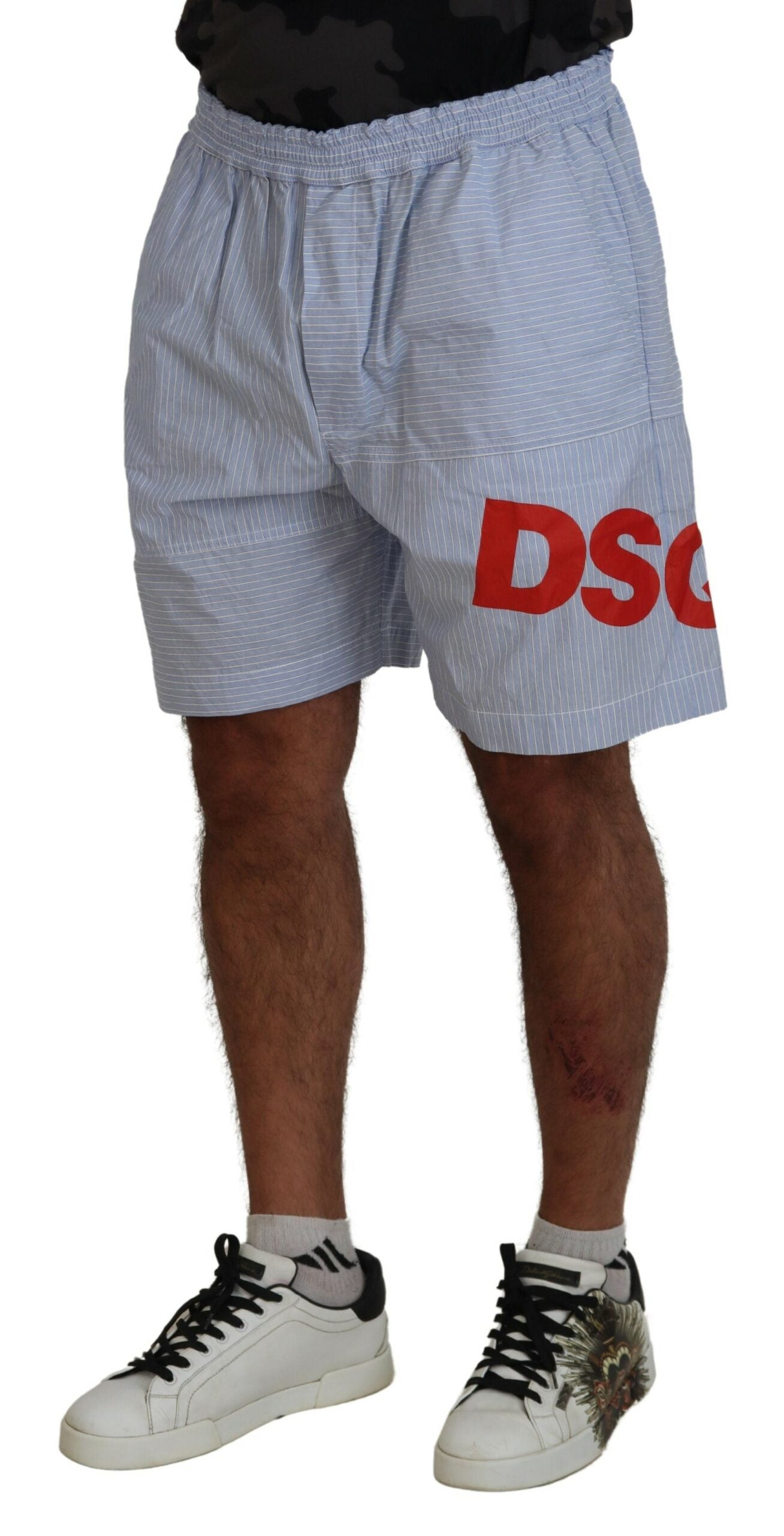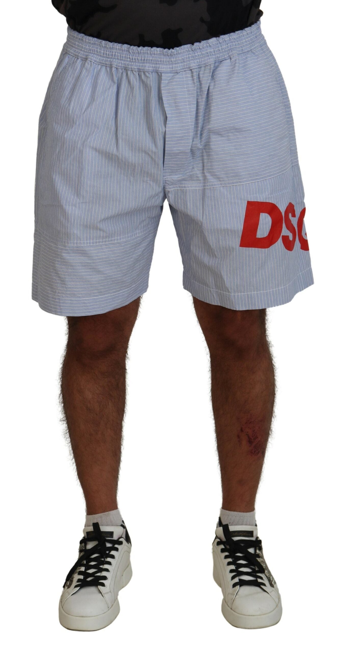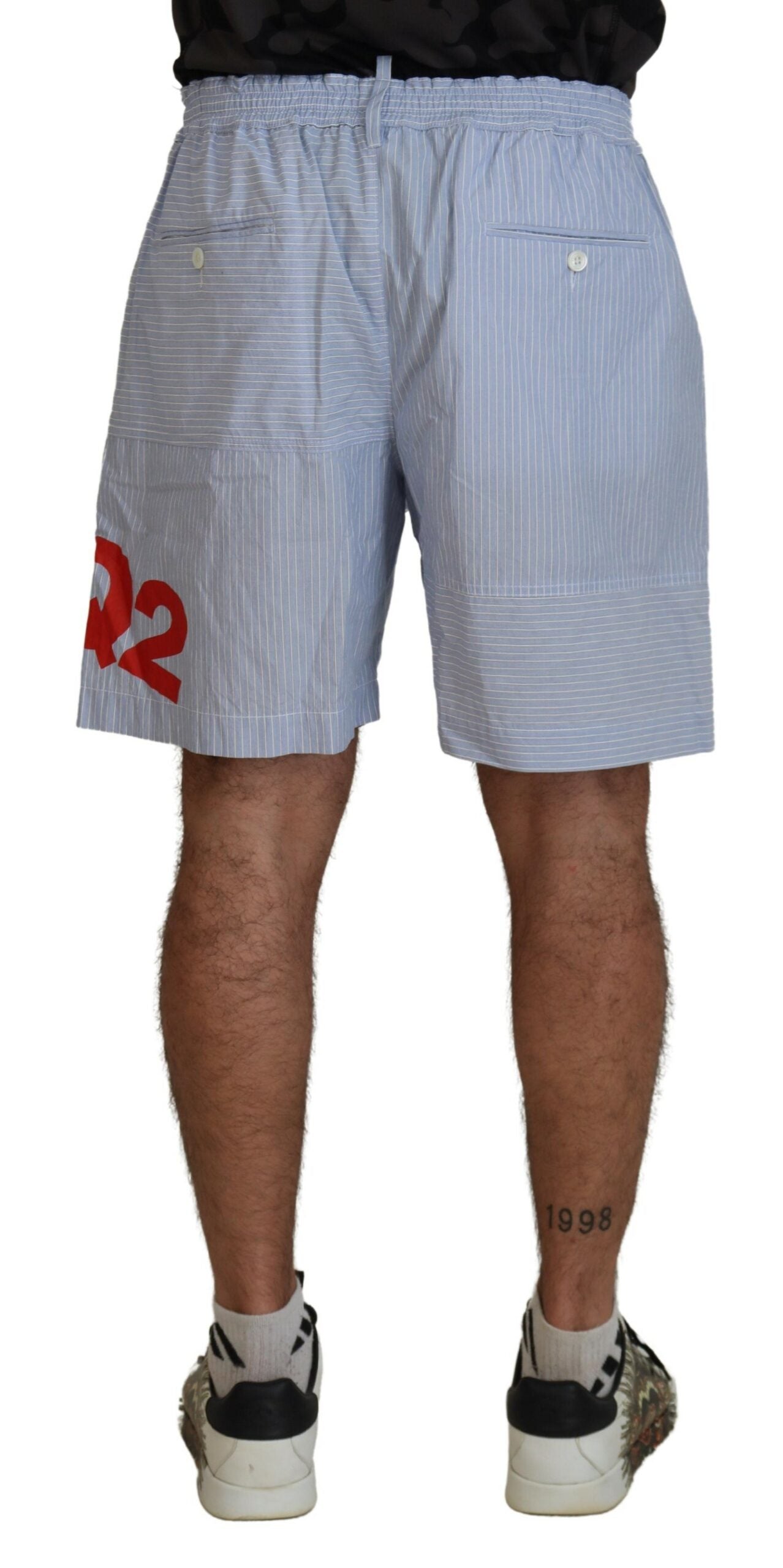 Dsquared² Light Blue Striped Printed Logo Print Casual Shorts
