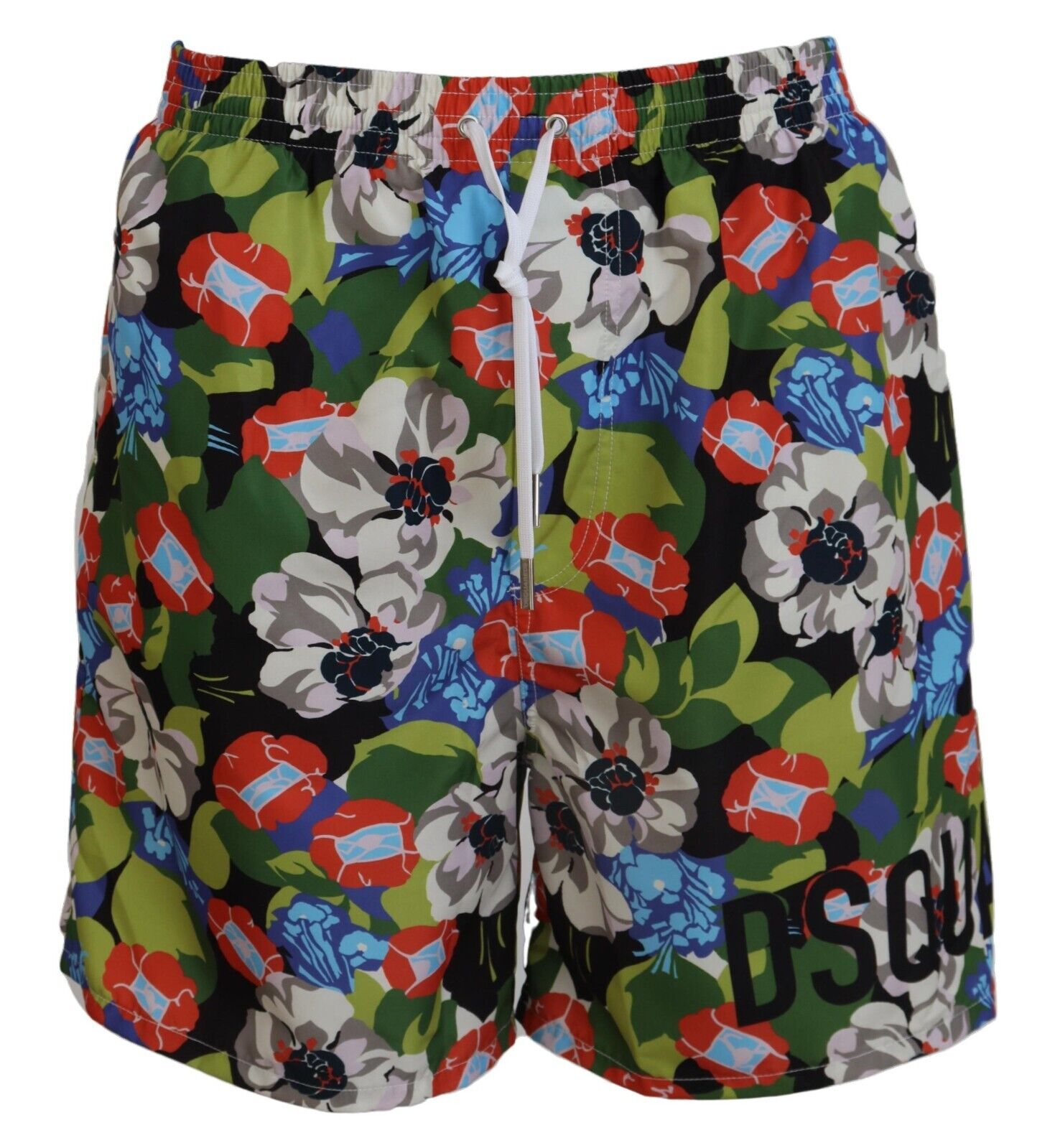 Step into summer with panache in these vibrant Dsquared² Swim Shorts. These exclusive swim trunks boast an eye-catching multicolor floral print, designed to make a splash at the pool or beach. Crafted from high-quality 100% polyester, these shorts offer both comfort and durability. The elastic waist strap ensures a snug fit, while the two front pockets provide functionality without sacrificing style. Complete with the iconic Dsquared² logo details, these swim shorts are an embodiment of luxury swimwear fashion.