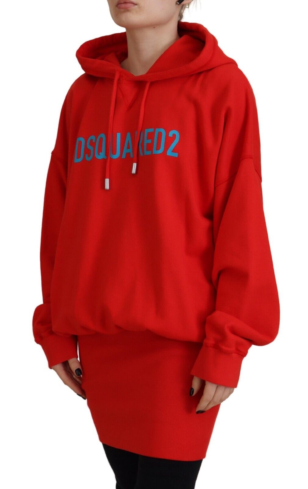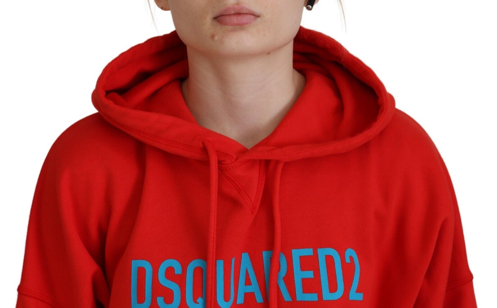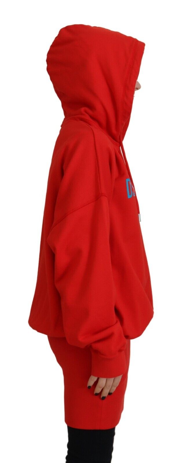 Dsquared² Red Logo Print Cotton Hoodie Sweatshirt Sweater