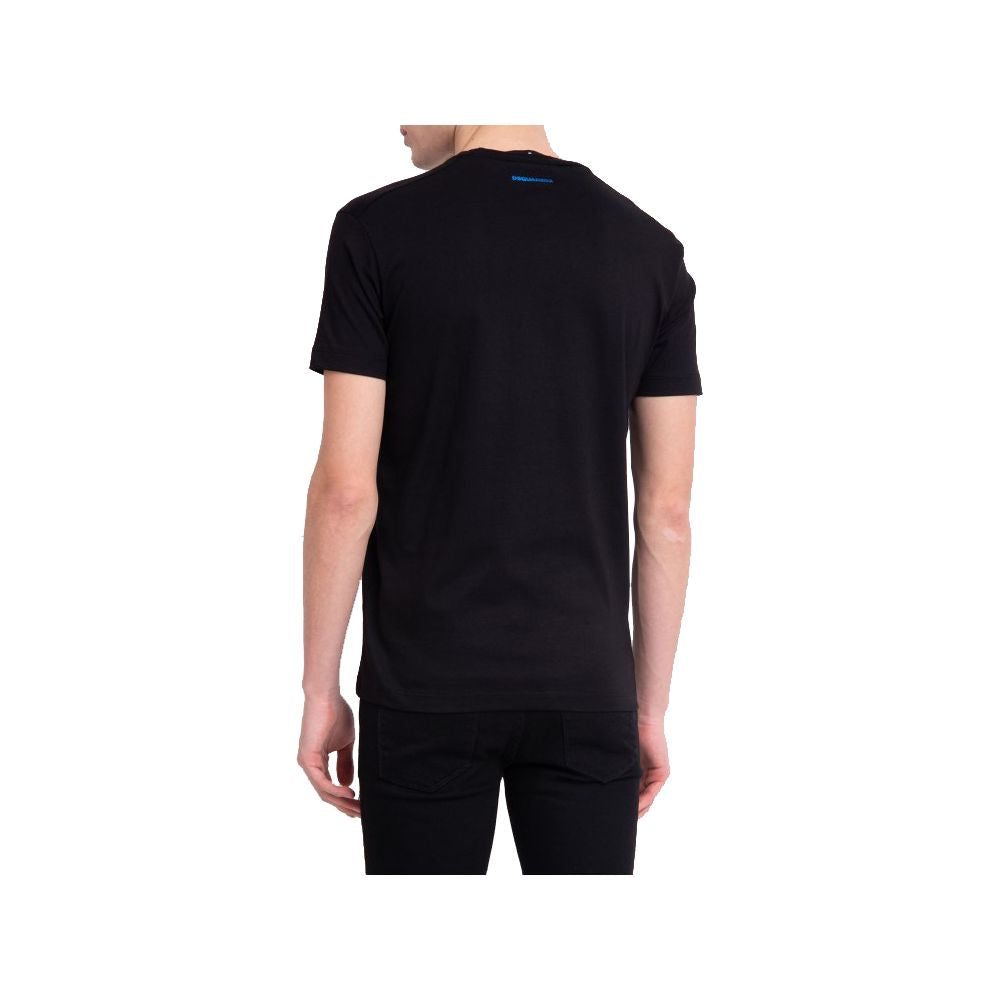 Dsquared² Sleek Black Cotton Tee with Bold Blue Accent