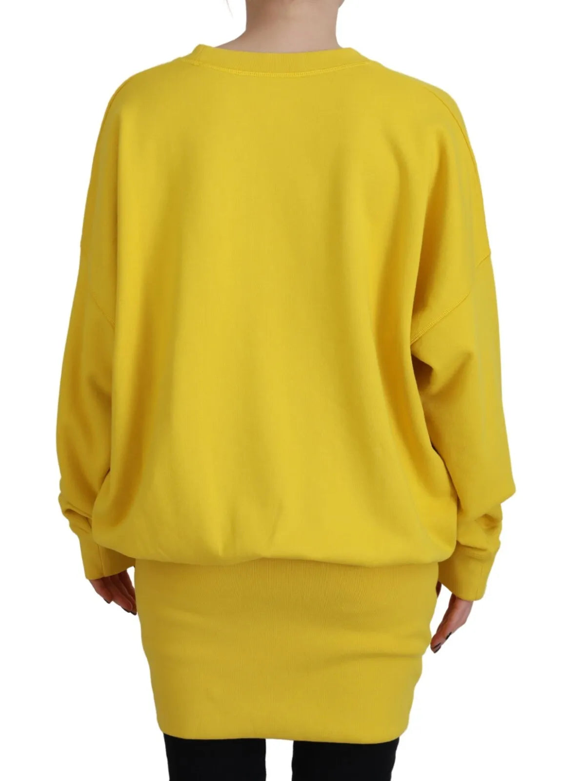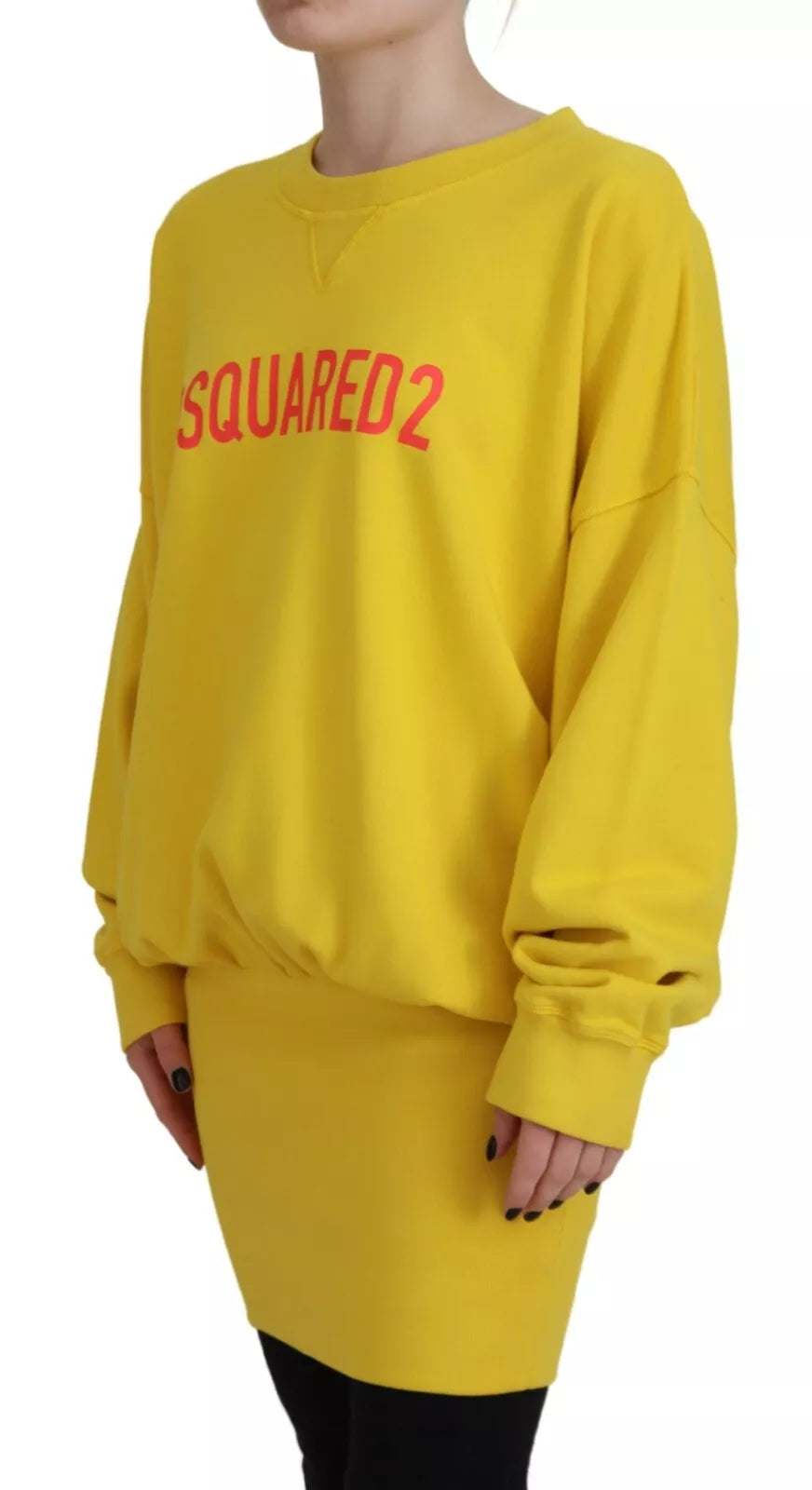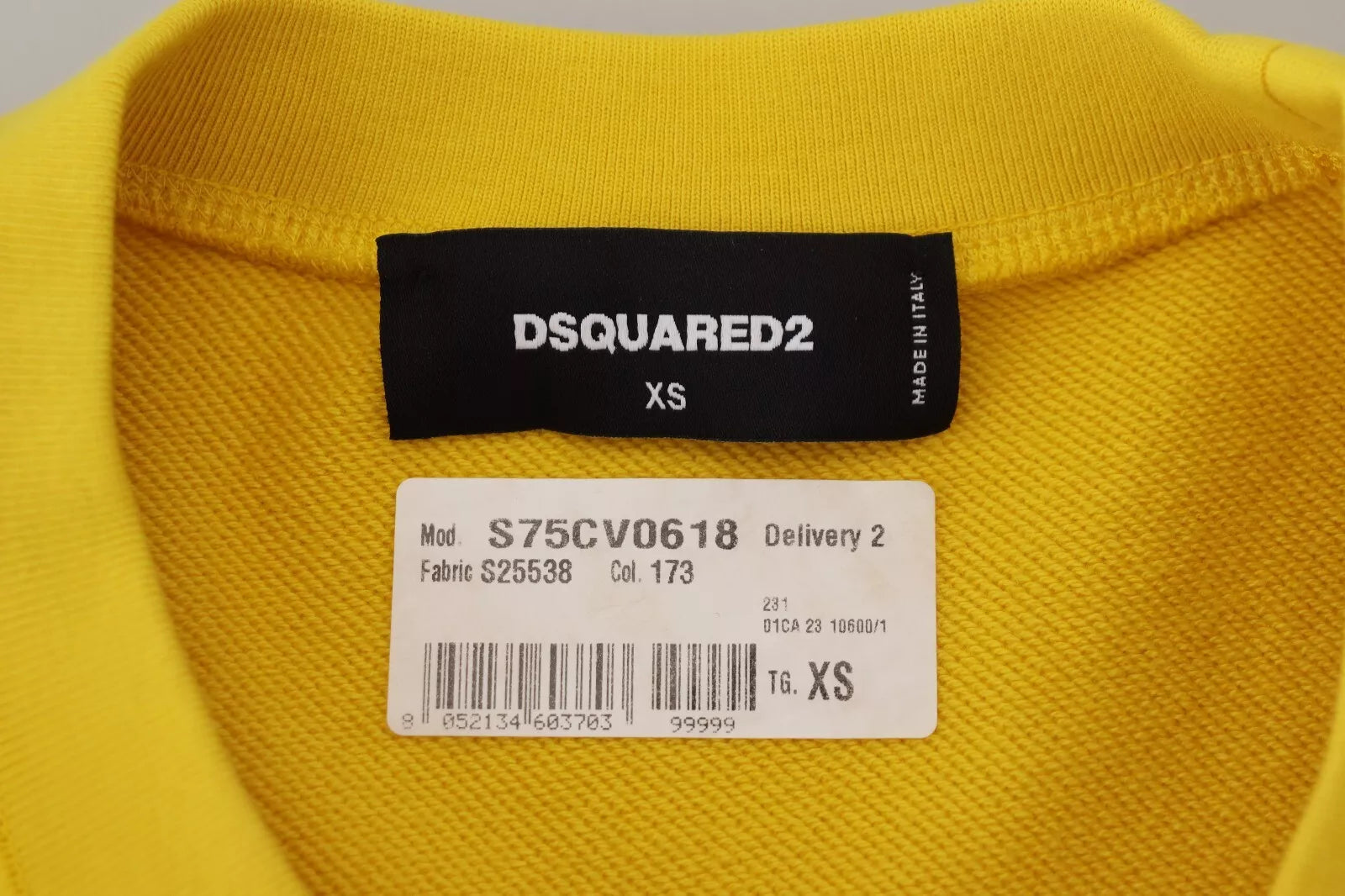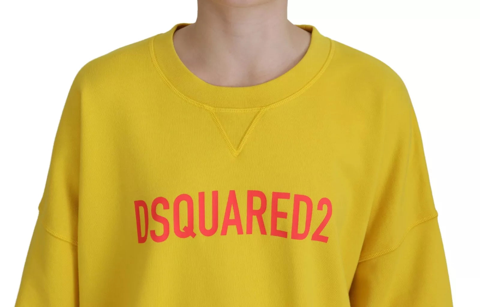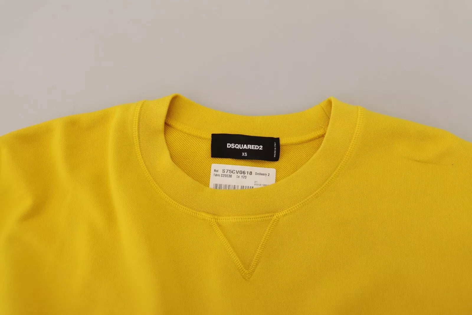 Dsquared² Yellow Logo Print Cotton Crewneck Pullover Sweater