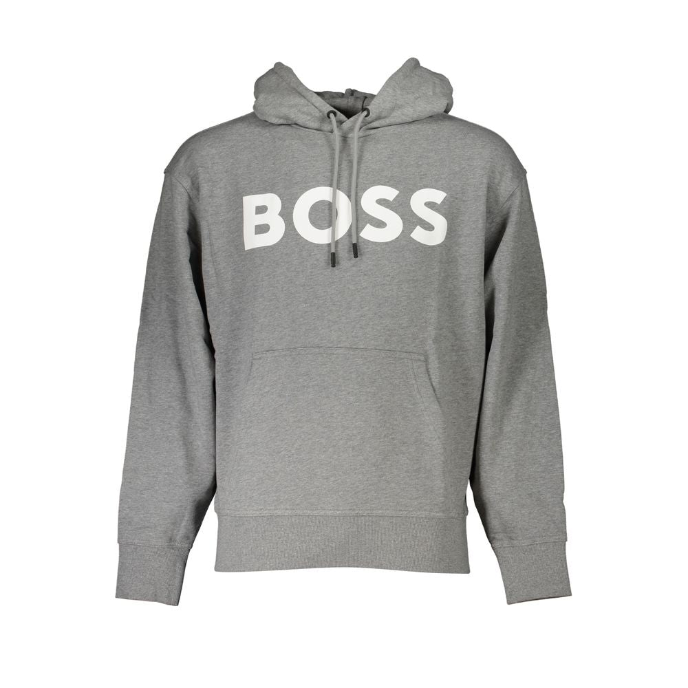 Hugo Boss Elegant Gray Hooded Sweatshirt with Logo