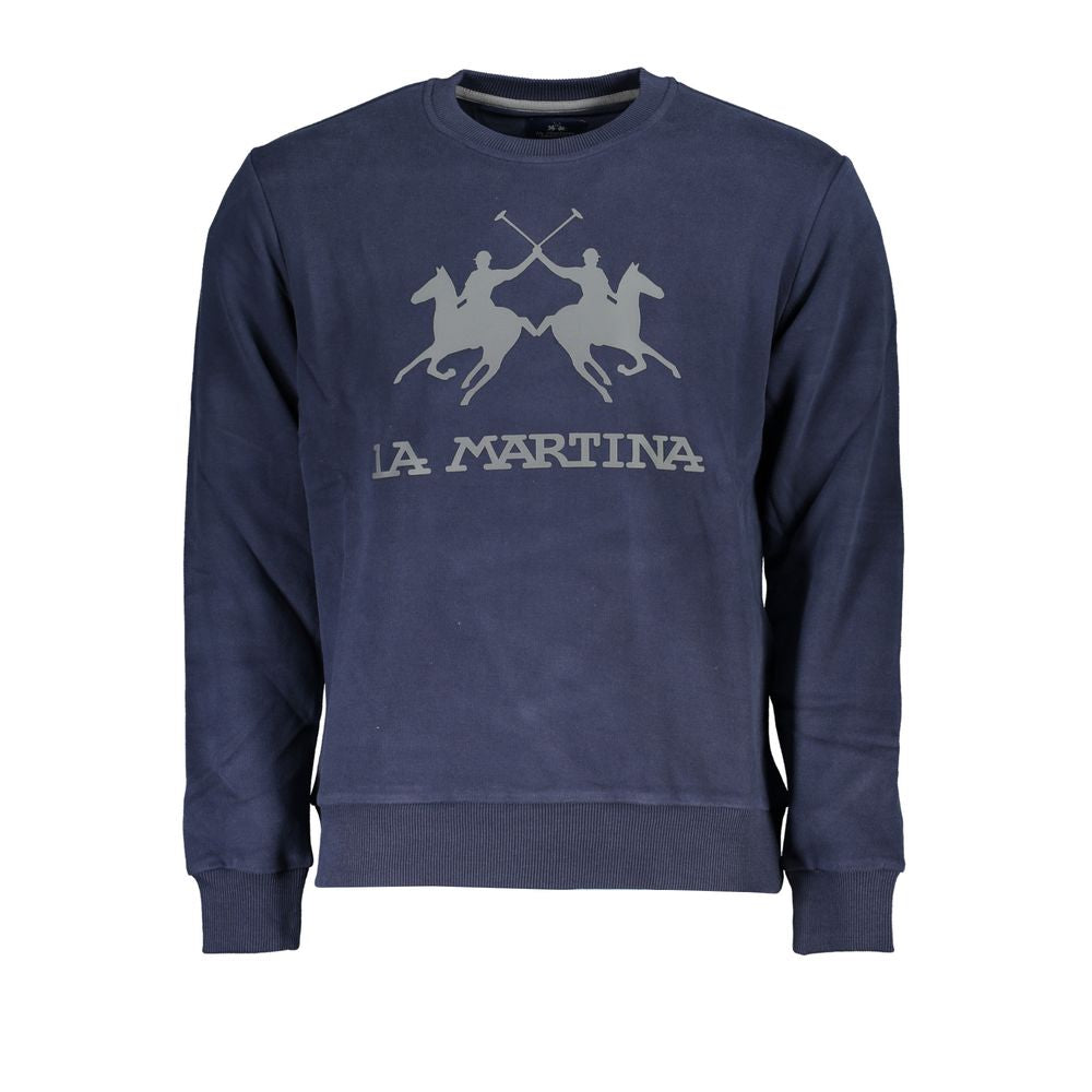 La Martina Elegant Blue Crew Neck Cotton Sweatshirt