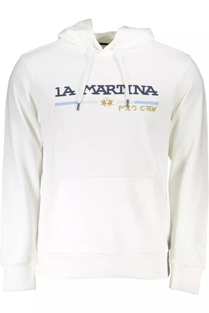 La Martina Elegant White Hooded Sweatshirt with Embroidery