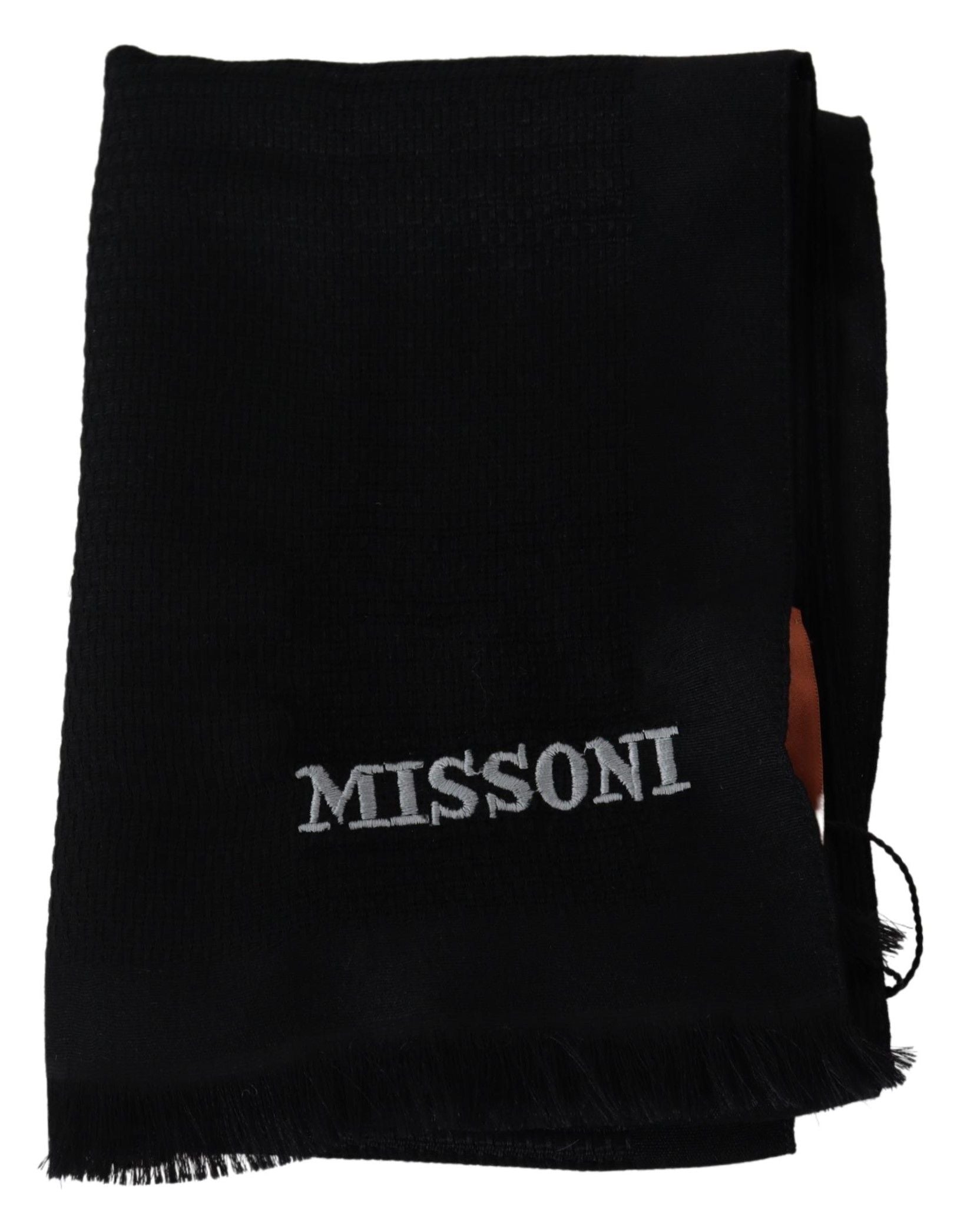 Missoni Black Wool Blend Unisex Neck Wrap Fringes Men's Scarf