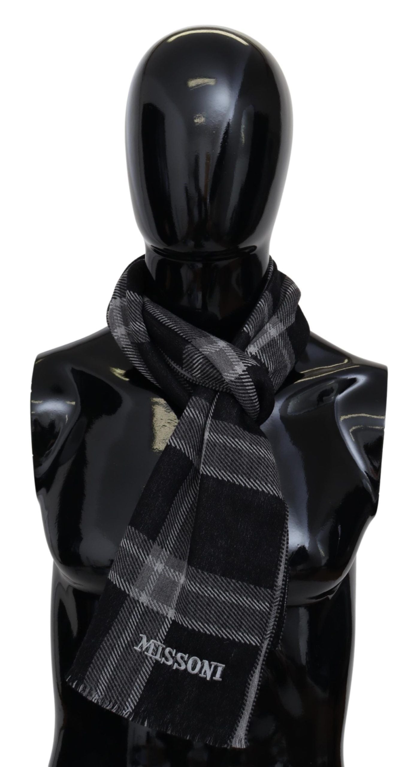 Drape yourself in luxury with this exquisite Missoni wool scarf, perfect for adding a touch of class to any outfit. This 100% authentic scarf features a classic striped plaid pattern, complete with the iconic Missoni logo embroidery. Its unisex design ensures it complements both men’s and women’s styles, making it an excellent gift or wardrobe addition. Crafted expertly in Italy, experience the perfect blend of fashion and warmth.