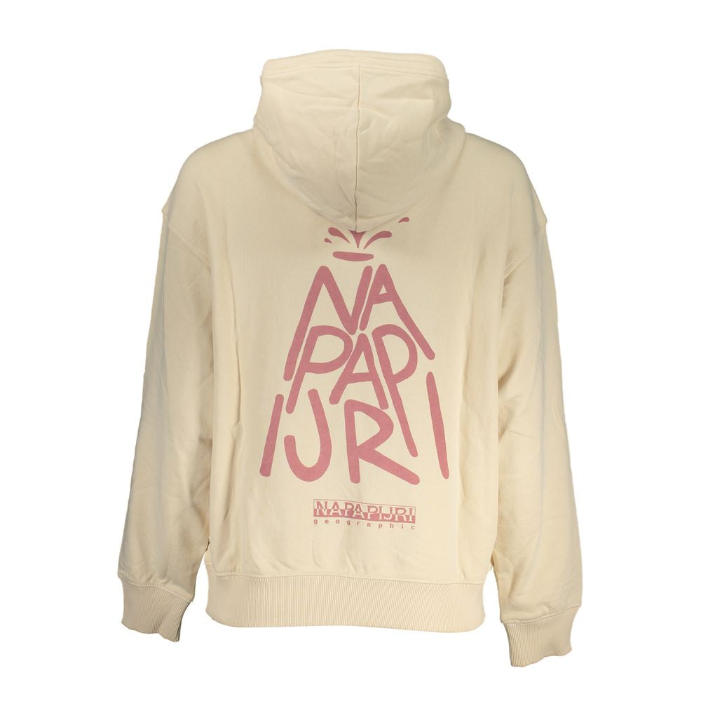 Napapijri Beige Cotton Hooded Sweatshirt with Contrast Details
