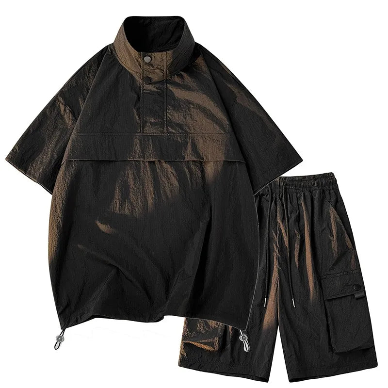 New Men's Summer Sports Windproof Set 2024 Short Sleeved+Shorts Casual Wear Fashionable Men's To Men High Neck Short Sleeved