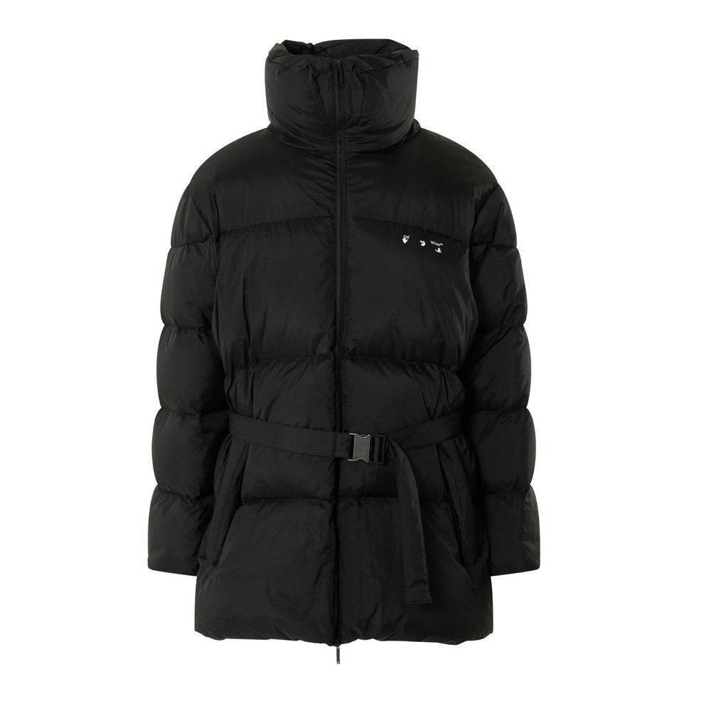 Indulge in the epitome of style and warmth with our sleek black down-filled jacket. This luxurious and durable piece features the iconic Off-White logo on the front, ensuring you stand out with understated elegance. Expertly crafted in Italy, it’s the perfect blend of fashion and function for the discerning gentleman.