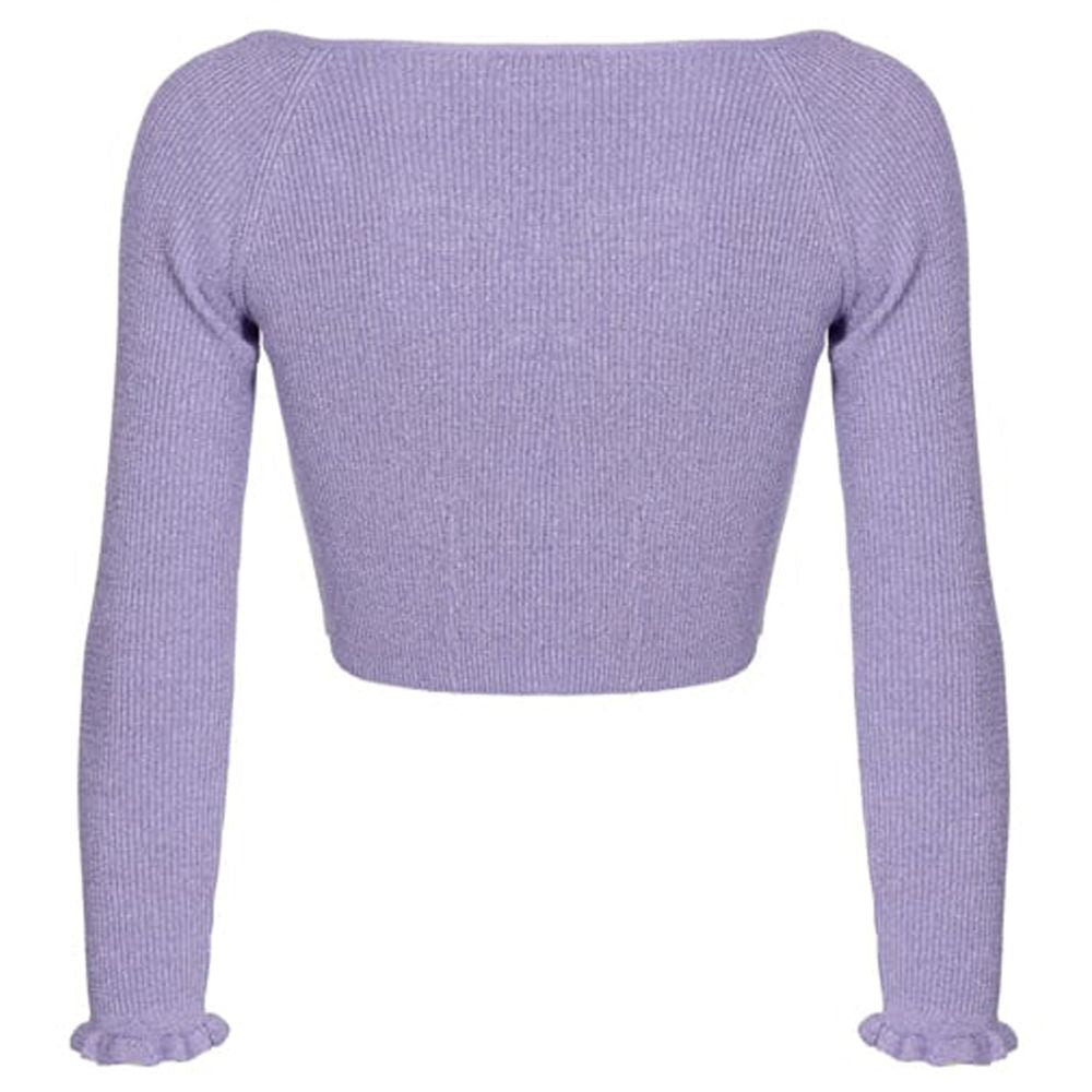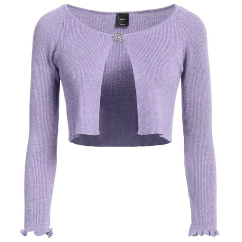 Pinko short cardigan in ribbed lurex fabric, crew neck, sleeves with gathered cuffs