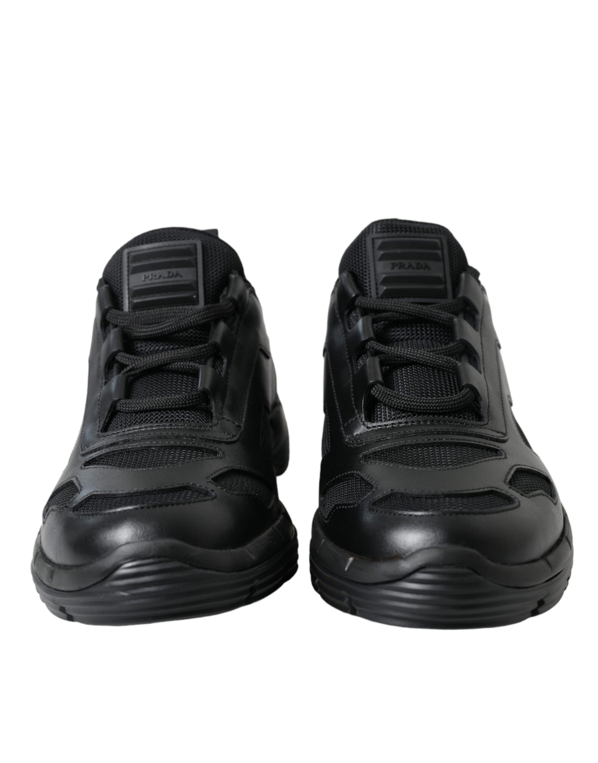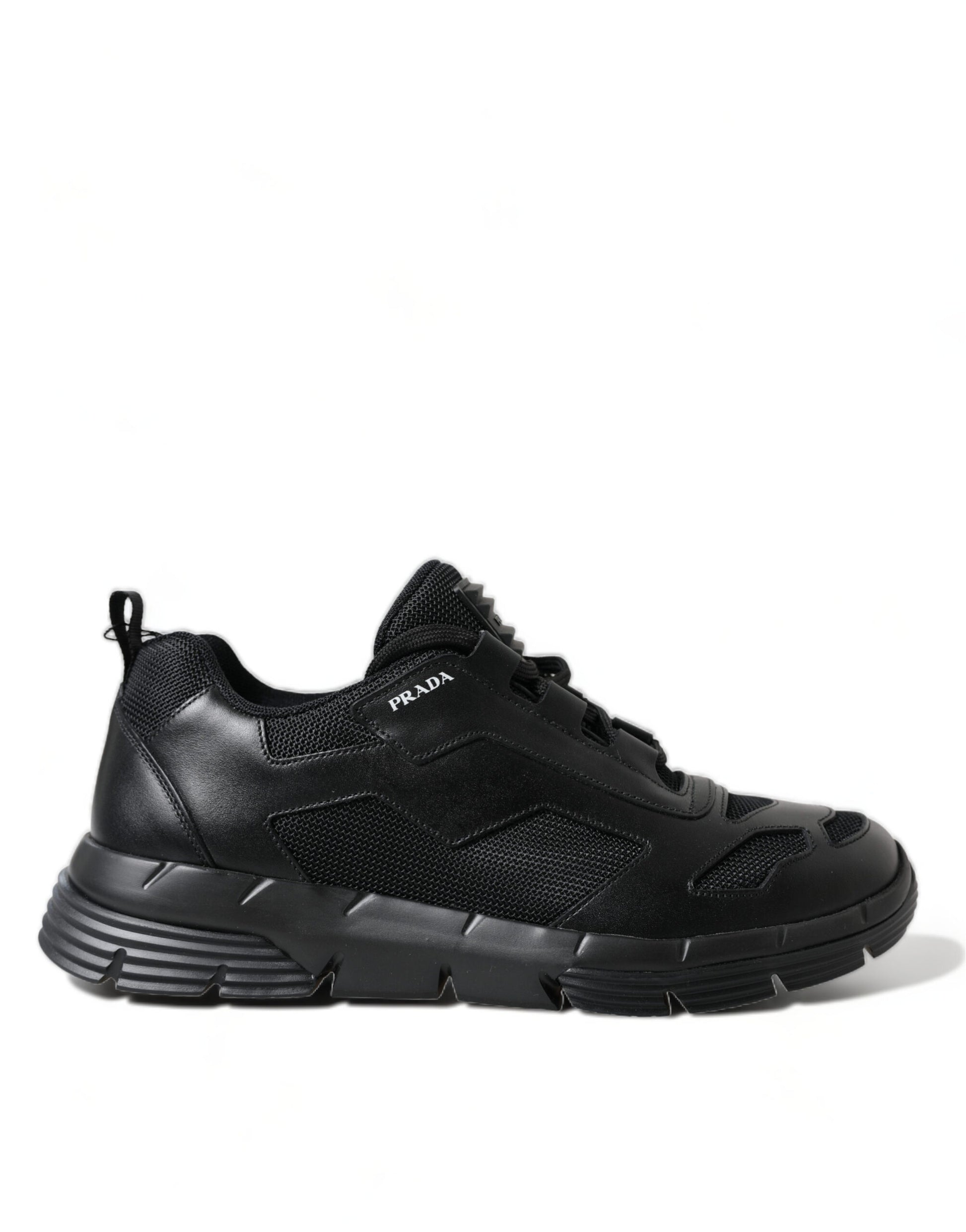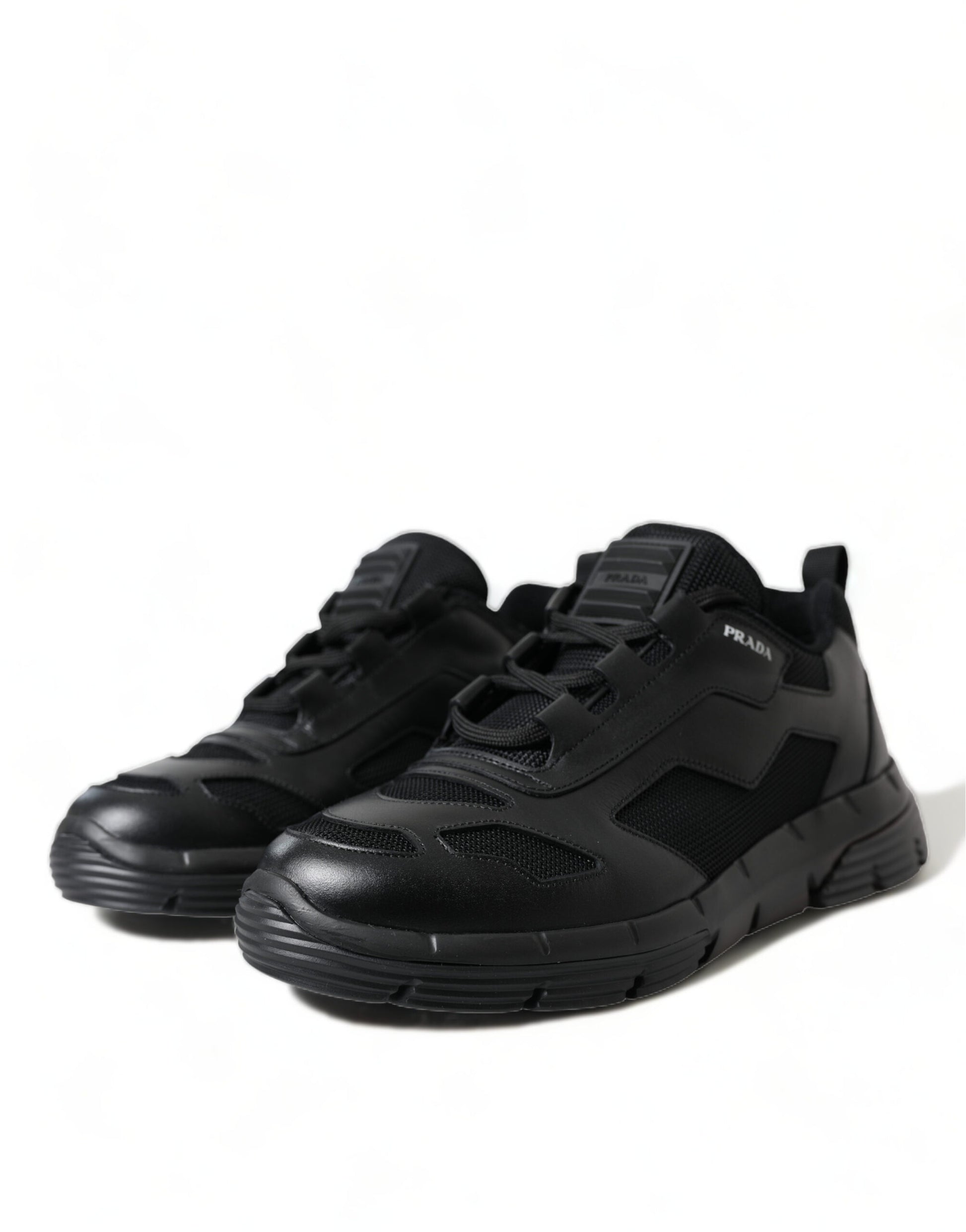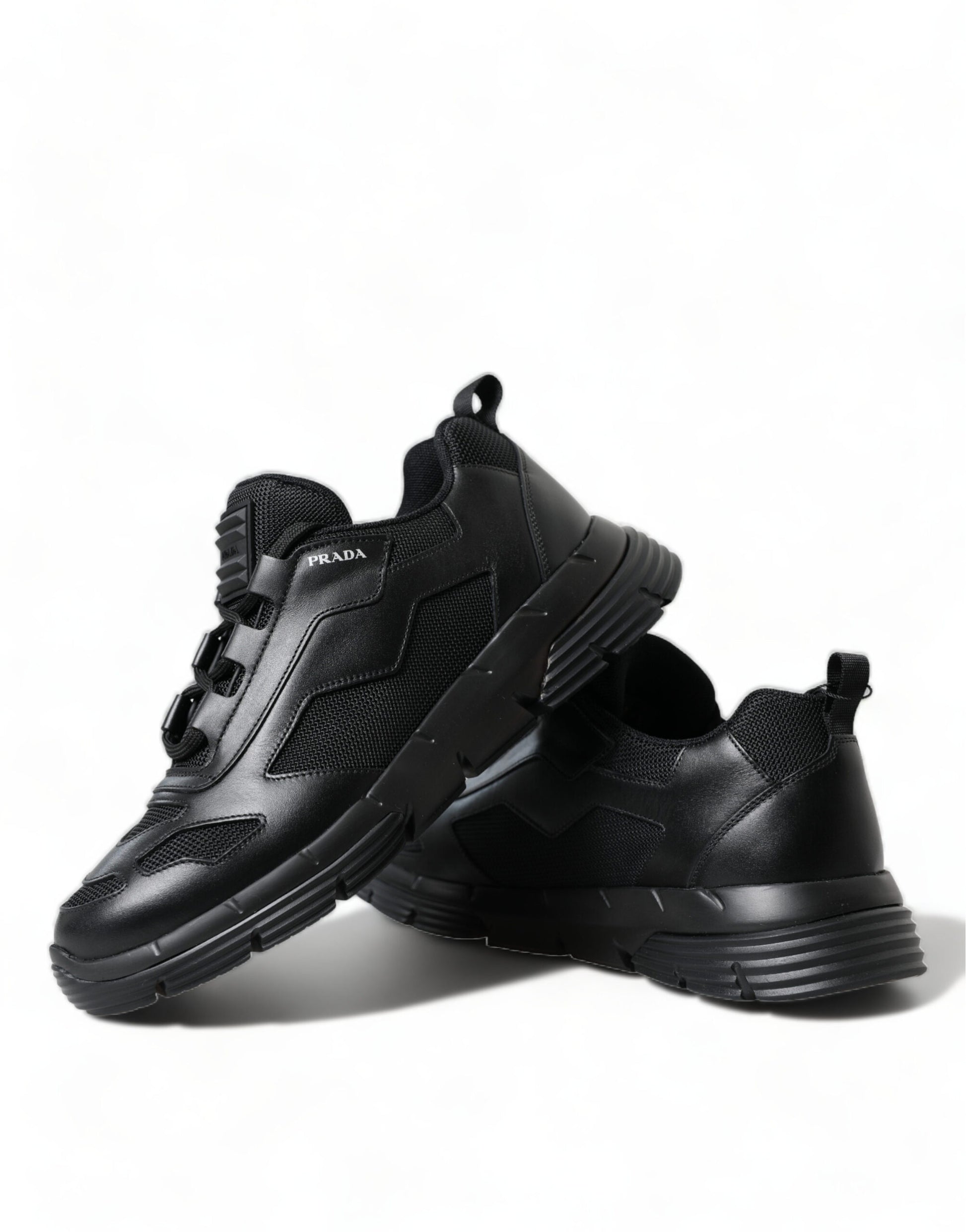 Prada Sleek Low Top Leather Sneakers in Timeless Black