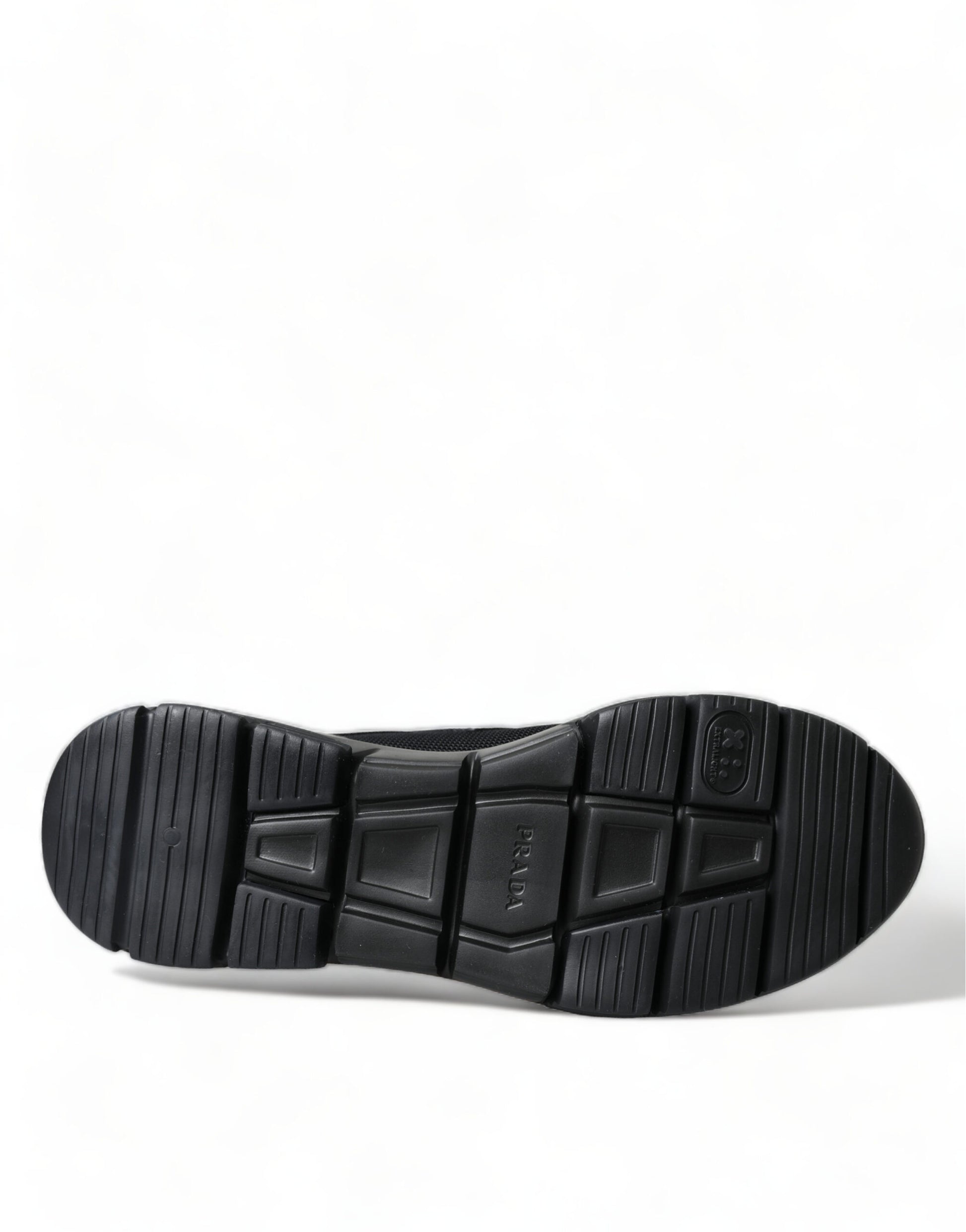 Step into luxury with these sleek, 100% Authentic Prada sneakers, exuding elegance with every step. Crafted from the finest leather and fabric, these low top sneakers boast a refined black colorway that offers versatile styling. An embodiment of both form and function, the light EVA sole provides unparalleled comfort, perfect for the fashion-forward individual on the go. Adorned with subtle logo details, these Italian-made shoes are sure to elevate your footwear collection.