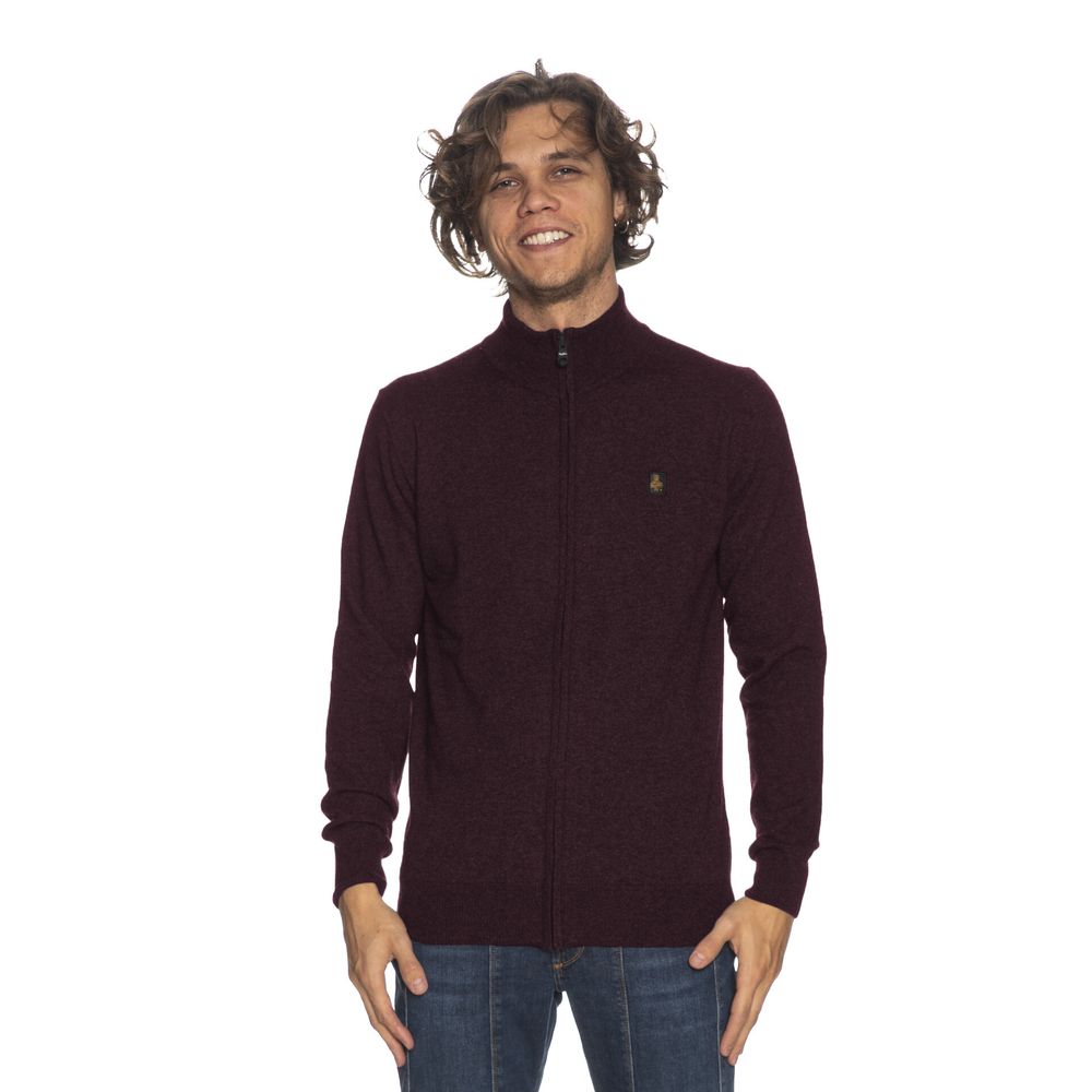 Indulge in the luxurious warmth of this burgundy-toned cardigan from Refrigiwear, meticulously crafted from a sumptuous blend of wool and cashmere. The long-sleeved York cardigan features a stylish high collar and a sleek zip closure, providing both comfort and elegance. Its distinguished design is subtly accented with the signature logo on the chest, making it a refined choice for any discerning gentleman’s wardrobe.