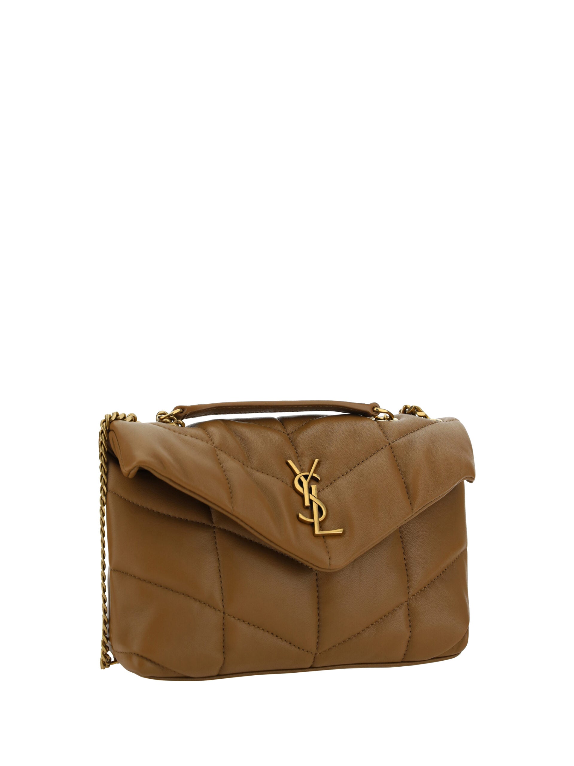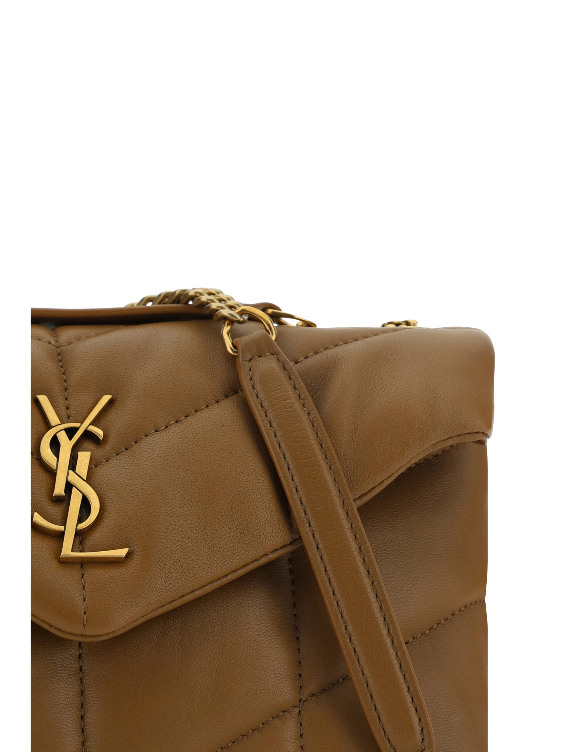 Saint Laurent Brown Lamb Leather Puffer Toy Shoulder Bag