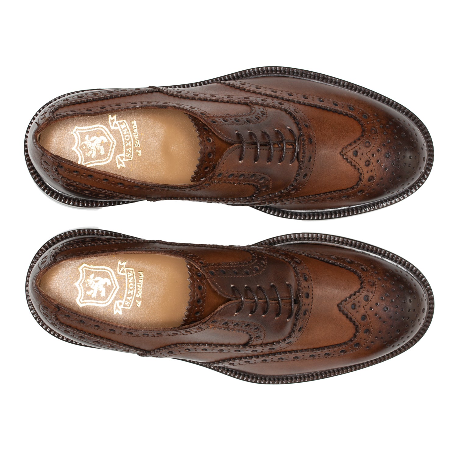 Step into sophisticated elegance with our striking natural brown Full Brogue Shoes, perfect for the discerning gentleman. These handcrafted shoes boast impeccable style and a commitment to quality, designed by the renowned Saxone of Scotland.