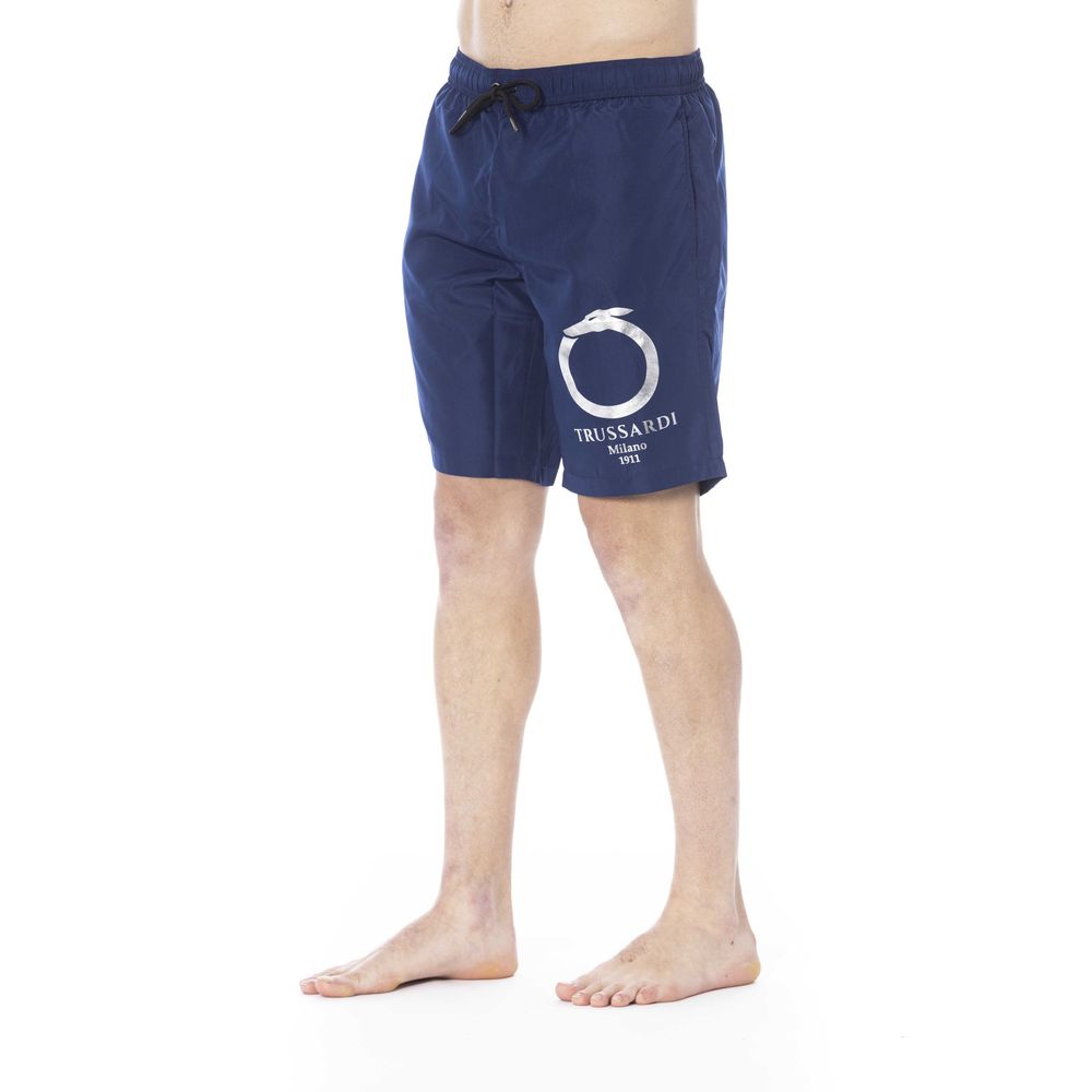 Swim Trunk. Print With Logo. Side Pockets. Rear Welt Pockets. Elastic Waistband With Drawstring.