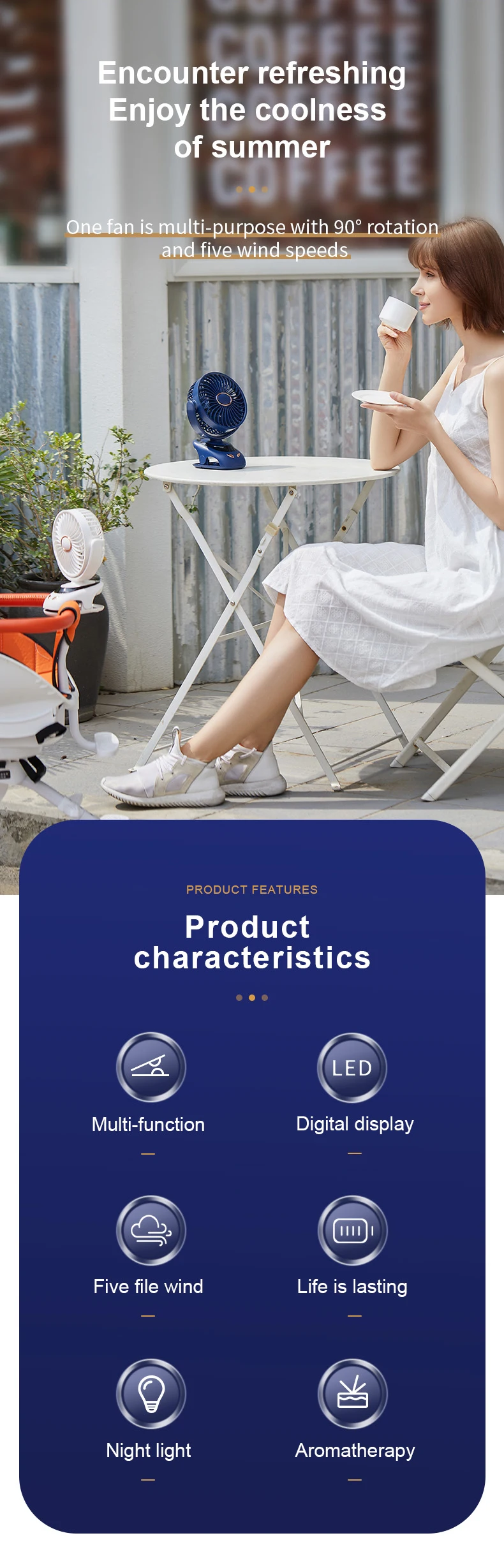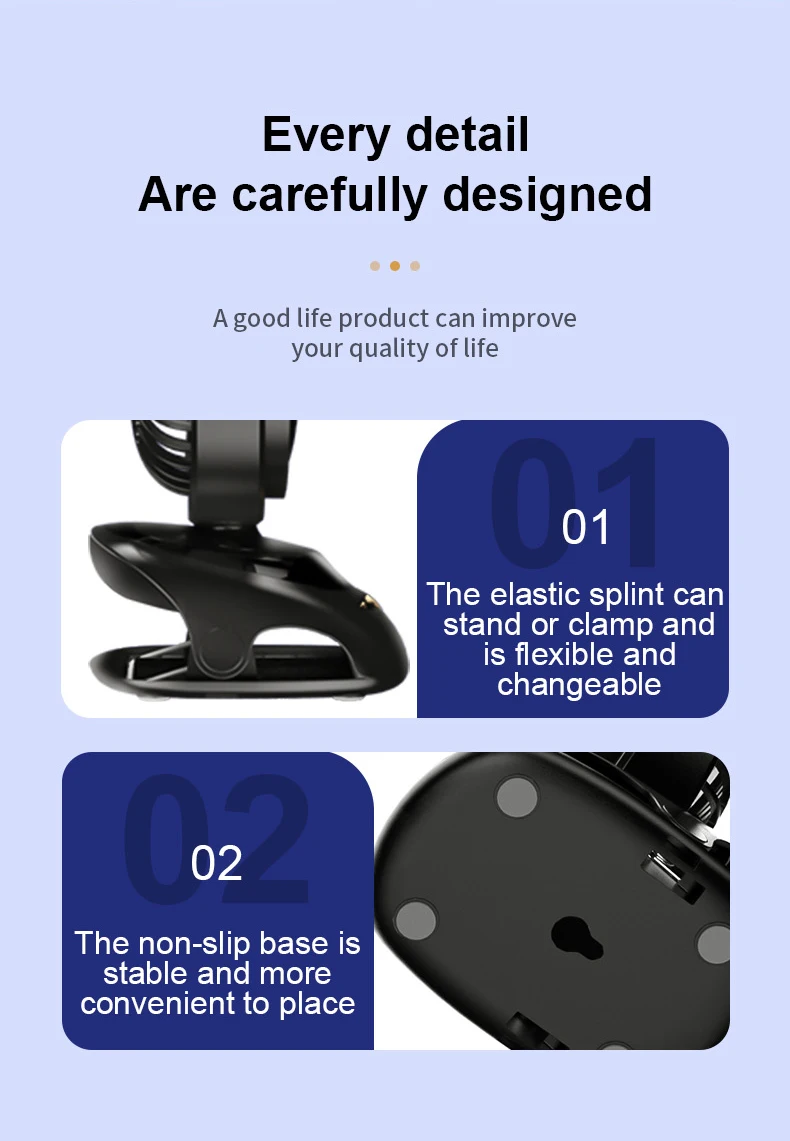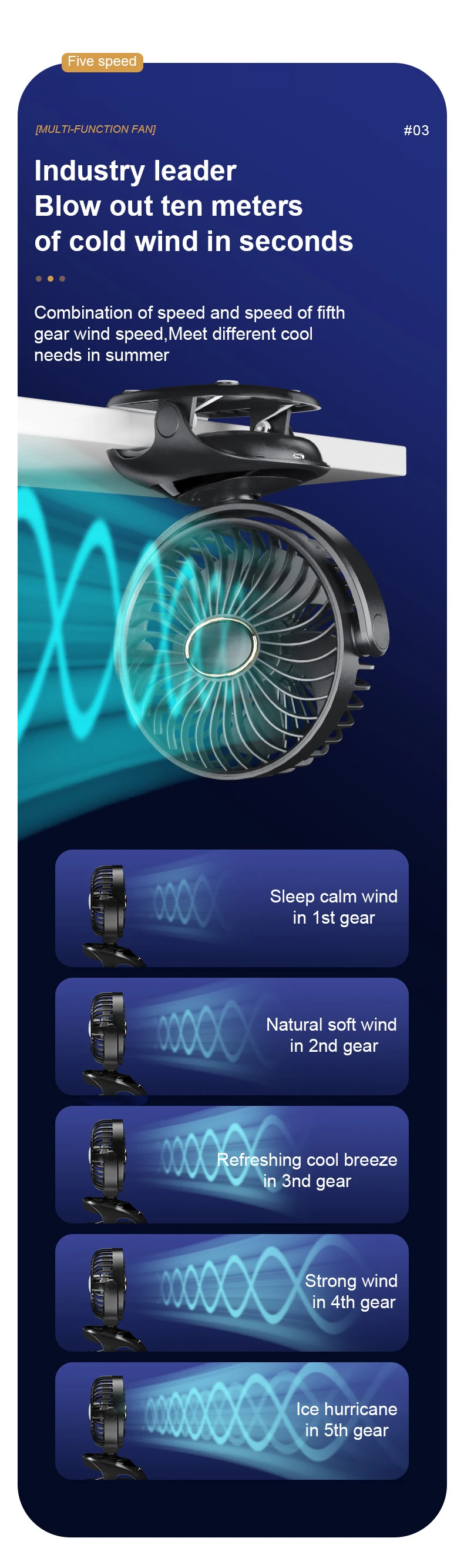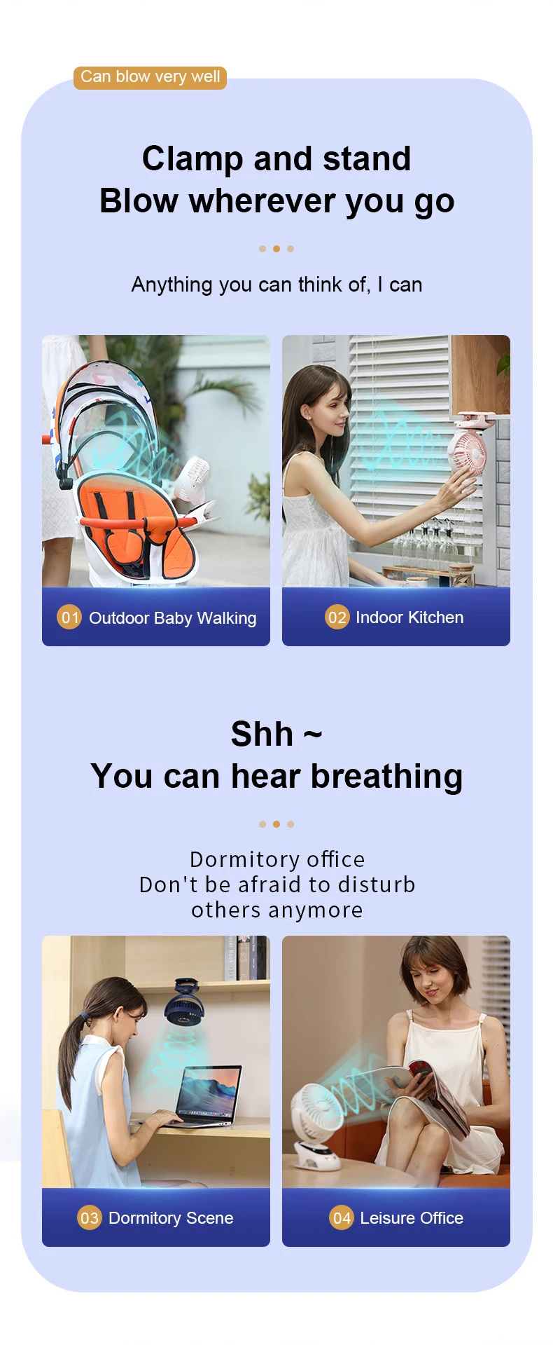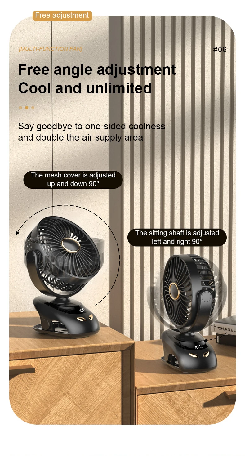 USB Table Wireless Clip-on Fan 6000mAh Battery Outdoor Travel Portable Electric Mini Desk Fan for Baby Stroller Cart