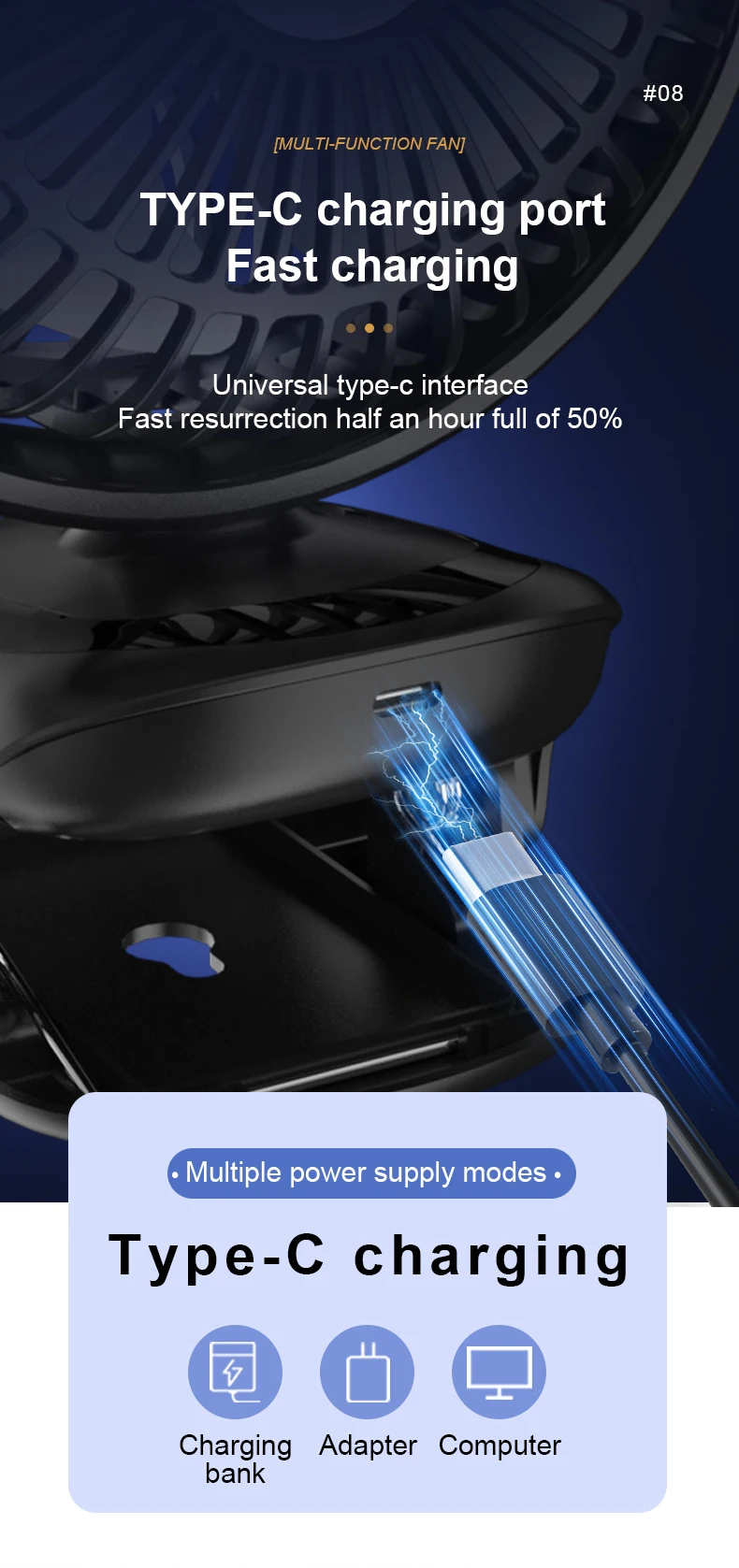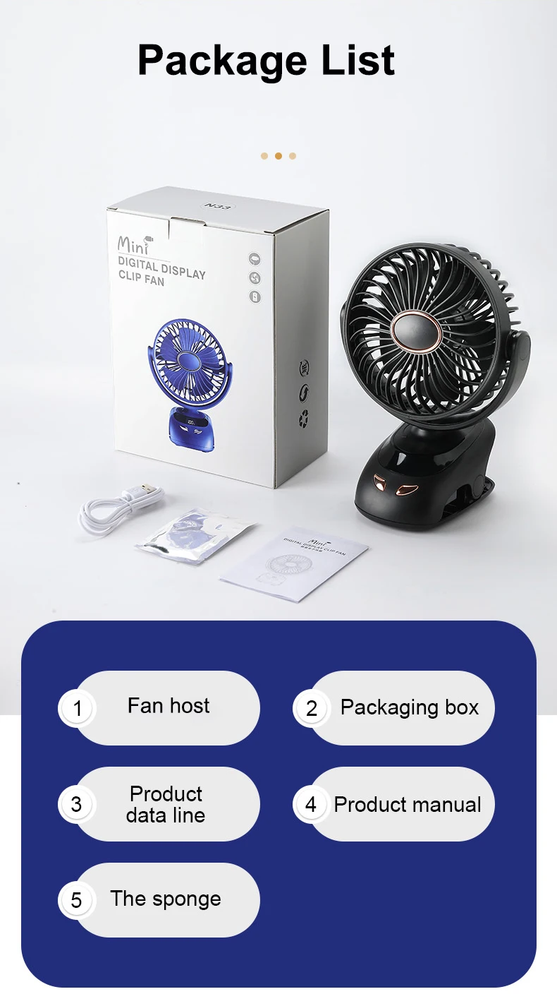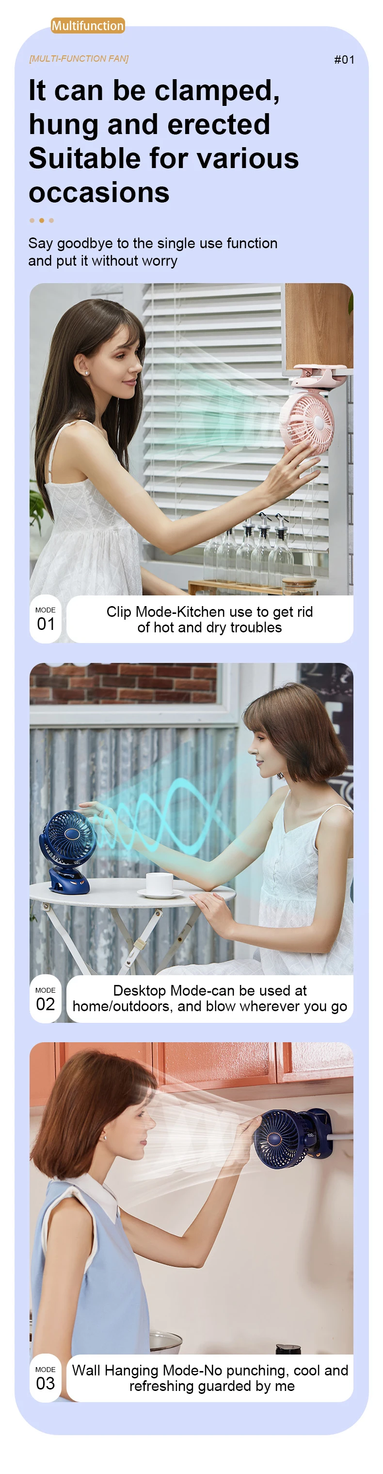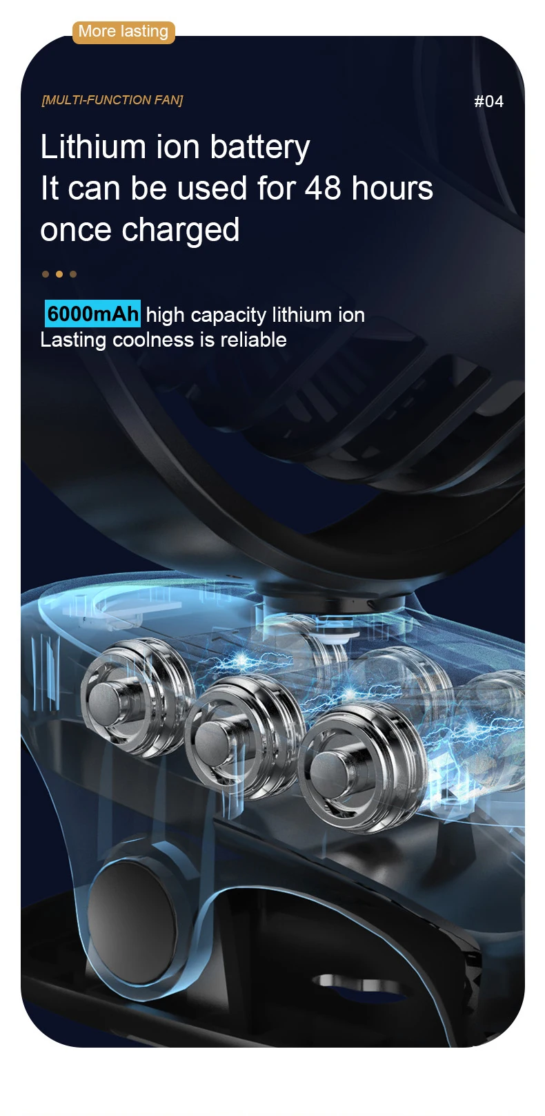 USB Table Wireless Clip-on Fan 6000mAh Battery Outdoor Travel Portable Electric Mini Desk Fan for Baby Stroller Cart