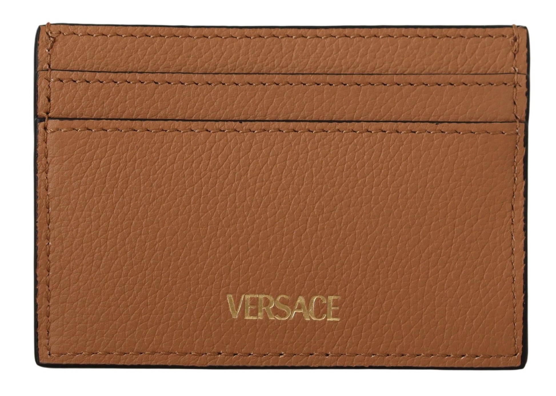 Indulge in the opulence of Versace with this brand new, tags-included and boxed, authentic card holder wallet. A luxurious accessory fashioned from the finest calf leather, it exudes a rich brown hue, perfect for a sophisticated look. Its design is enhanced by the iconic Medusa head logo, emanating an air of classic Versace prestige.