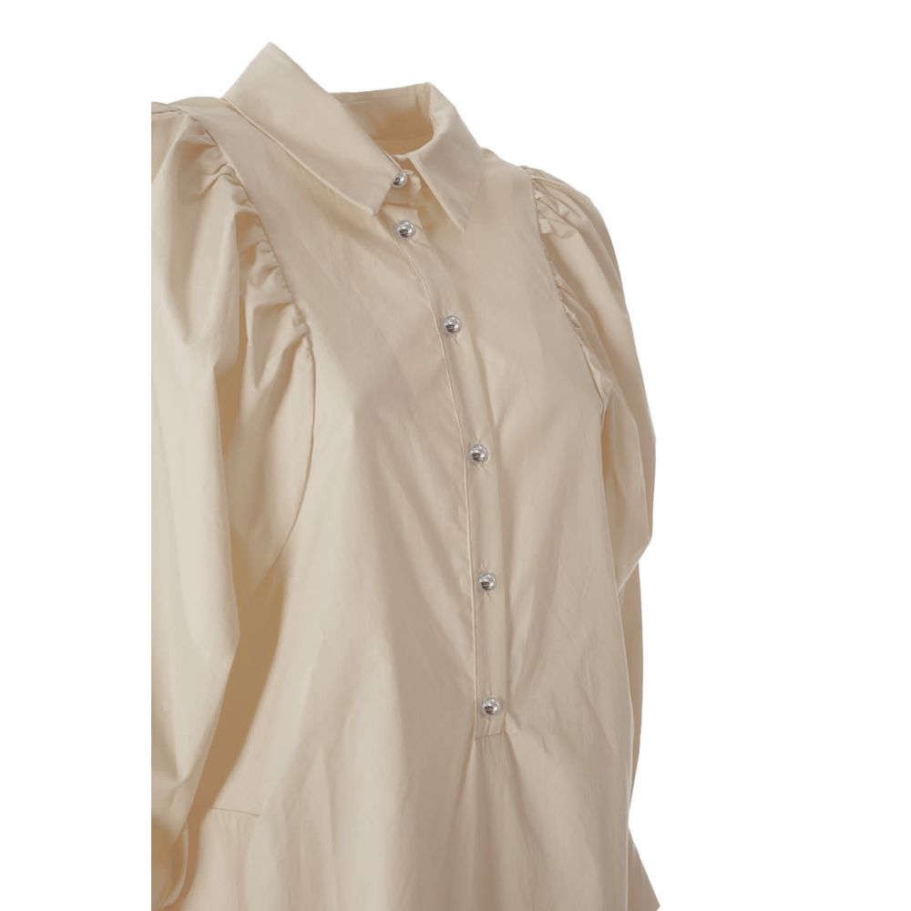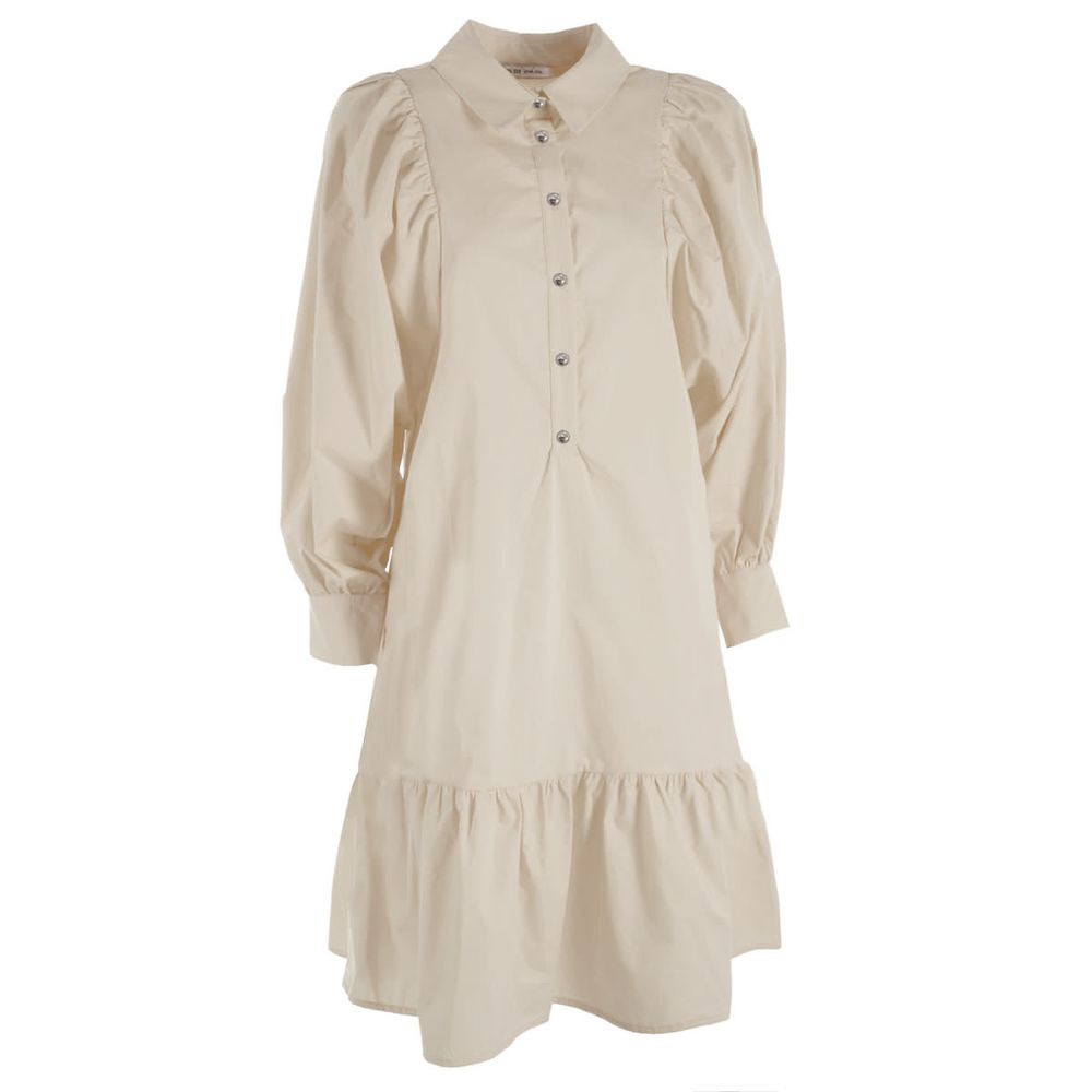 Discover the elegance of simplicity with this chic Beige Cotton Dress from Yes Zee, a must-have addition to your wardrobe. This dress features a timeless classic collar, sophisticated button closure, and an eye-catching gathered sleeve pattern that adds a touch of femininity and modern style.