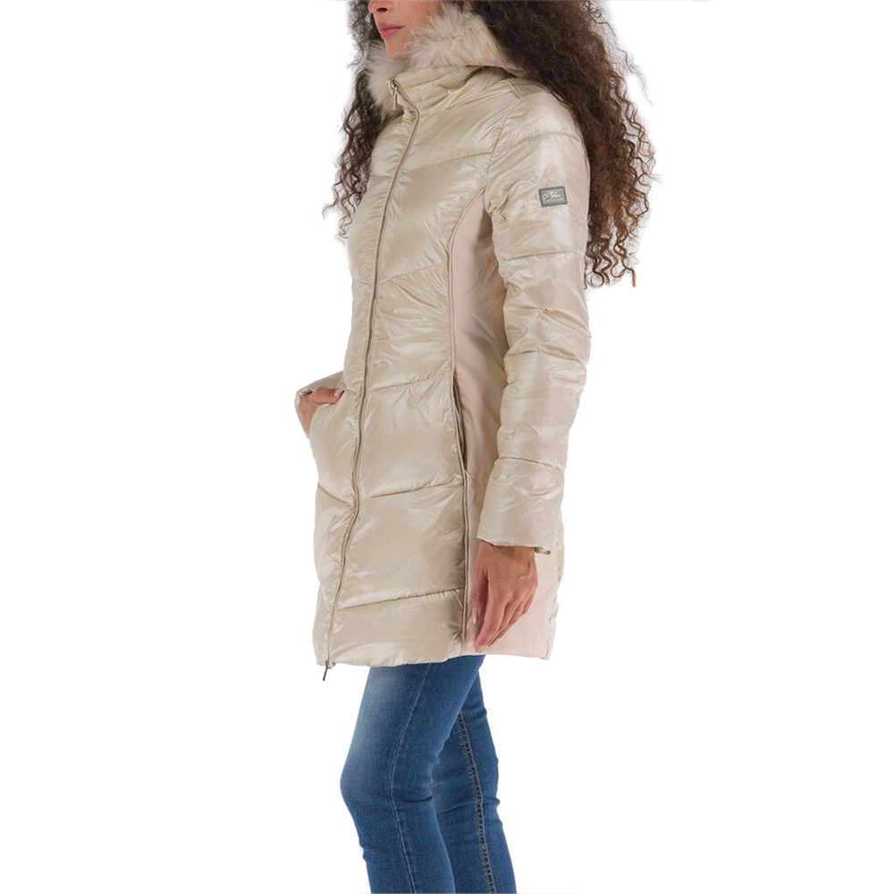Step out in style with the sophisticated Yes Zee padded jacket, perfect for the fashion-forward woman. Boasting a plush hood adorned with fur, this jacket features a chic nylon outer fabric and a cleverly designed removable internal double-breasted layer with a secure double zip. The full-length front zip closure offers ease of wear, while the exposed zip pockets add a touch of modernity, ensuring you keep your essentials safely within reach. This jacket is not only a statement in style but also in comfort and versatility.