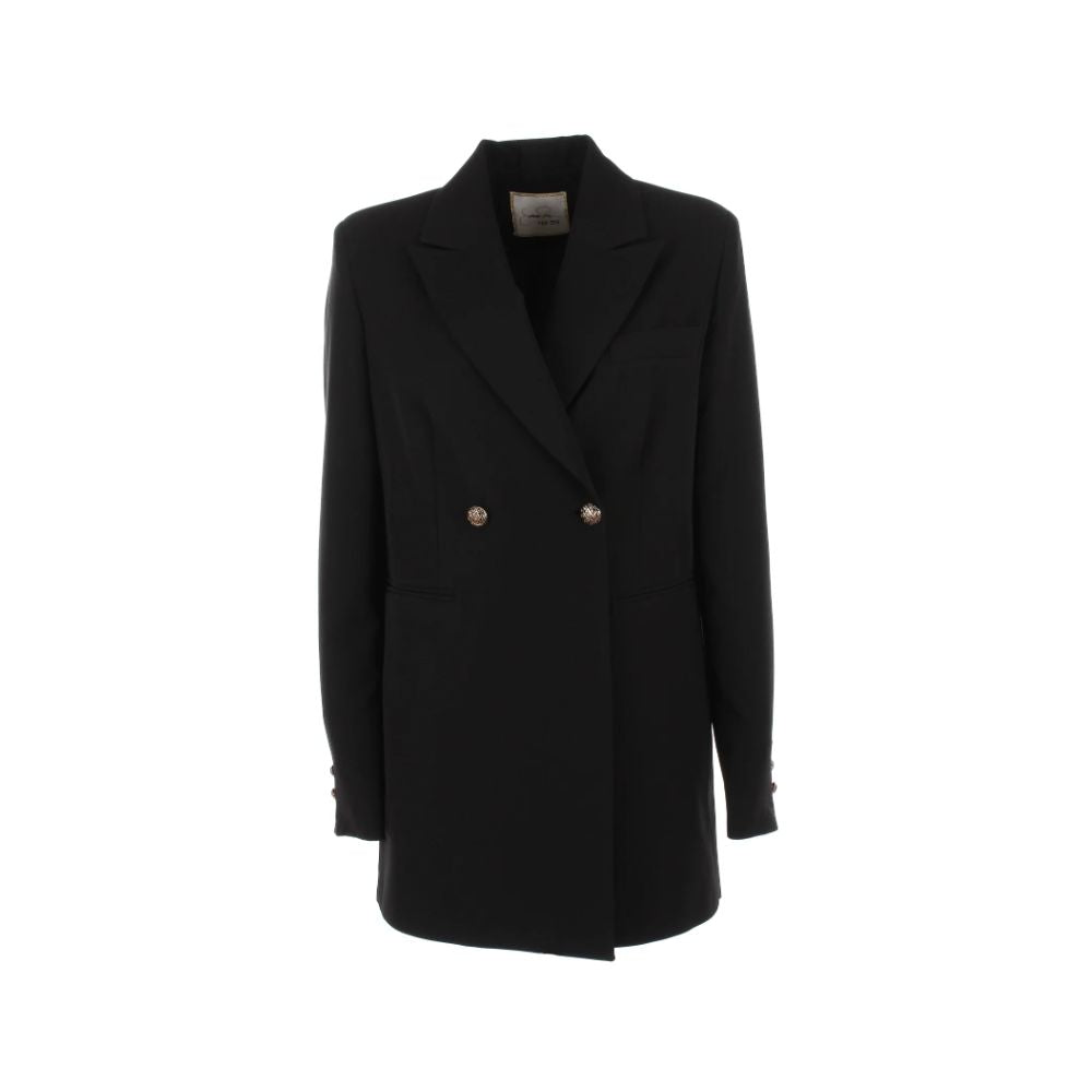 Yes Zee Elegant Black Crepe Double-Breasted Jacket