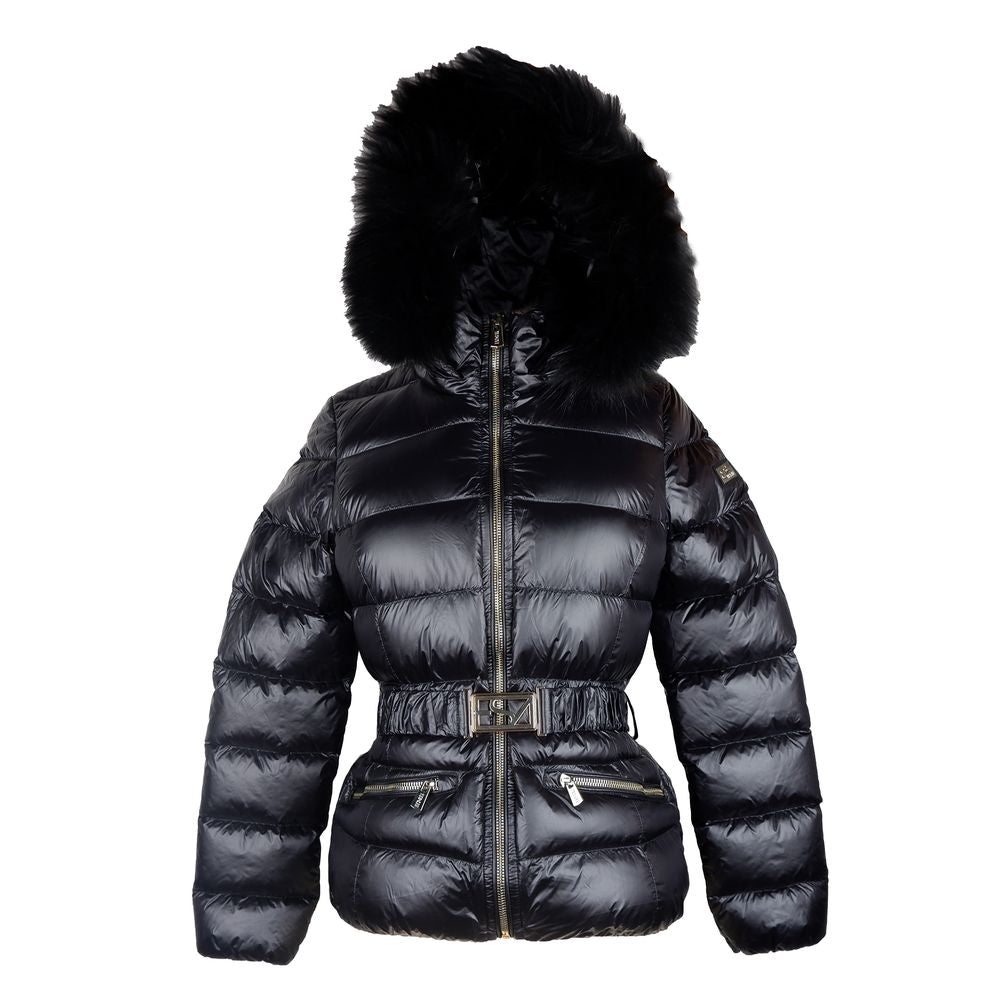 Yes Zee Elegant Black Nylon Jacket with Murmasky Fur
