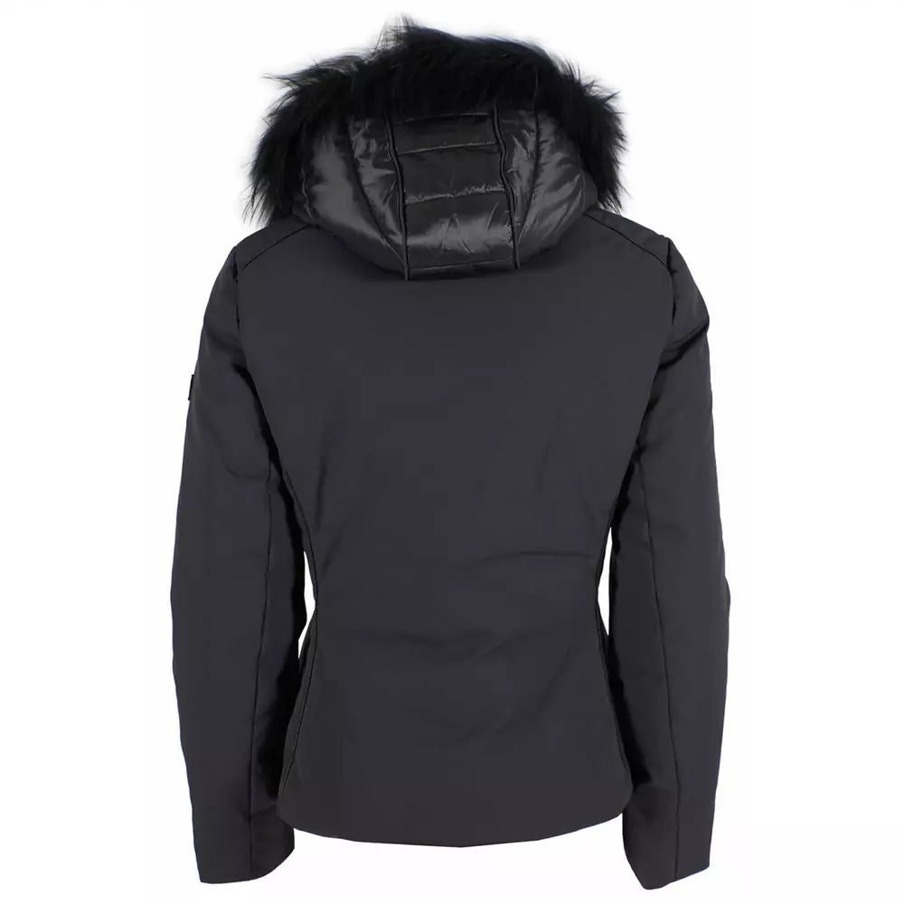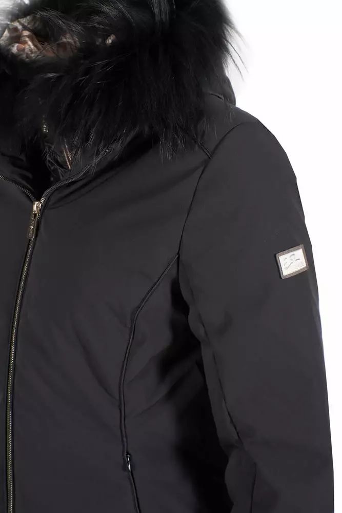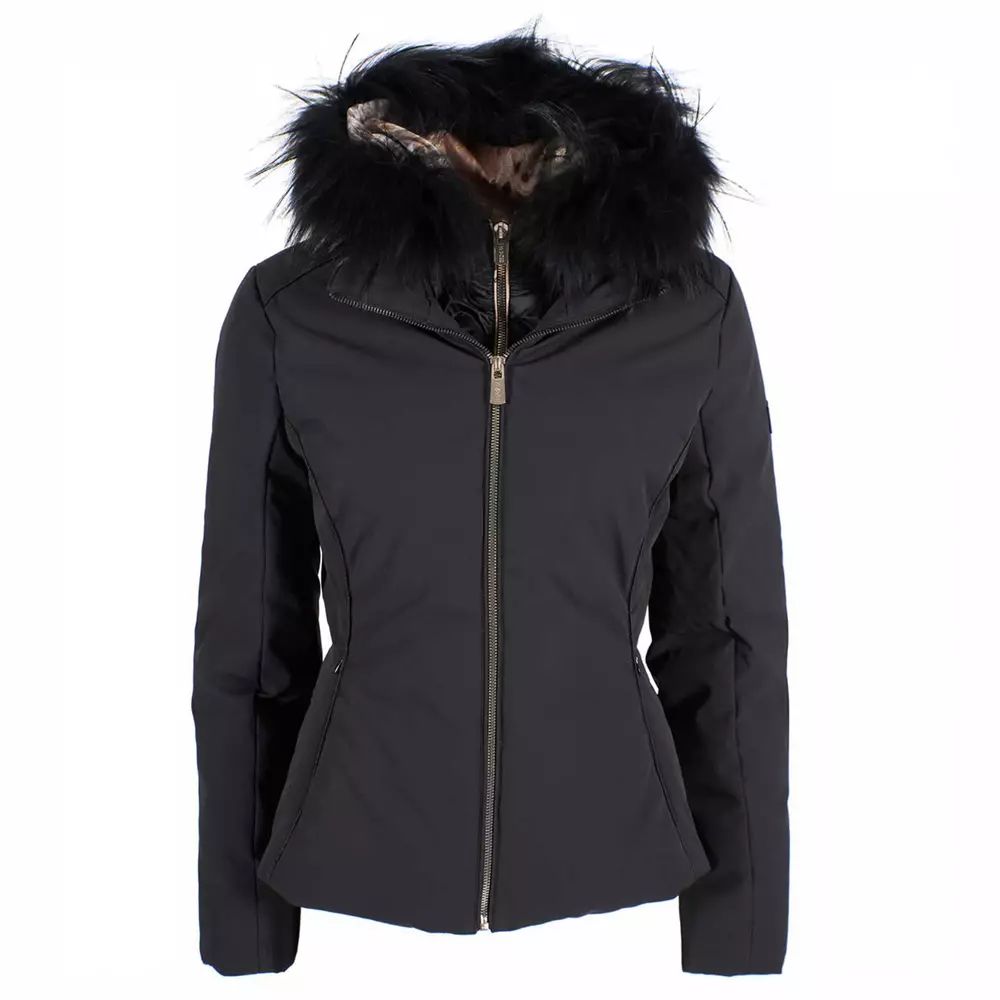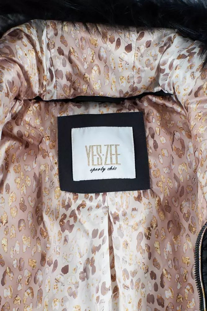 Experience warmth and style with our women’s jacket, crafted from a stretchy blend of polyamide and polyester for the ultimate comfort. This medium-length jacket boasts a sophisticated high collar and a hood adorned with luxurious murmasky fur, sure to turn heads. A removable inner bib provides versatility, while the chic animal print lining adds a touch of wild elegance. The jacket comes with a feather padding for that cozy, enveloping feel during colder seasons.
